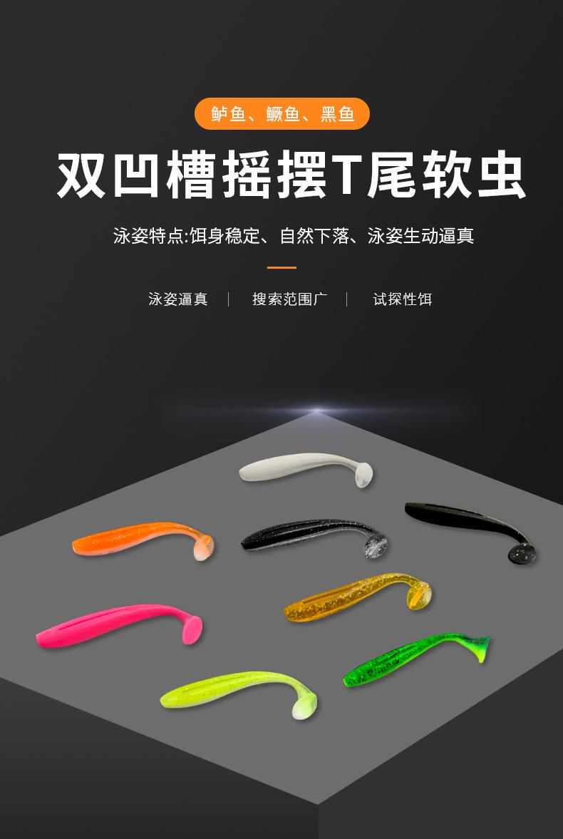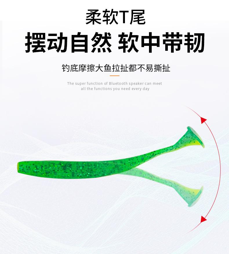 Fábrica al por mayor Luya Soft Bait 2G bicolor T-tail pez blando con ranura para anzuelo pesca pez mandarín amartillado lubina bolsa de cebo falso