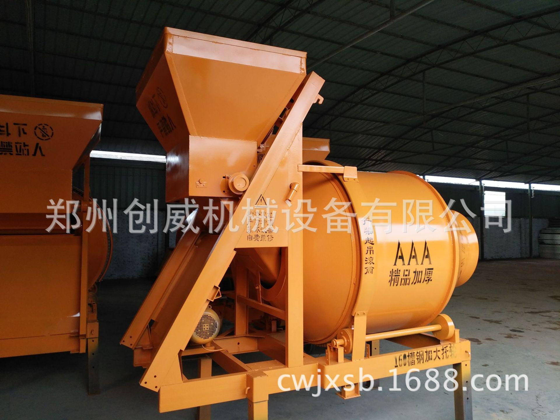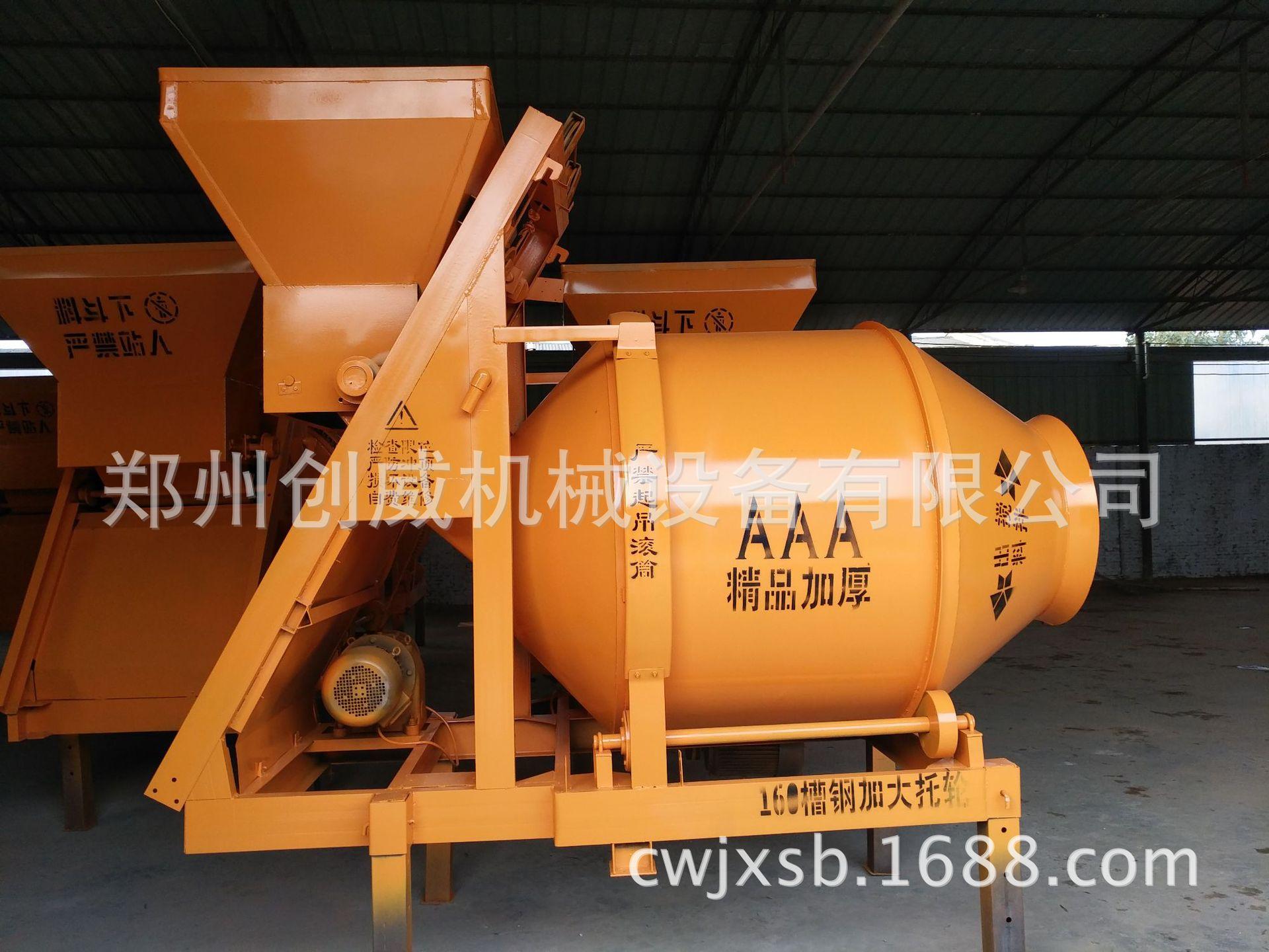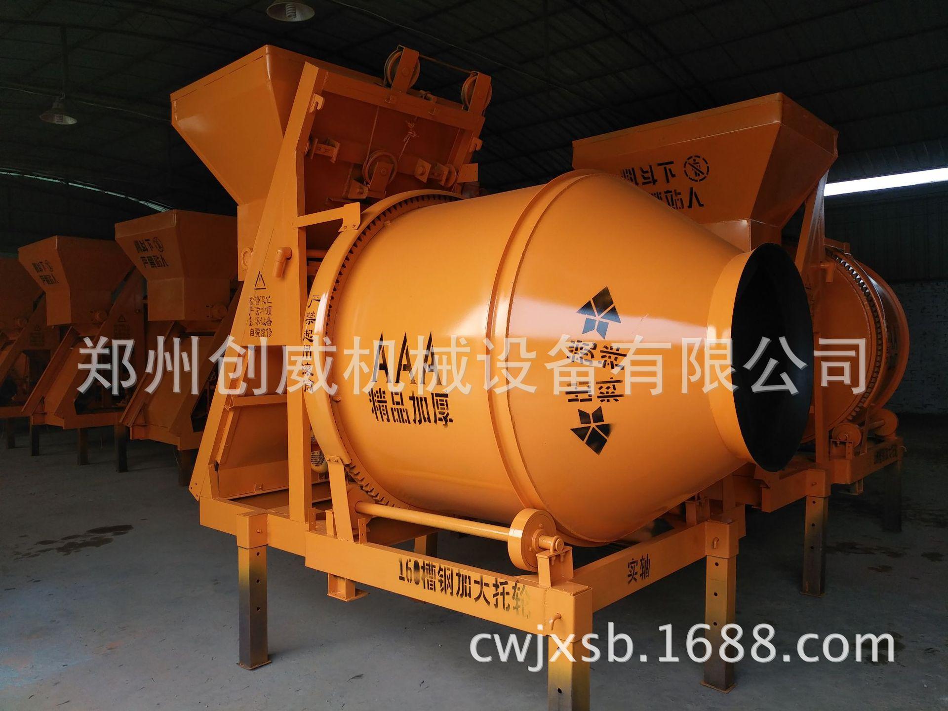 La mezcladora de concreto de la serie JZC de Zhengzhou Chuangwei es una mezcladora de descarga inversa de cono doble con caída automática., el tambor mezclador es accionado por la corona dentada, y cuando trabaja
