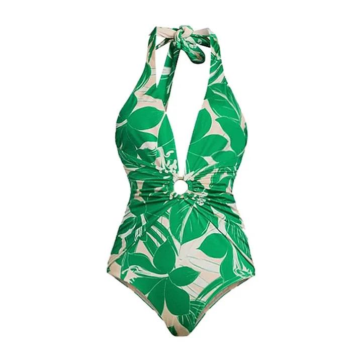 2024 Europa y Estados Unidos nuevo traje de baño de una pieza cuello halter en V profundo traje de baño estampado de una pieza para mujer explosiones transfronterizas 2652