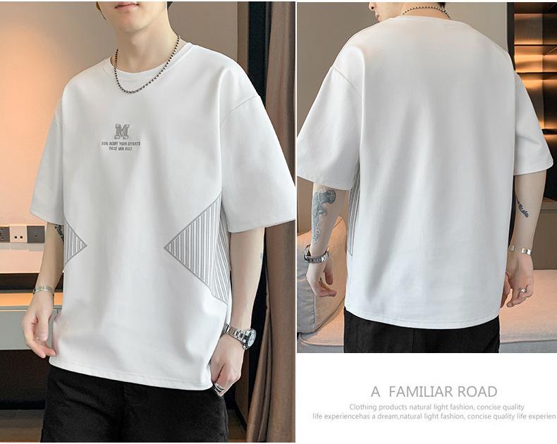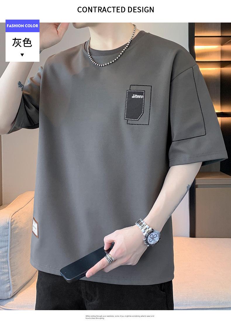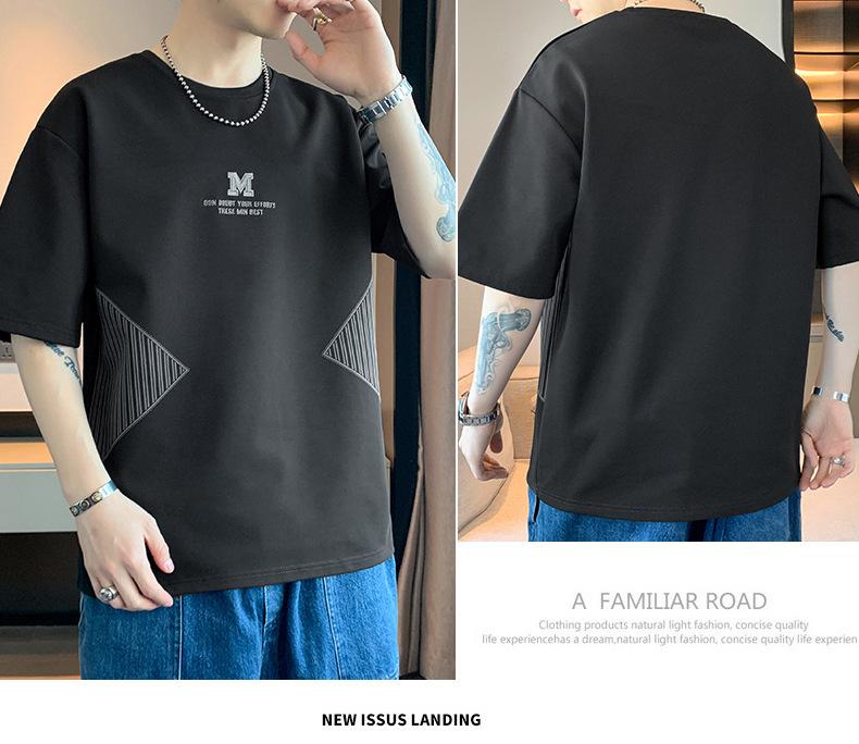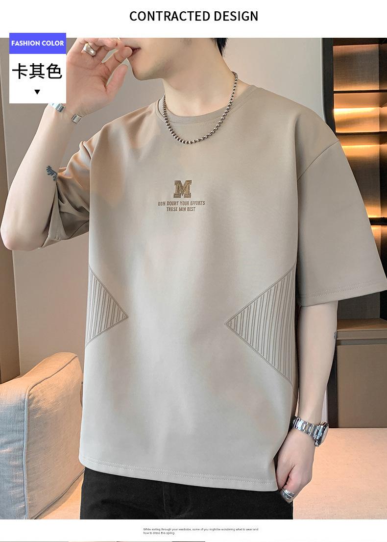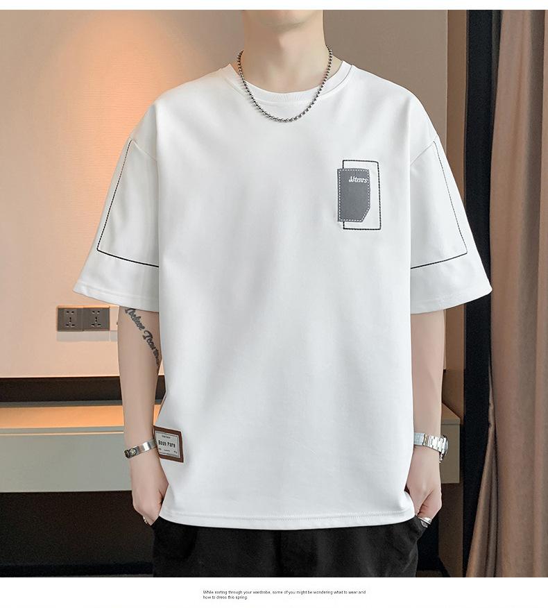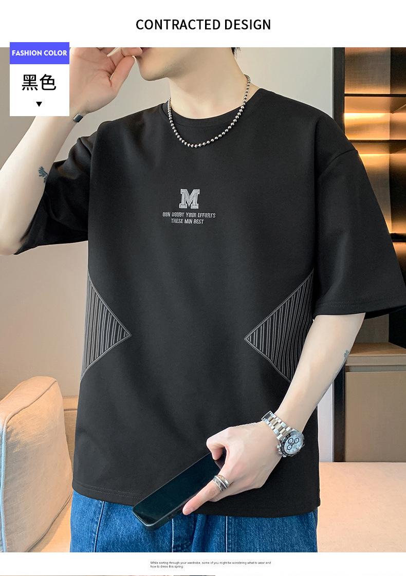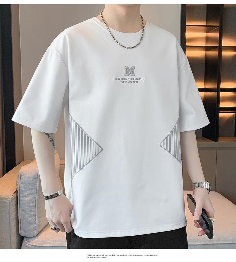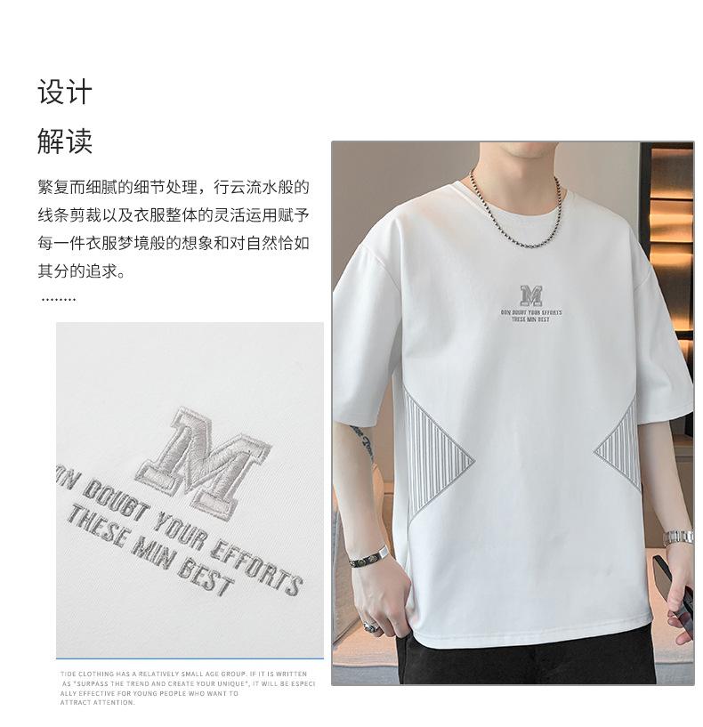 Camiseta de hombre de verano nueva moda suelta combinable casual moda juvenil cuello redondo letra americana bordada manga corta