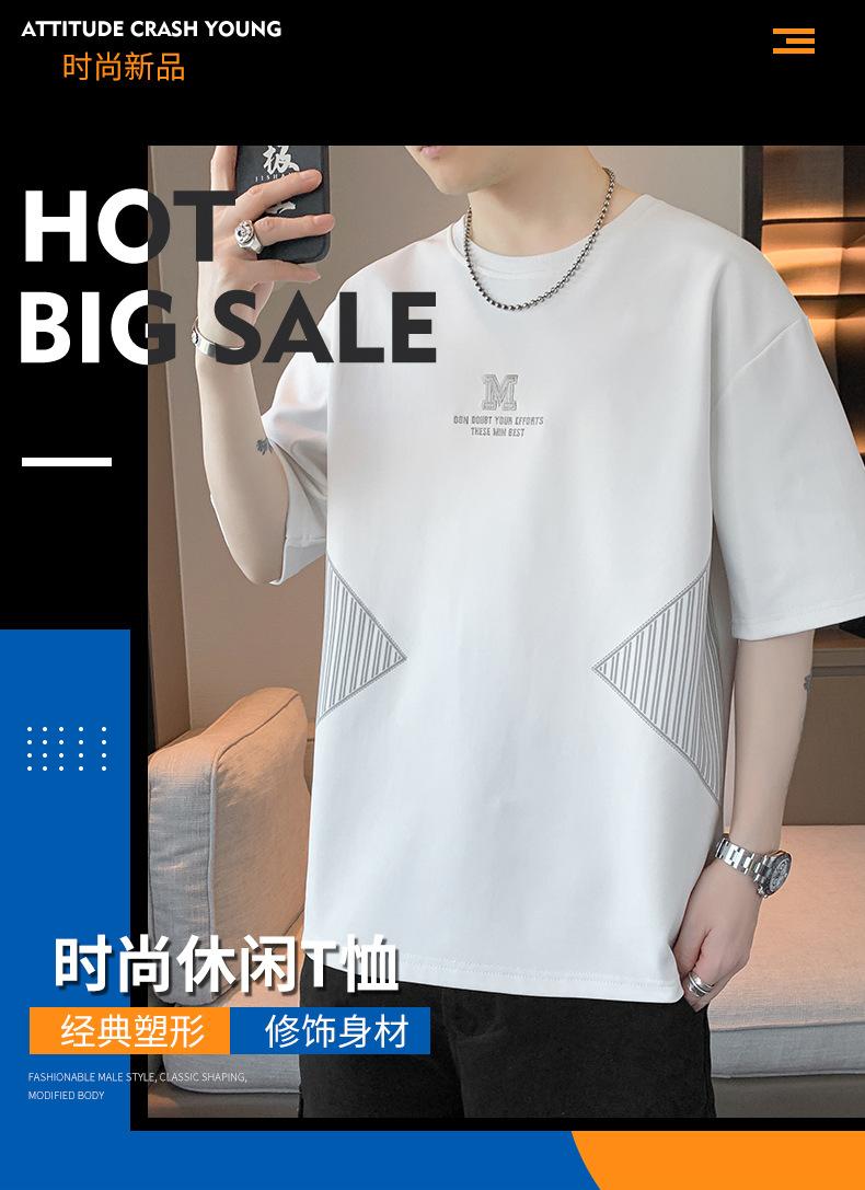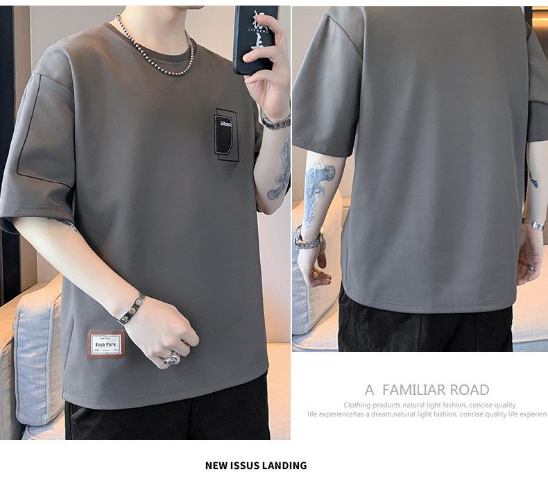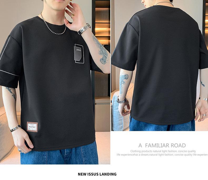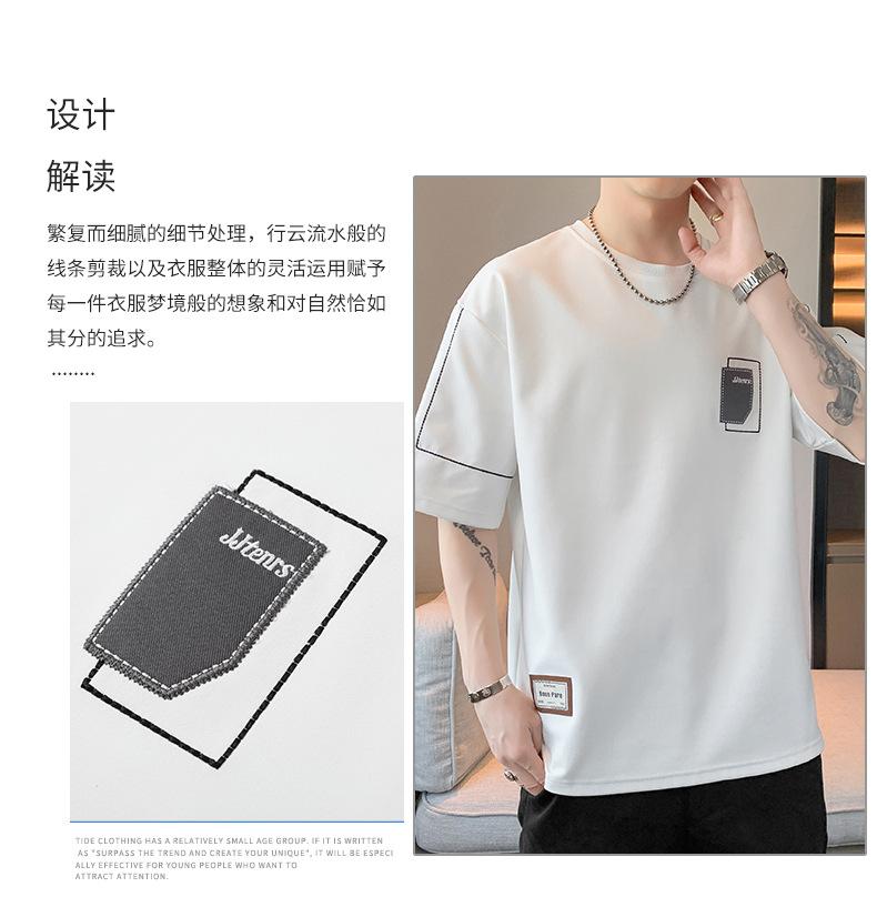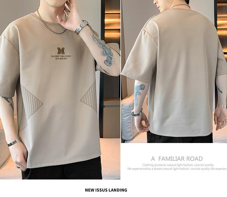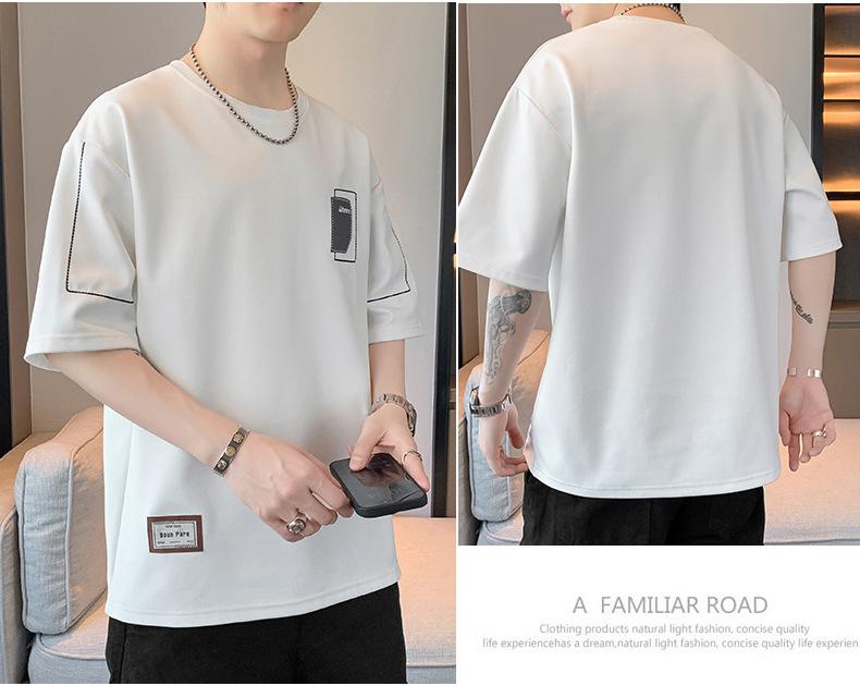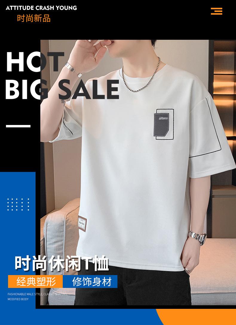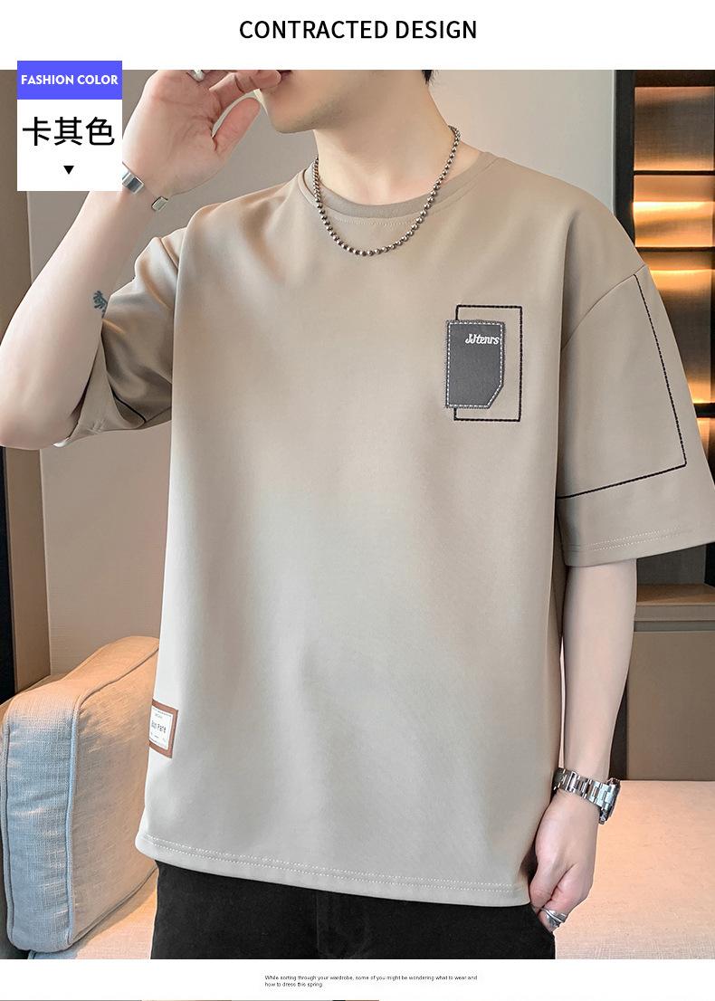 Camiseta de hombre de verano nueva moda suelta combinable casual moda juvenil cuello redondo letra americana bordada manga corta