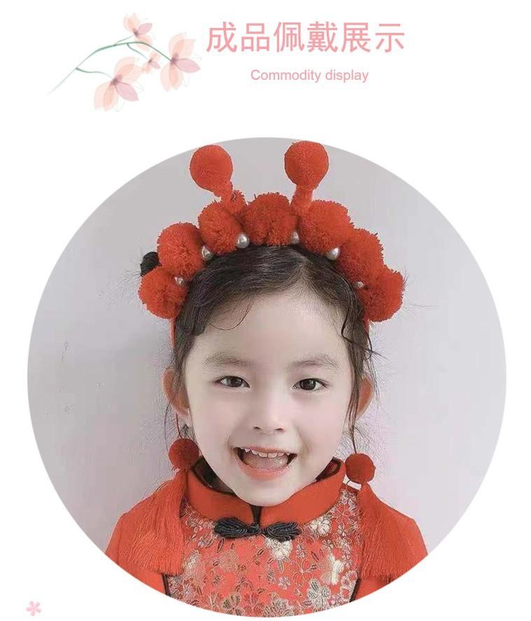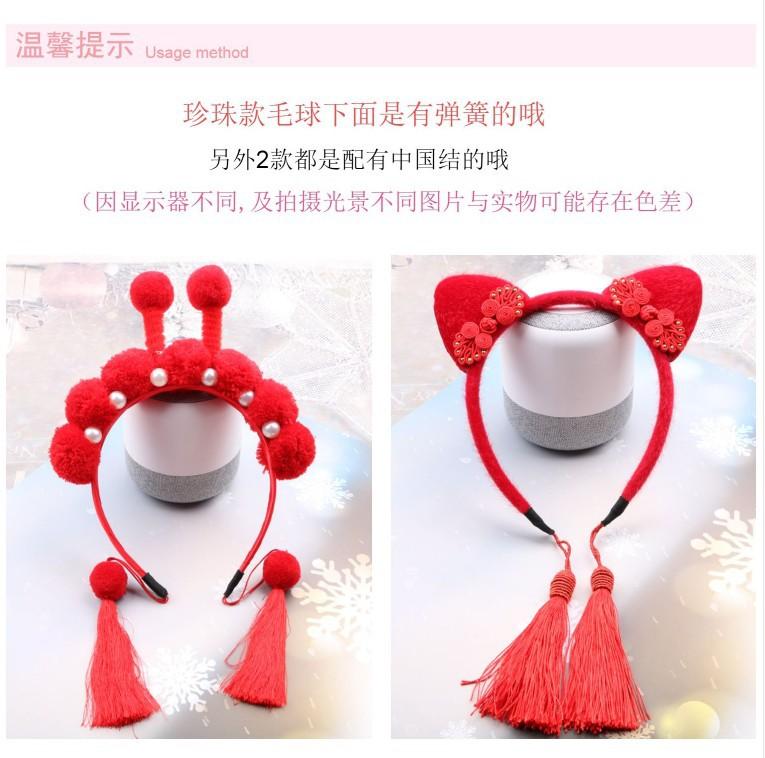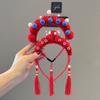 Diadema para niña con borlas de estilo antiguo, diadema roja, accesorio para la cabeza Hanfu de ópera de Pekín para mujer, accesorio para el cabello de Año Nuevo para bebé, estilo de Año Nuevo
