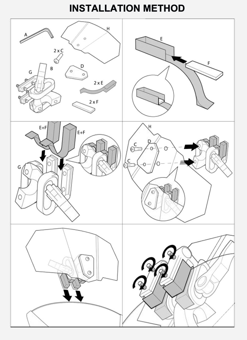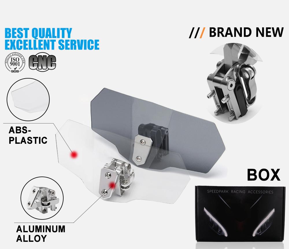 Lista de accesorios: Parabrisas acrílico + Soporte de aleación CNC