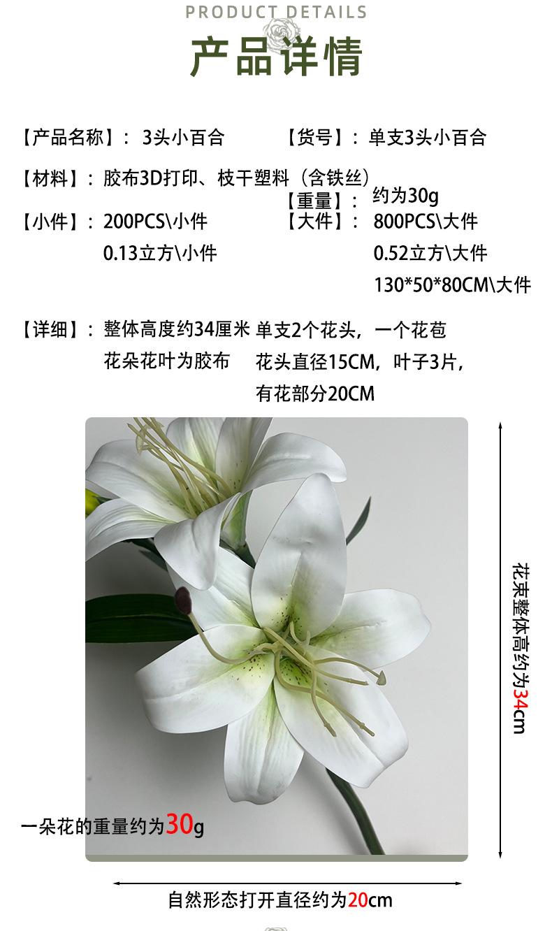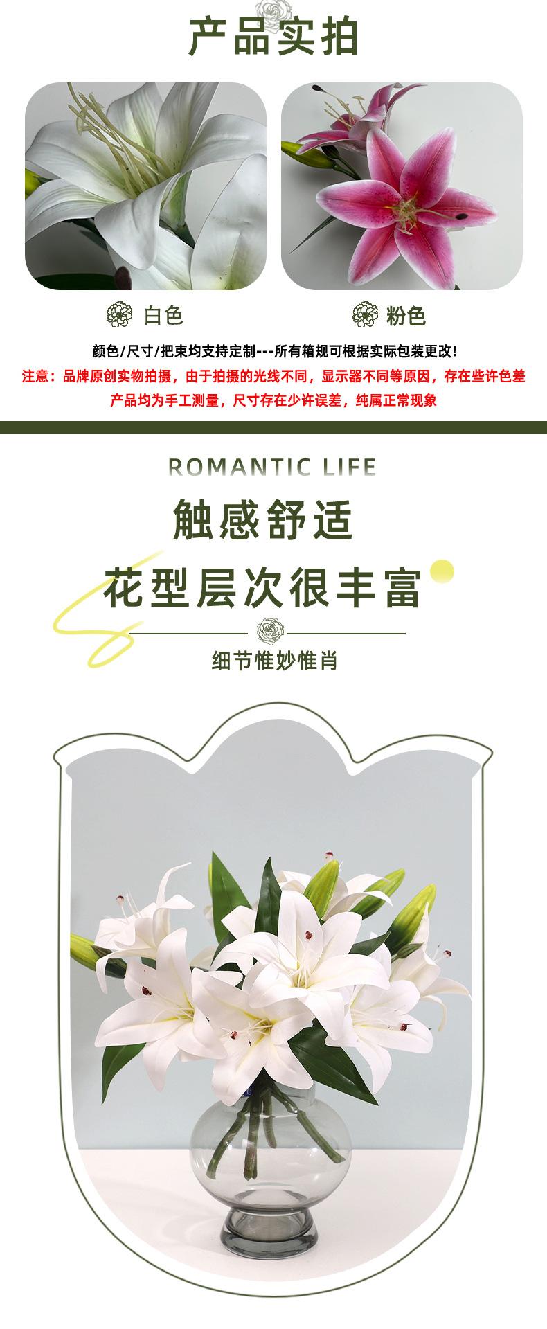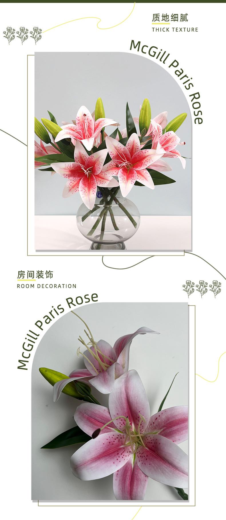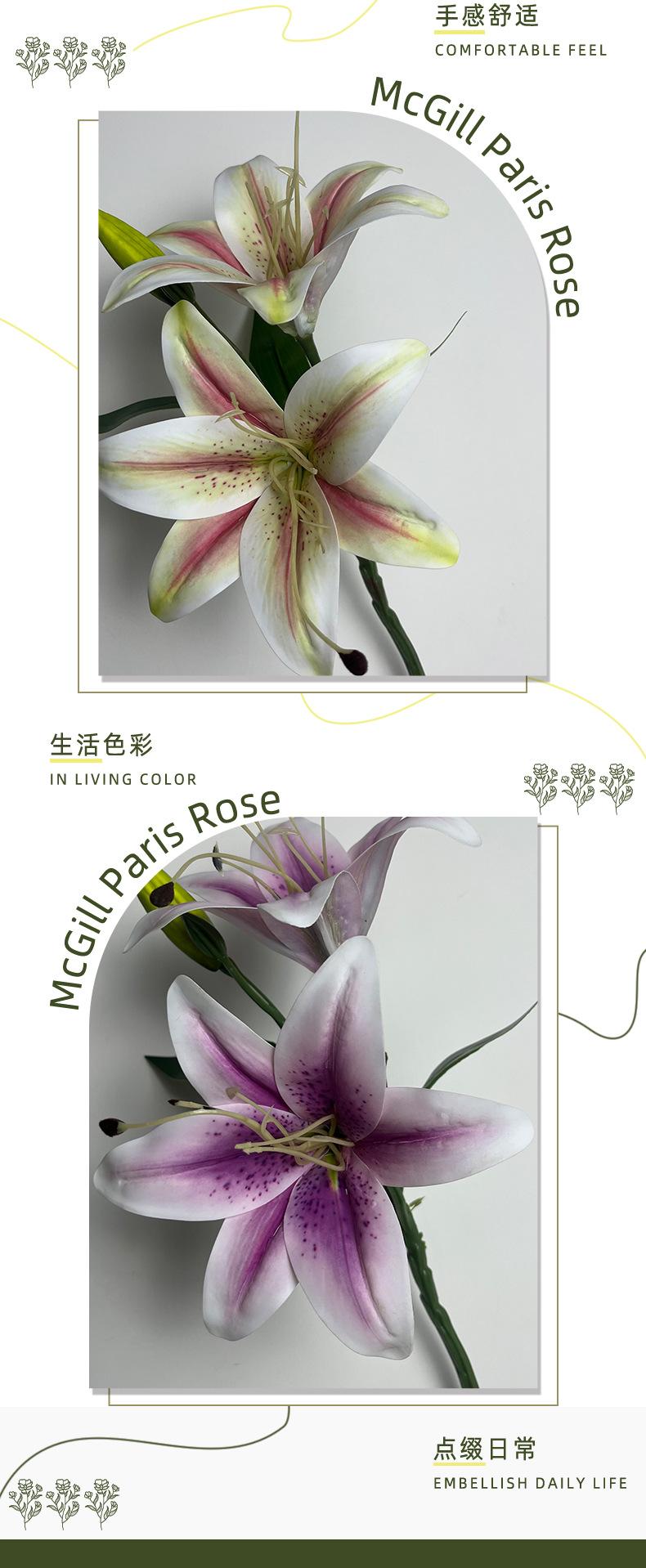Simulación 3D de un solo lirio, 2 flores, 1 capullo, boda, fila de flores, simulación de lirio rojo y blanco.