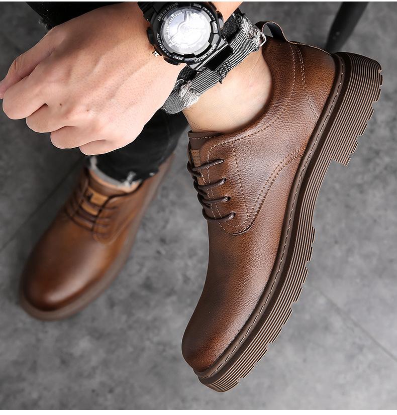 Zapatos Casuales de Cuero Hechos a Mano para Hombre Primavera 2025 Zapatos Retro de Moda para Trabajo con Puntera Grande 6811
