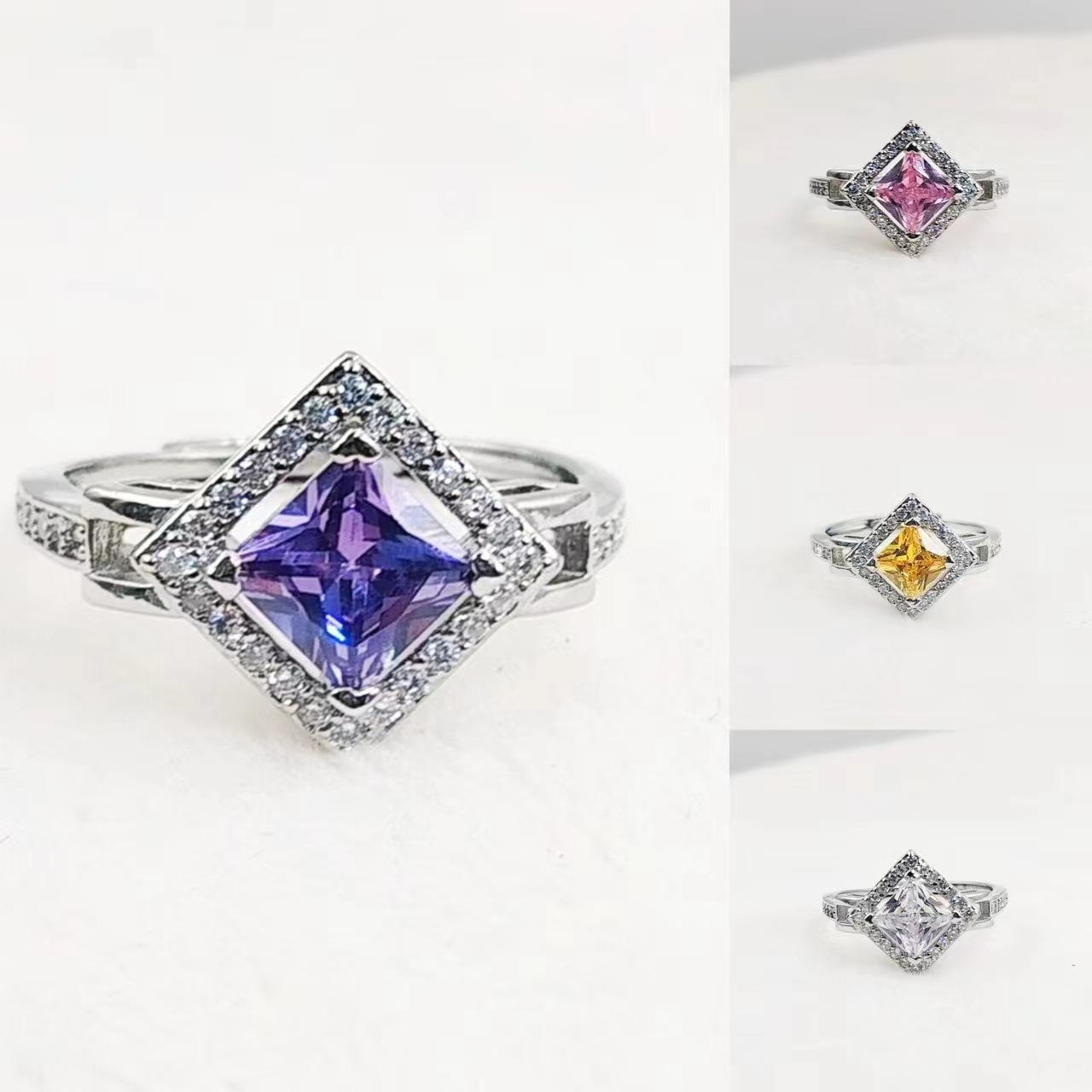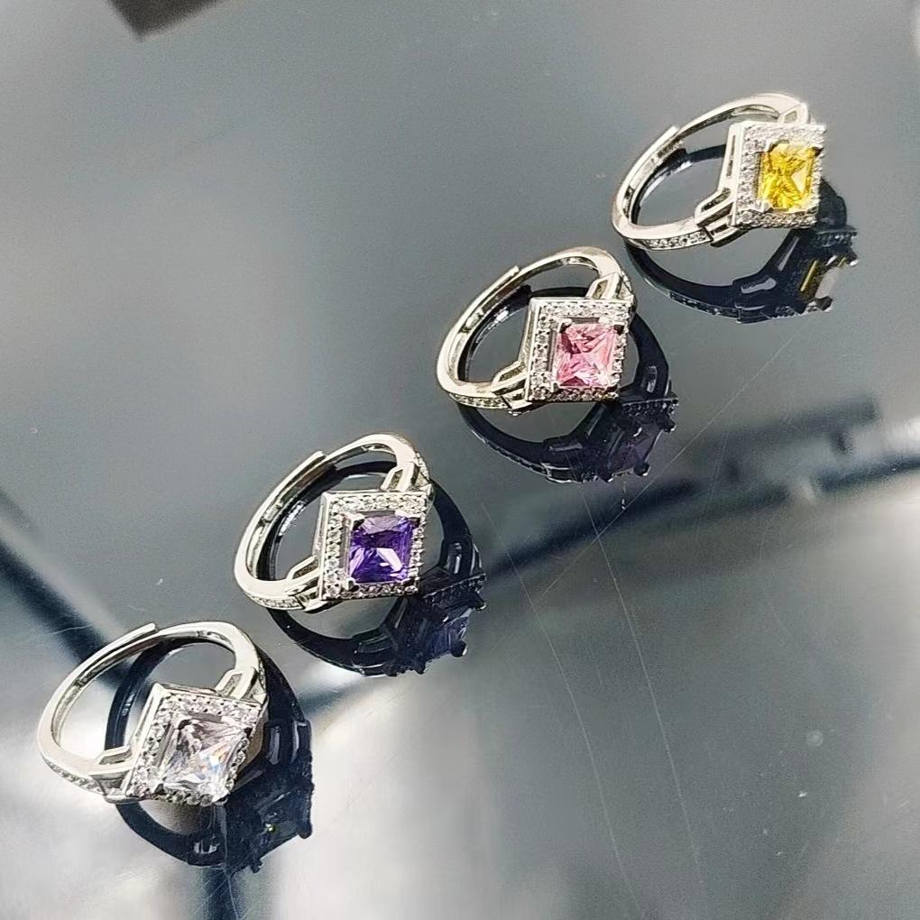 White square live ring for women, Purple square live ring for women, Yellow square live mouth women's ring, Pi...