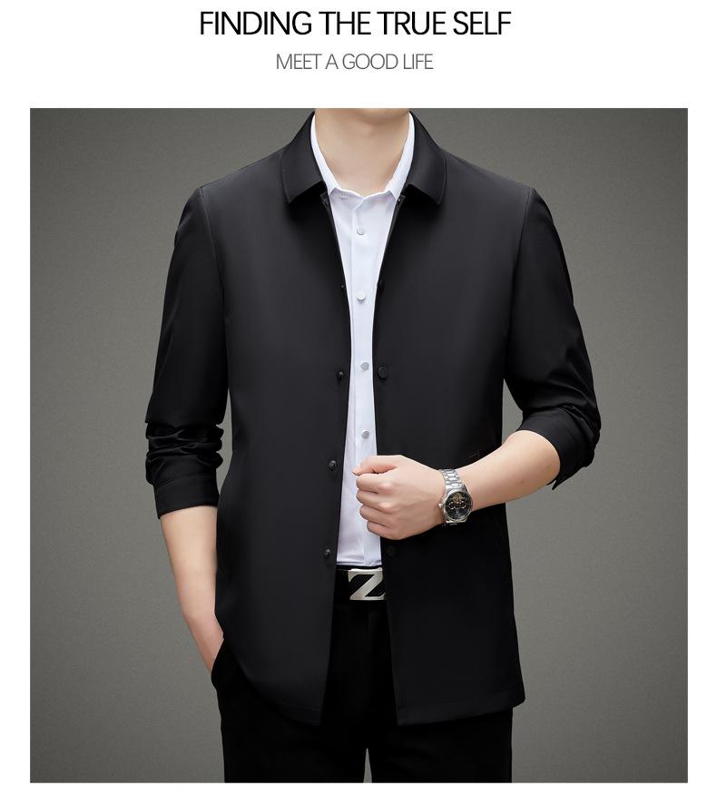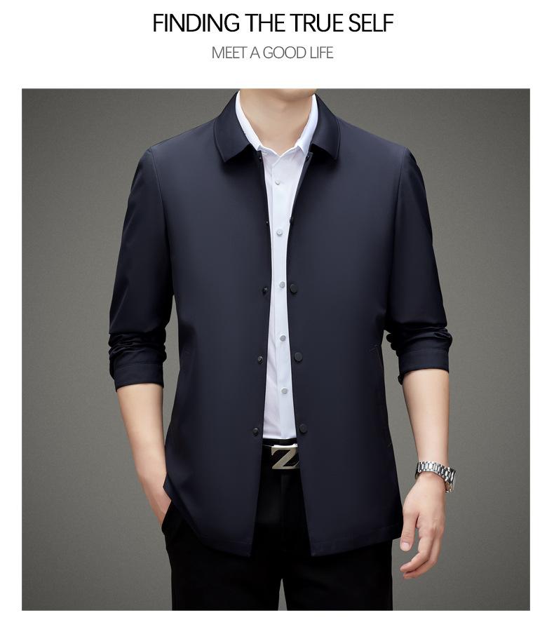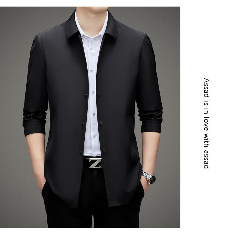 Chaqueta de primavera y otoño para hombre, nueva chaqueta de alta gama con solapa y botones de mediana edad, chaqueta informal de moda de negocios para hombre