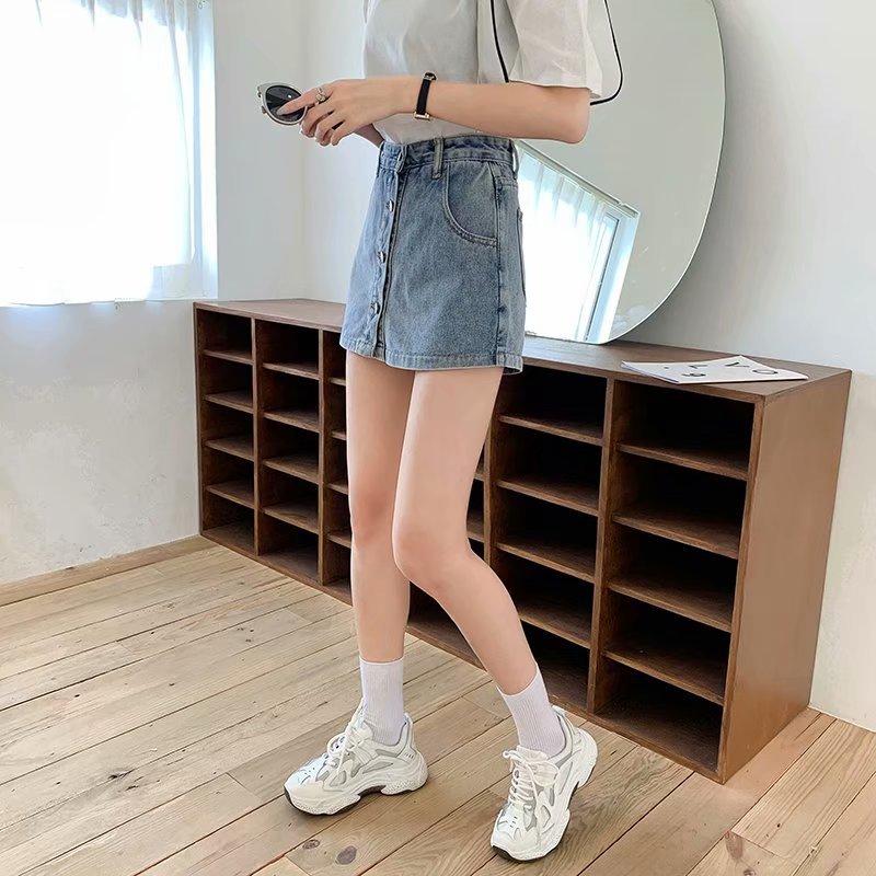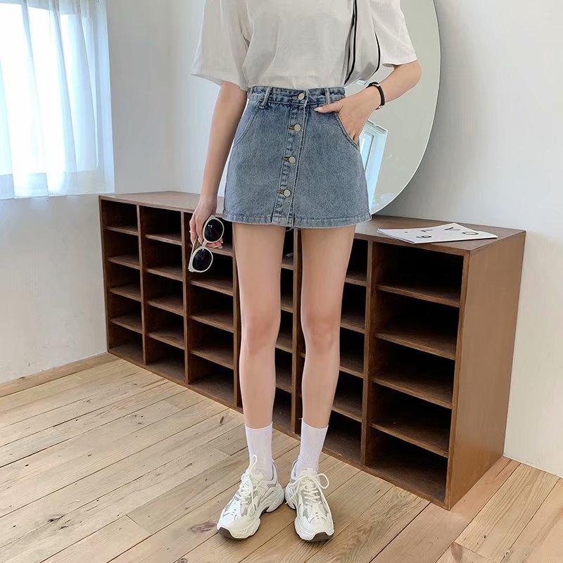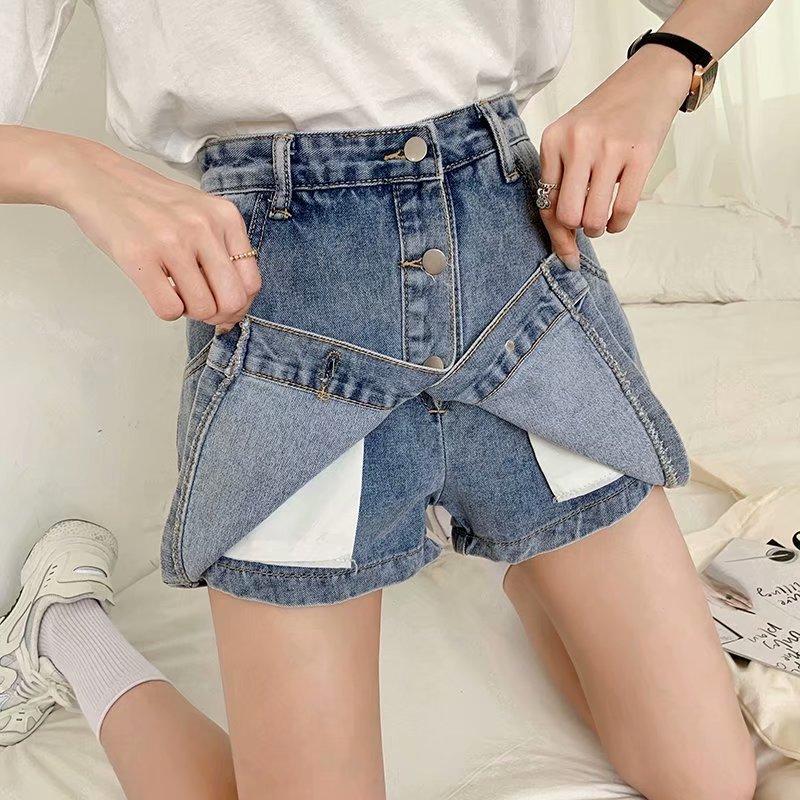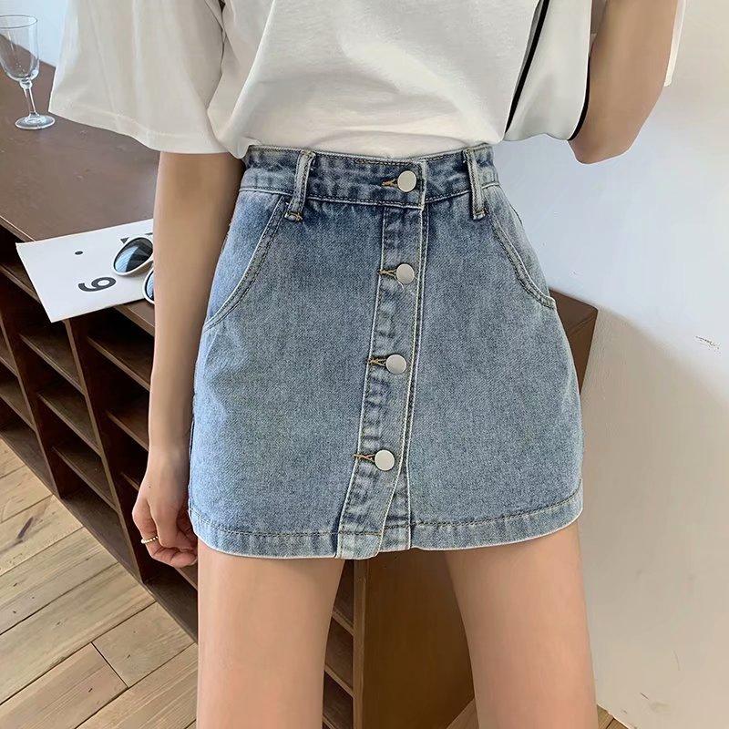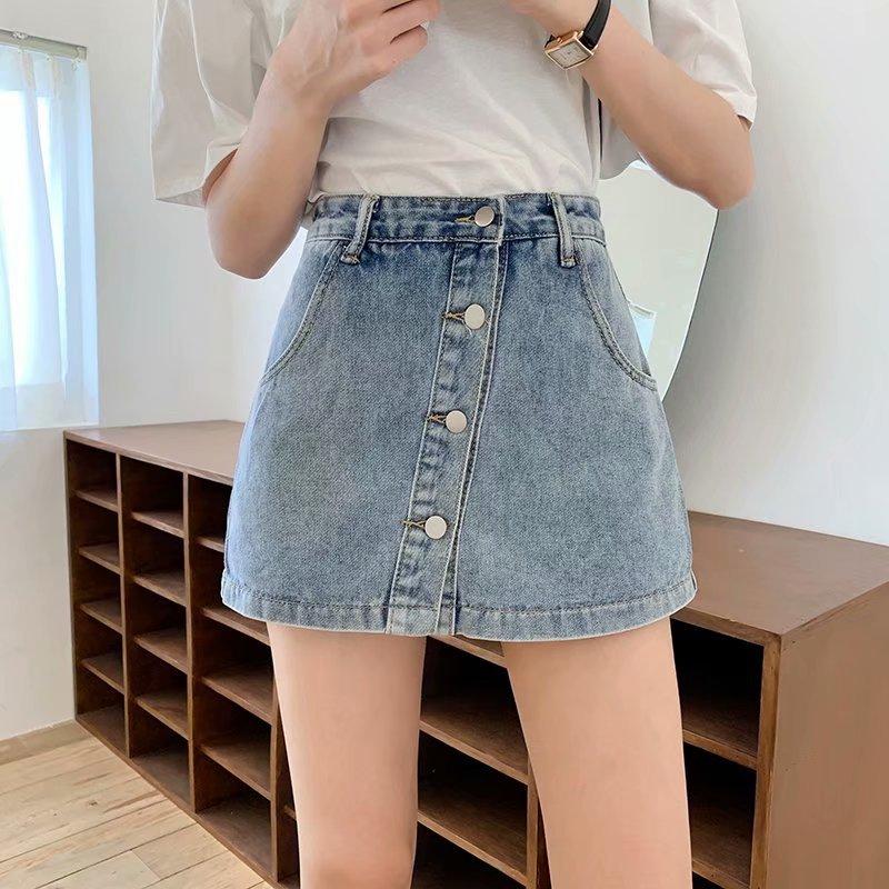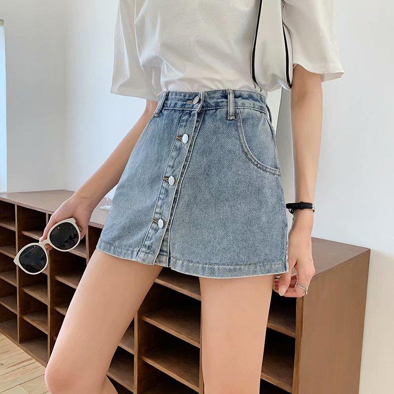 Falda corta de mezclilla con botonadura sencilla para mujer, pantalones cortos antideslumbrantes de verano de talla grande, falda de pierna ancha y cintura alta, una generación de cabello