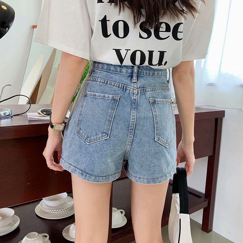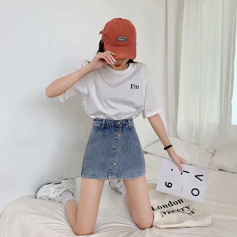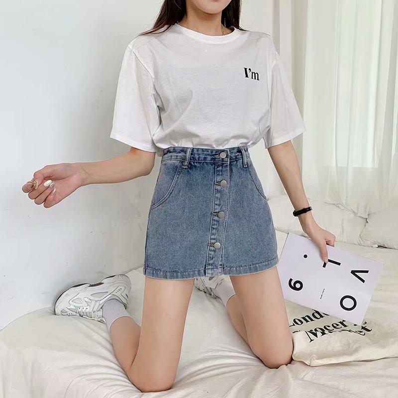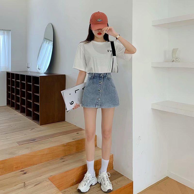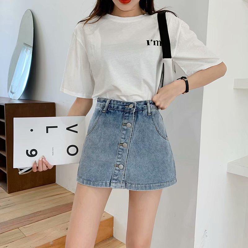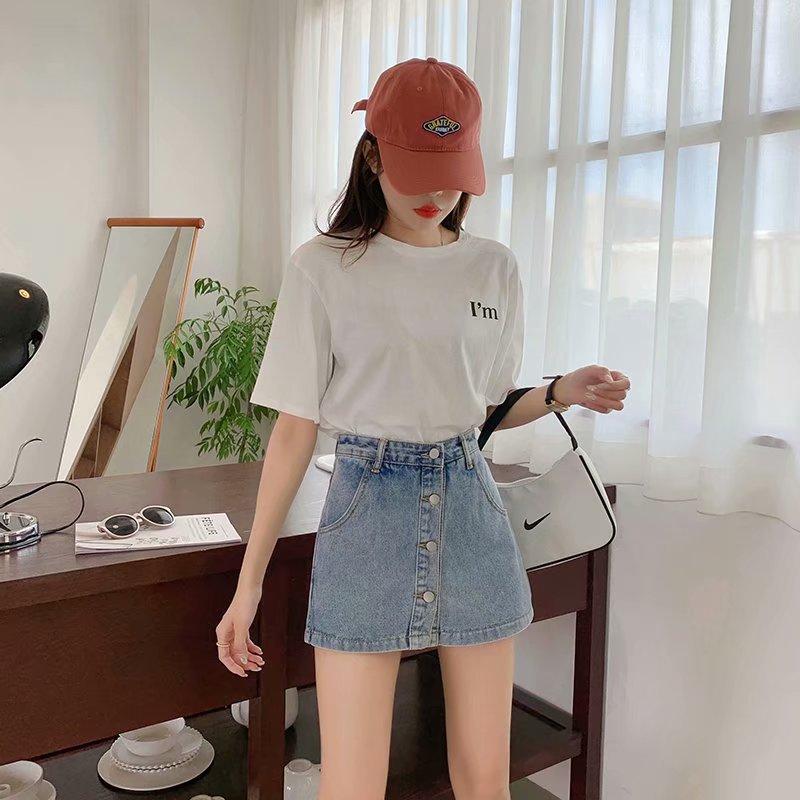 Falda corta de mezclilla con botonadura sencilla para mujer, pantalones cortos antideslumbrantes de verano de talla grande, falda de pierna ancha y cintura alta, una generación de cabello
