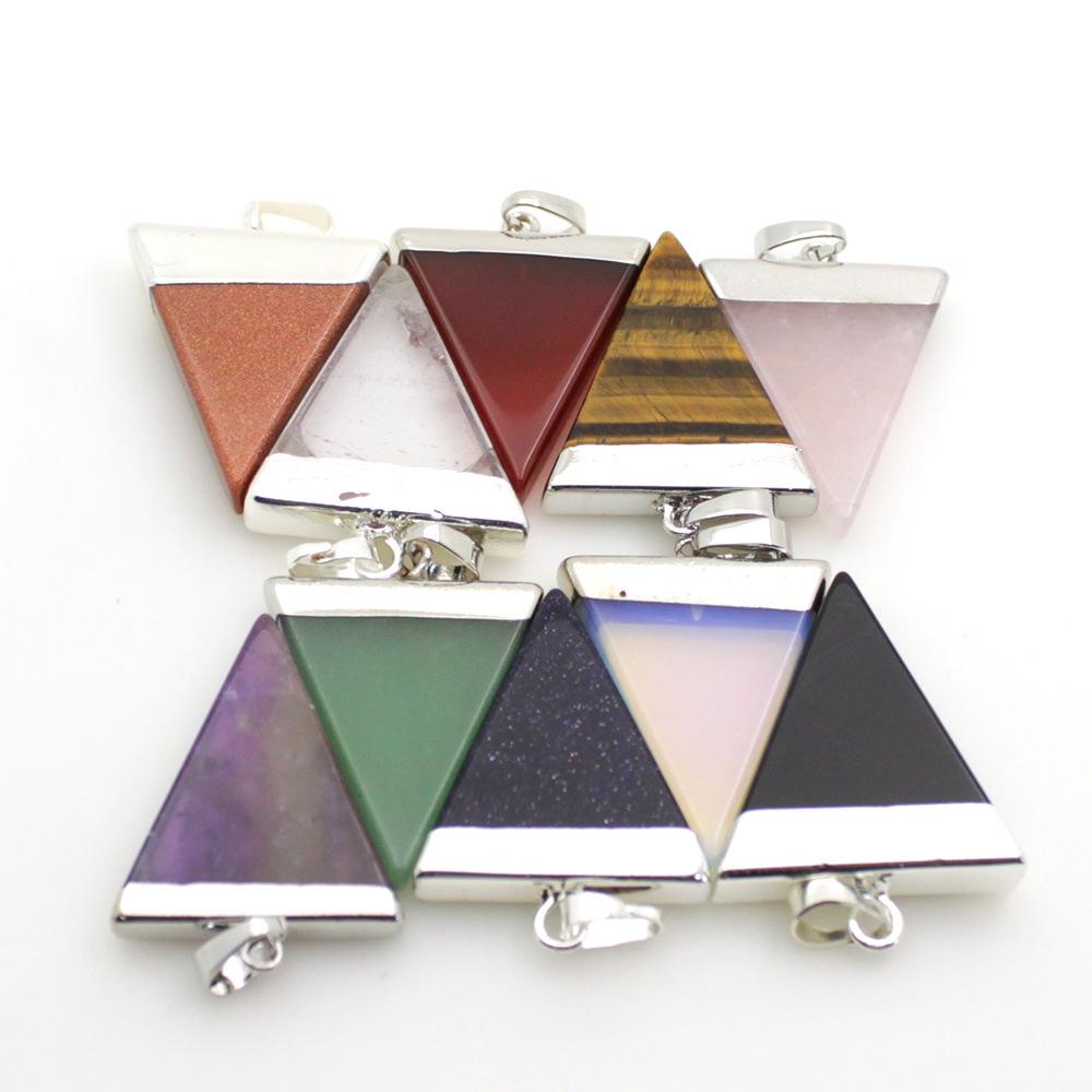 Collar de Cristal Ágata Gema Colgante Triangular Plateado Ebay Amazon Comercio Exterior Transfronterizo Accesorios de Joyería