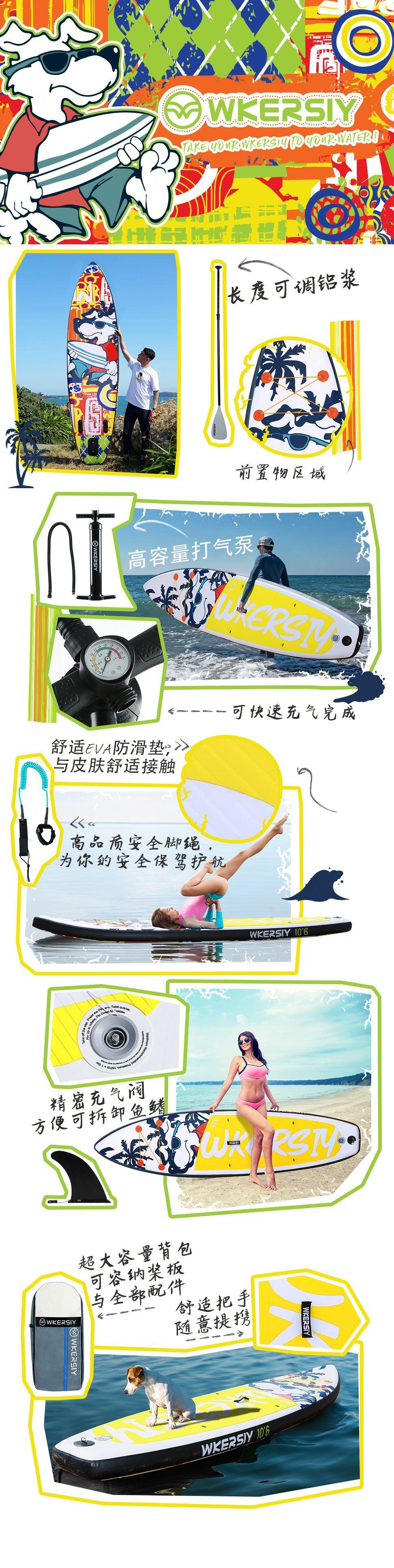 El modelo SYFC320DOG, es el nuevo modelo lanzado por la empresa en 2022. Con colores brillantes y un diseño llamativo, es una tabla de paddle surf que es muy popular entre los jóvenes en las plataformas transfronterizas. Viene con un juego completo de accesorios personalizados, incluyendo una tabla de paddle surf inflable, una mochila ISUP, un remo de aluminio ajustable de tres secciones y una bomba específica para inflado. El producto admite dropshipping, y damos la bienvenida a todos los clientes a tomar muestras.