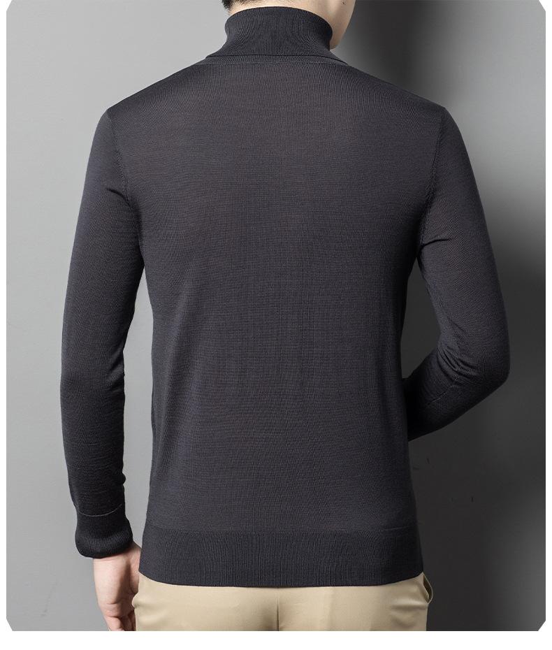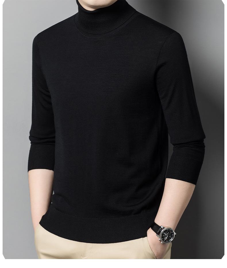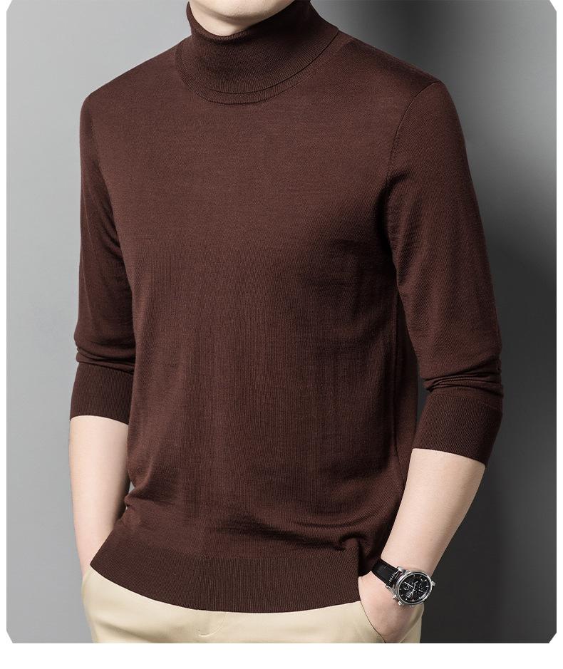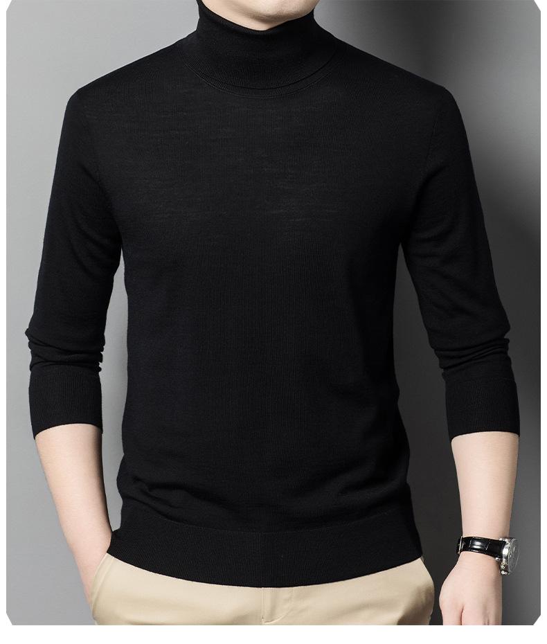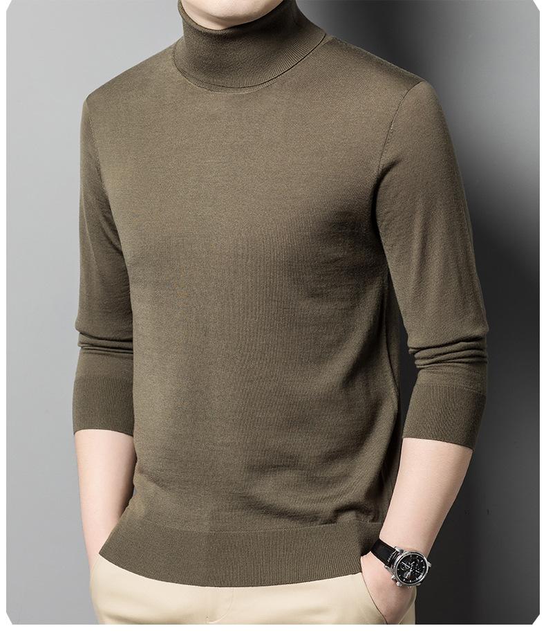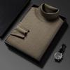 Suéter de cuello alto de otoño e invierno, suéter de lana, camisa informal de lana peinada para hombres jóvenes y de mediana edad, suéter de color sólido