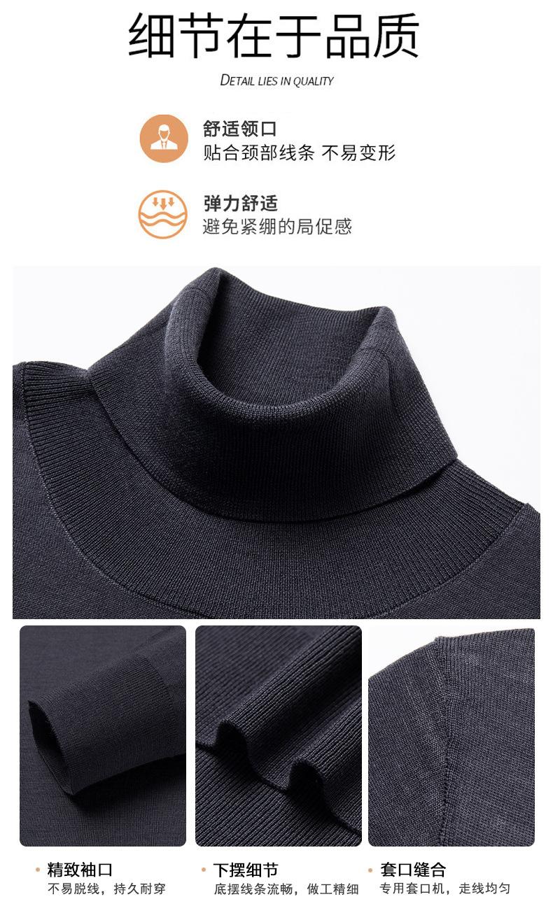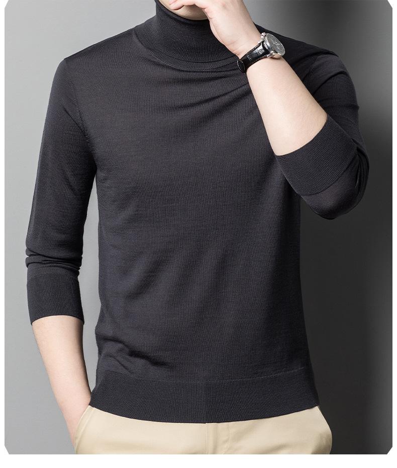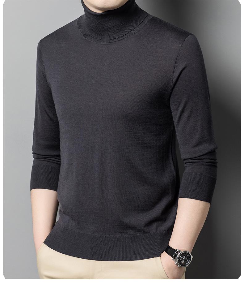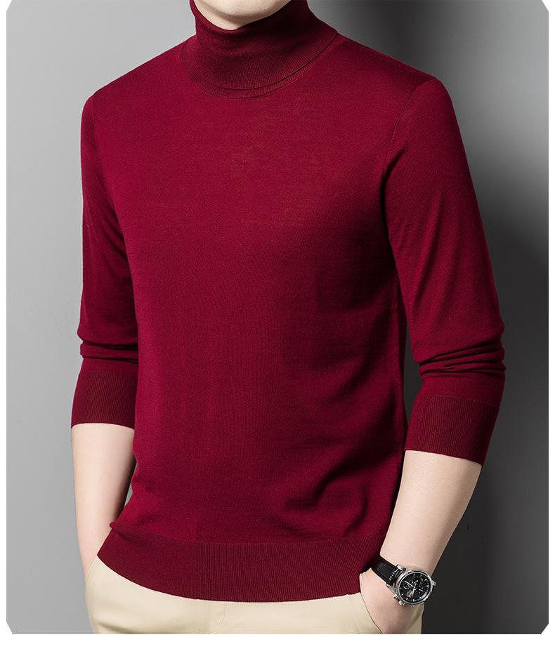 Suéter de cuello alto de otoño e invierno, suéter de lana, camisa informal de lana peinada para hombres jóvenes y de mediana edad, suéter de color sólido