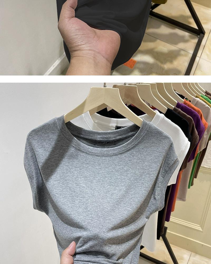 Camiseta de manga corta Xiaofei para mujer, verano 2024, nuevo diseño, estilo occidental, estilo moderno y holgado, adelgazante.