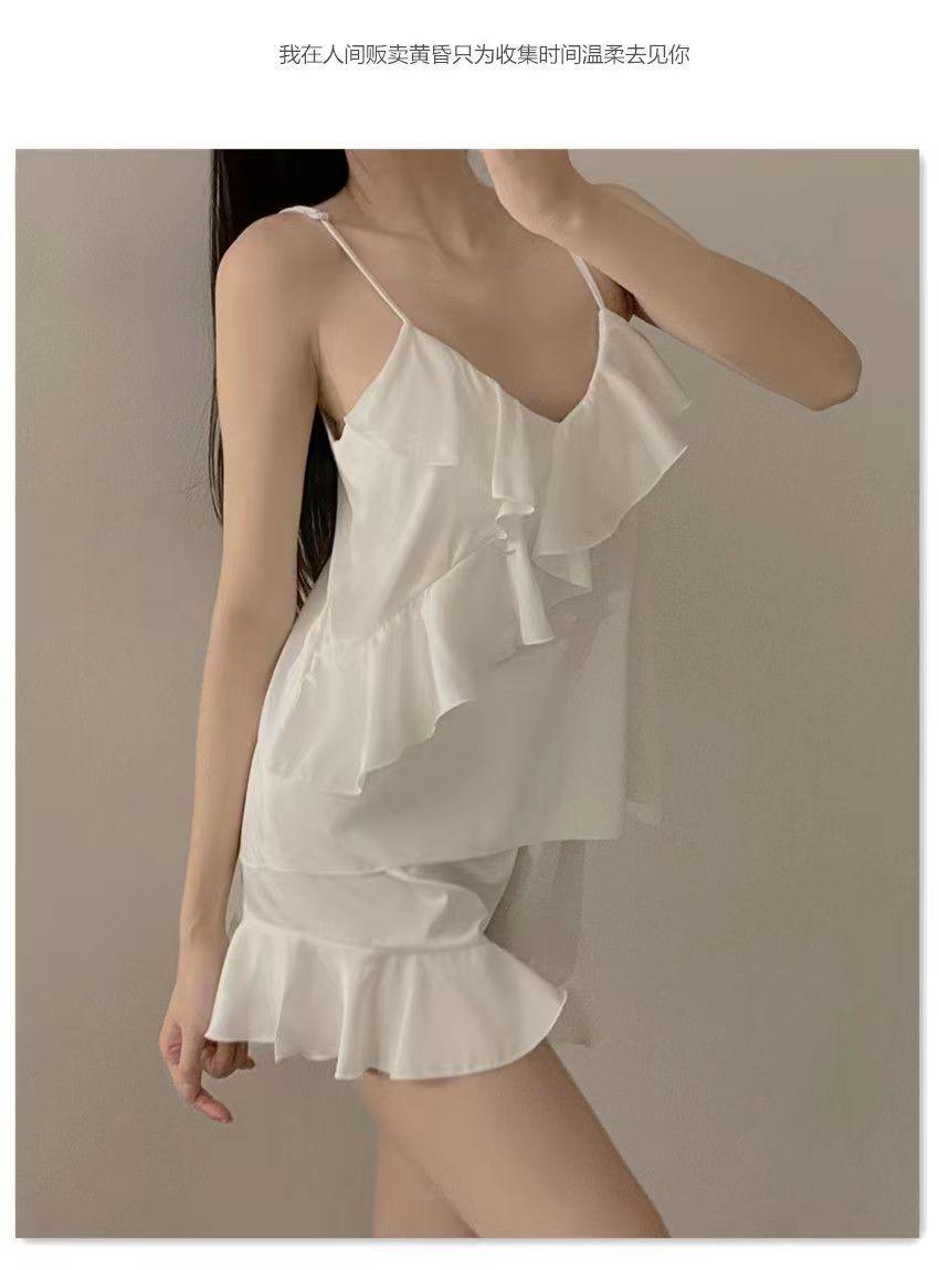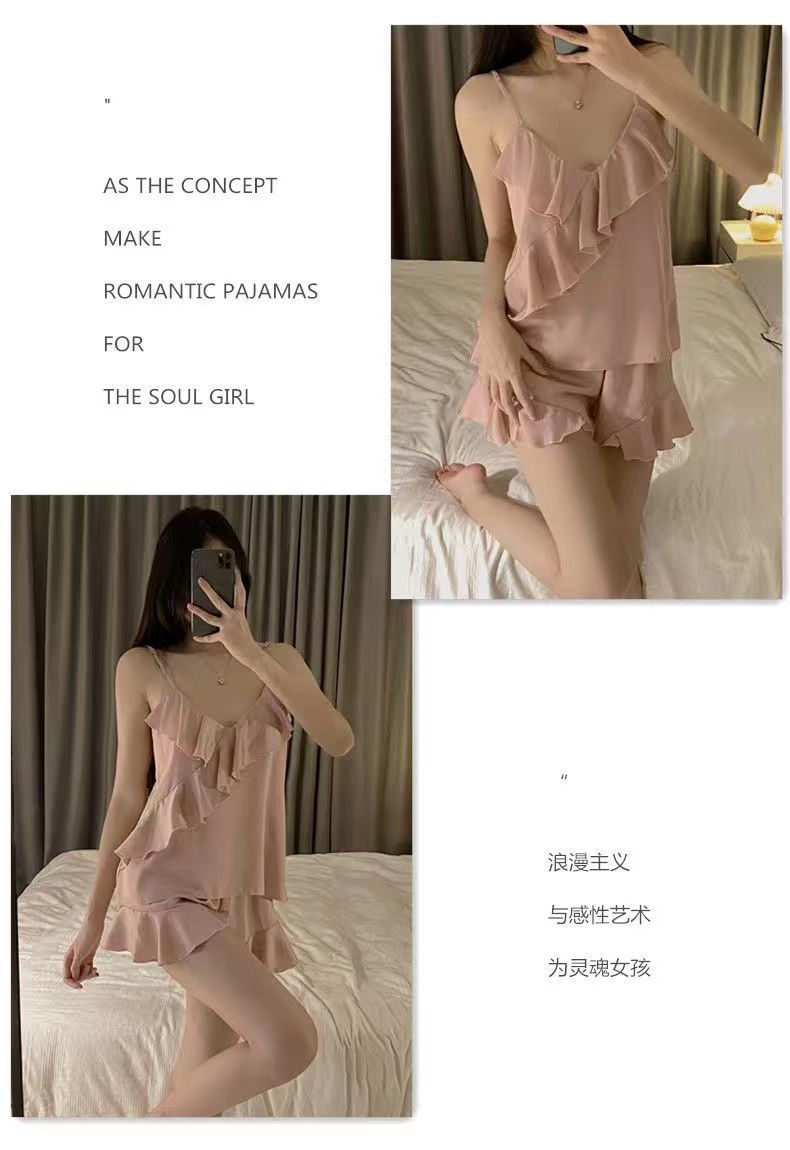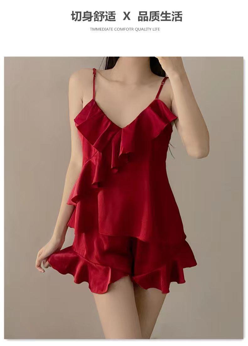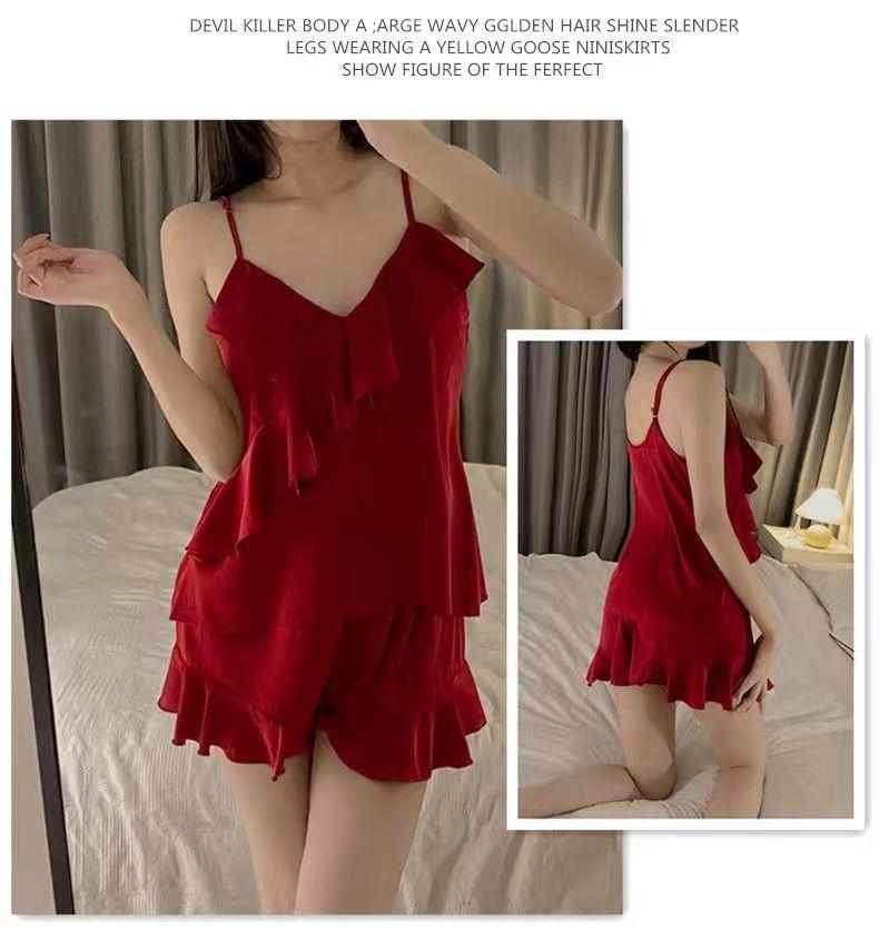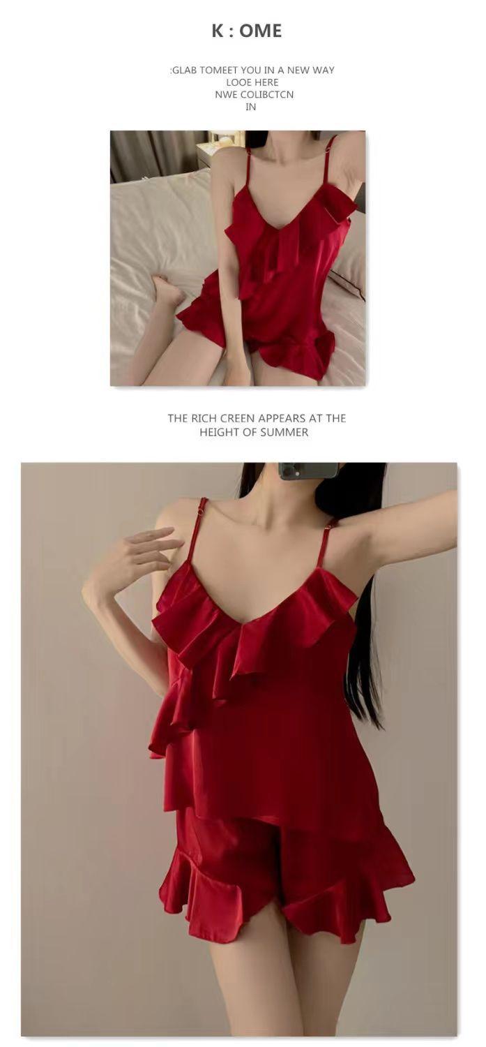 Pijama Ropa de Noche para Mujer, Verano Sexy Camisola de Seda de Hielo y Shorts Conjunto de Dos Piezas, Ropa para el Hogar, Estilo Celebridad de Internet, Divertido