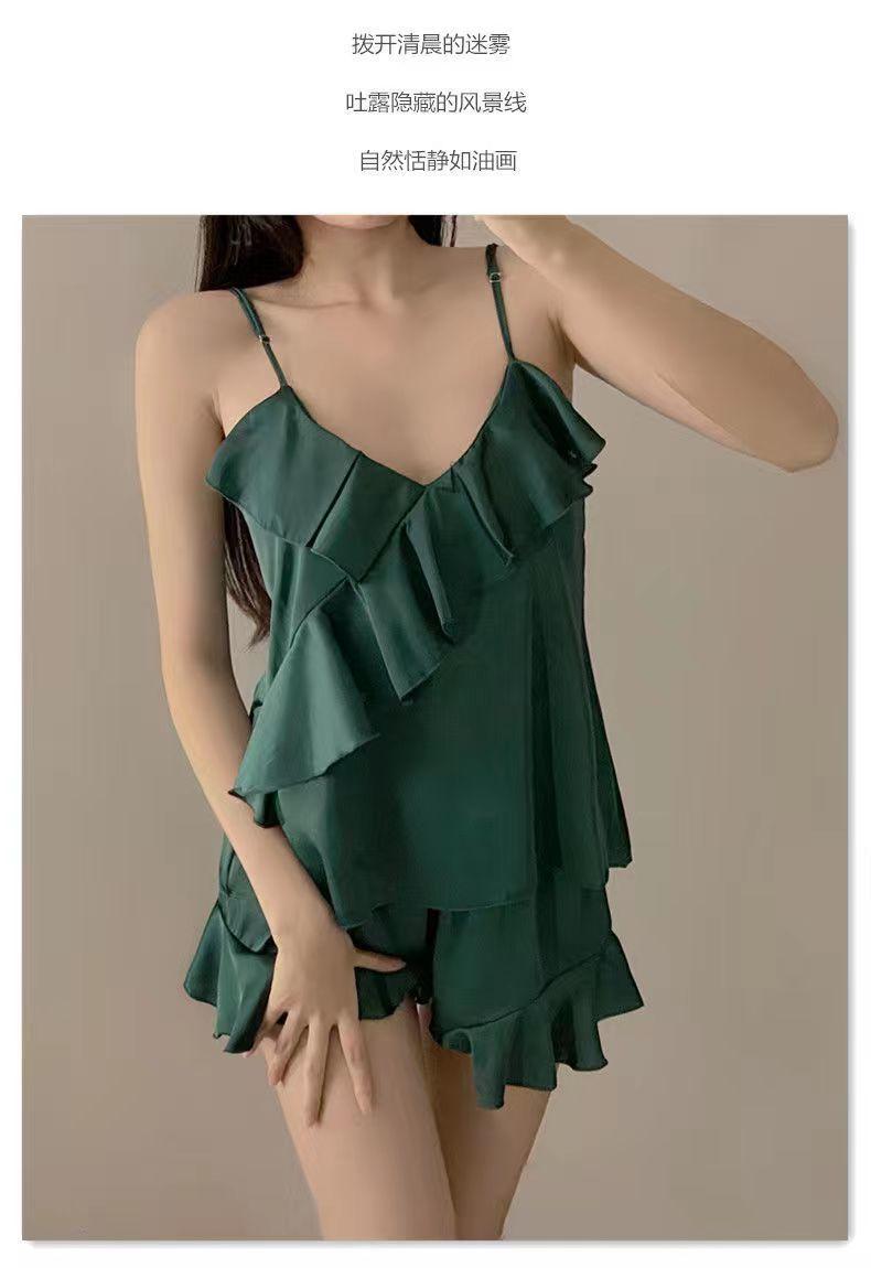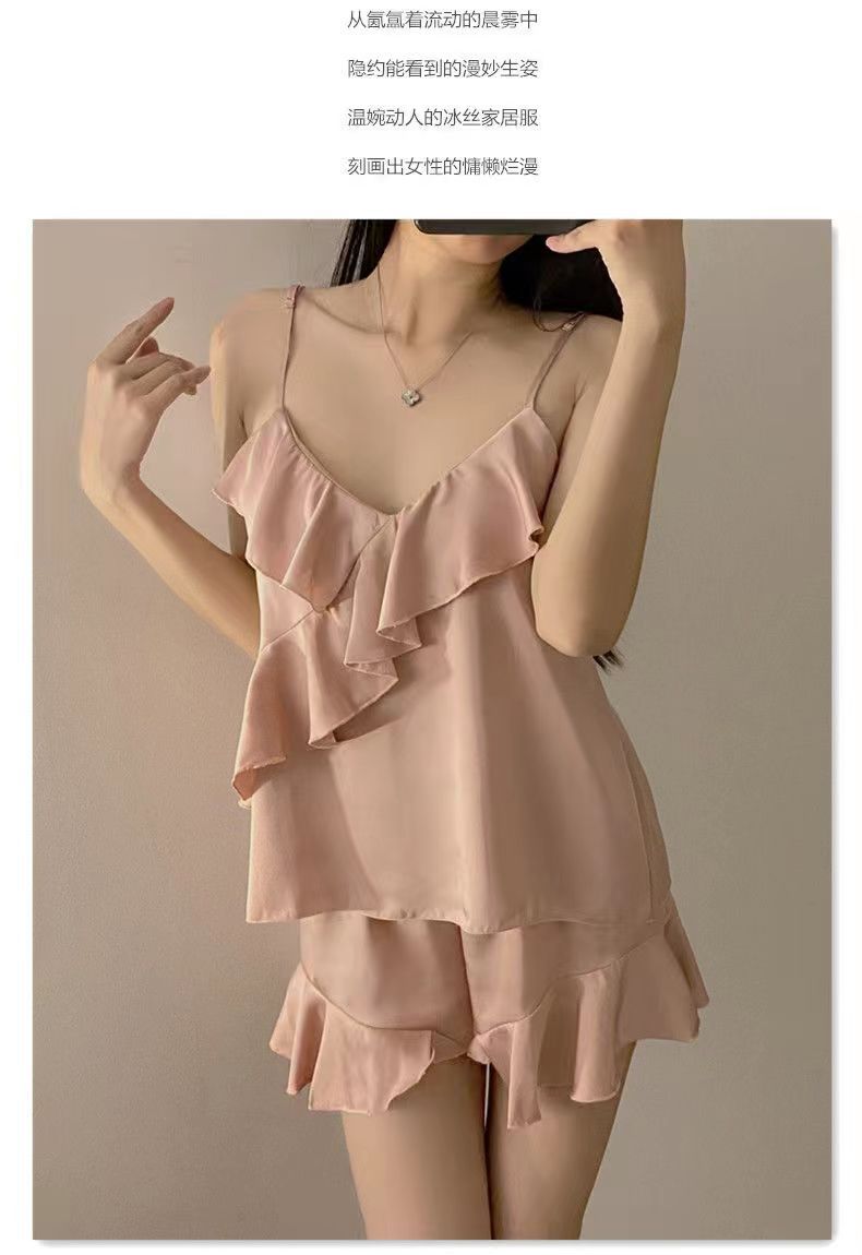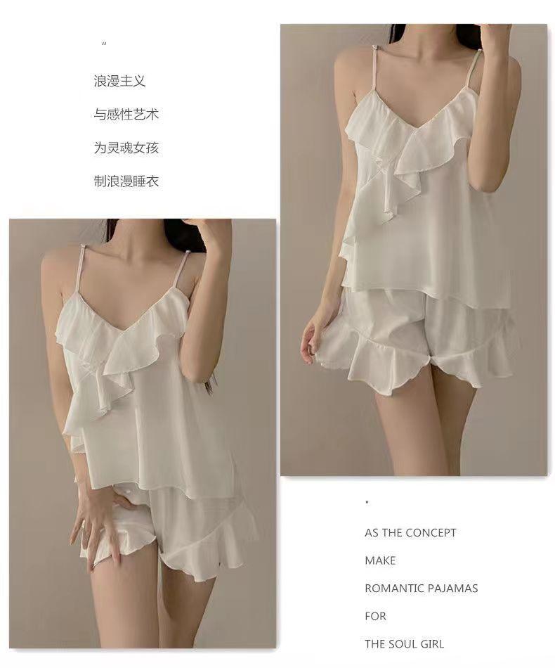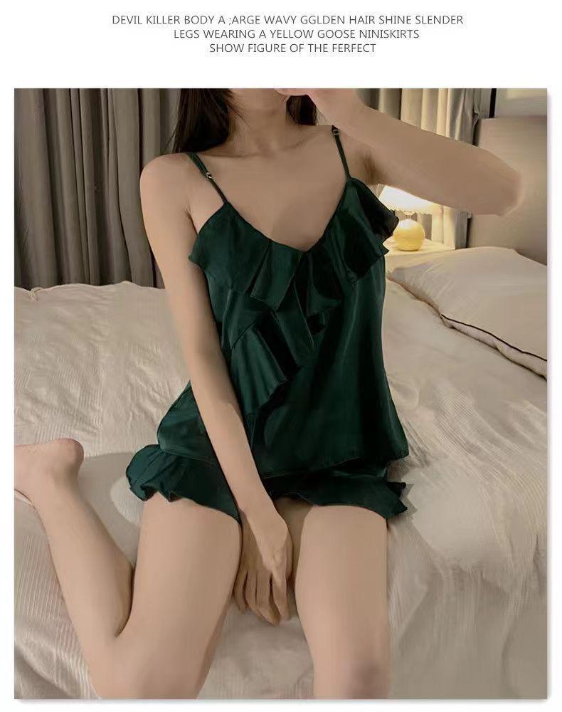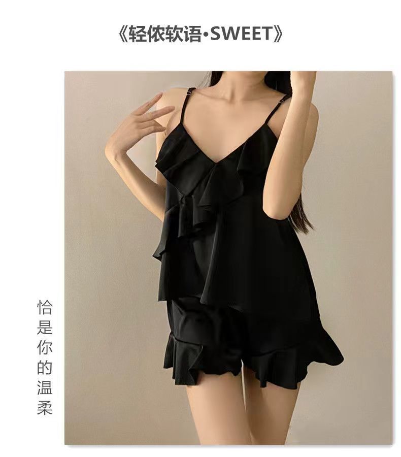 Pijama Ropa de Noche para Mujer, Verano Sexy Camisola de Seda de Hielo y Shorts Conjunto de Dos Piezas, Ropa para el Hogar, Estilo Celebridad de Internet, Divertido