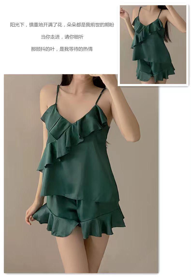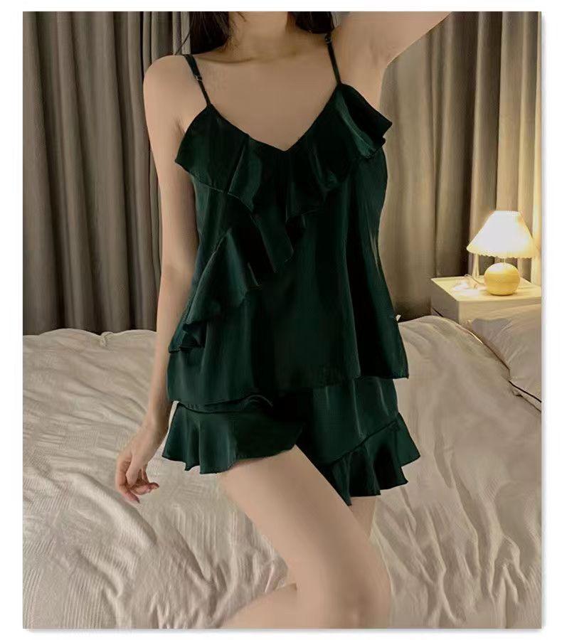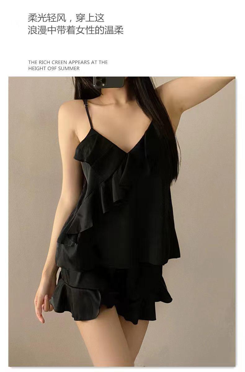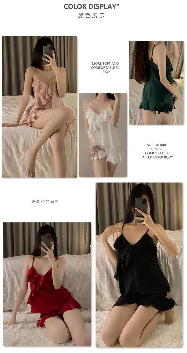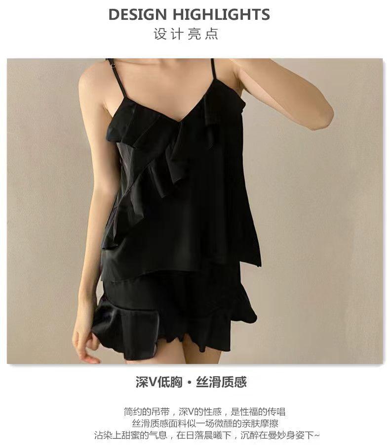 Pijama Ropa de Noche para Mujer, Verano Sexy Camisola de Seda de Hielo y Shorts Conjunto de Dos Piezas, Ropa para el Hogar, Estilo Celebridad de Internet, Divertido
