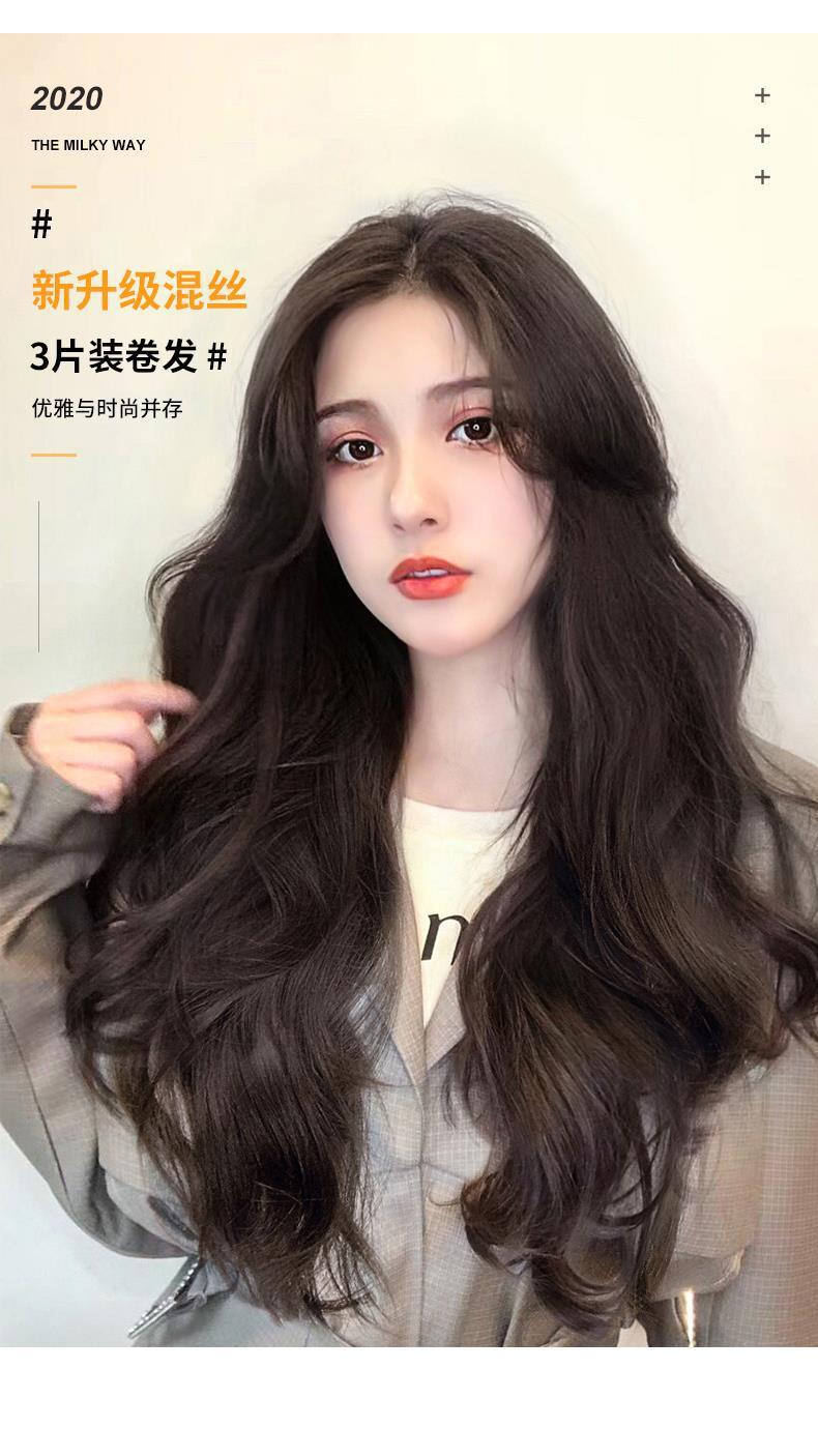 Pelucas para mujer, pelucas largas de tres piezas, extensiones de cabello de simulación de celebridades de internet con ondas grandes, cabello largo y rizado, extensiones de cabello largo y liso.