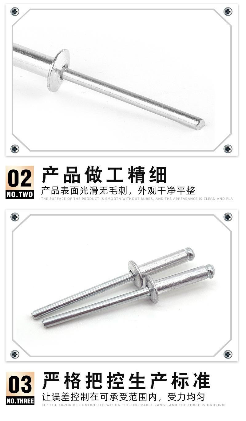 Remaches de Aluminio de Cabeza Redonda Serie 2.4-6.4 Remaches Ciegos de Núcleo de Hierro de Aluminio Natural
