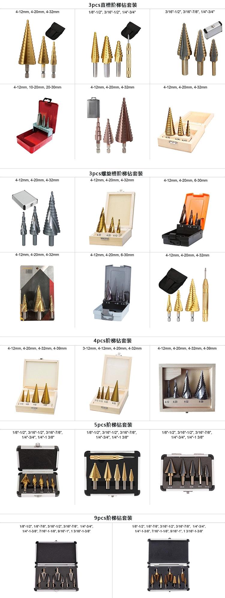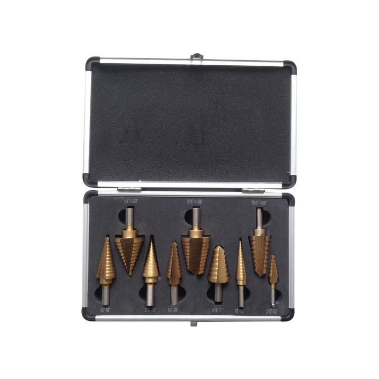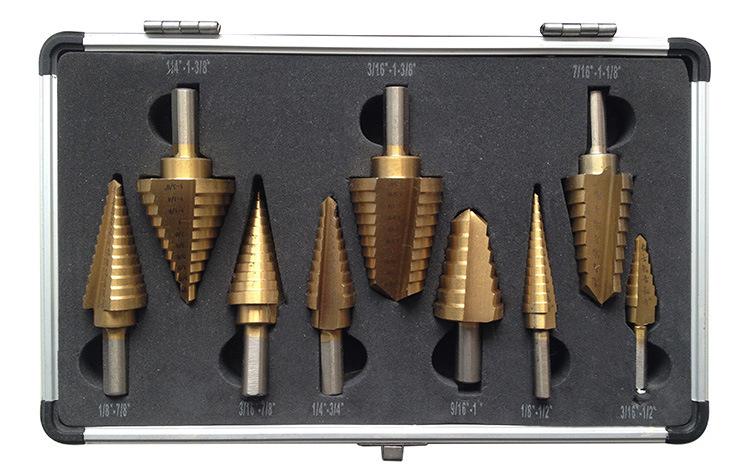 Juego de brocas escalonadas de 9 piezas en caja de aluminio