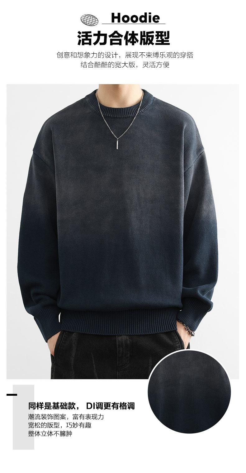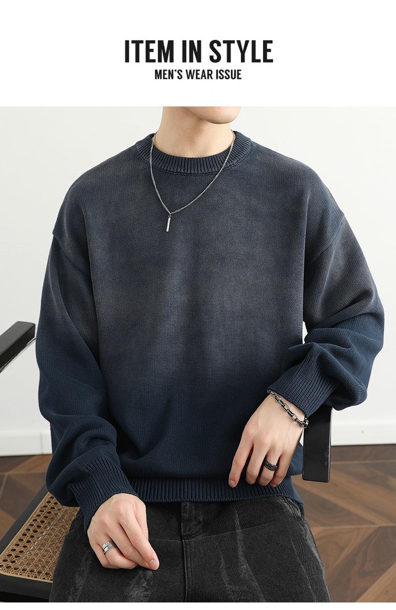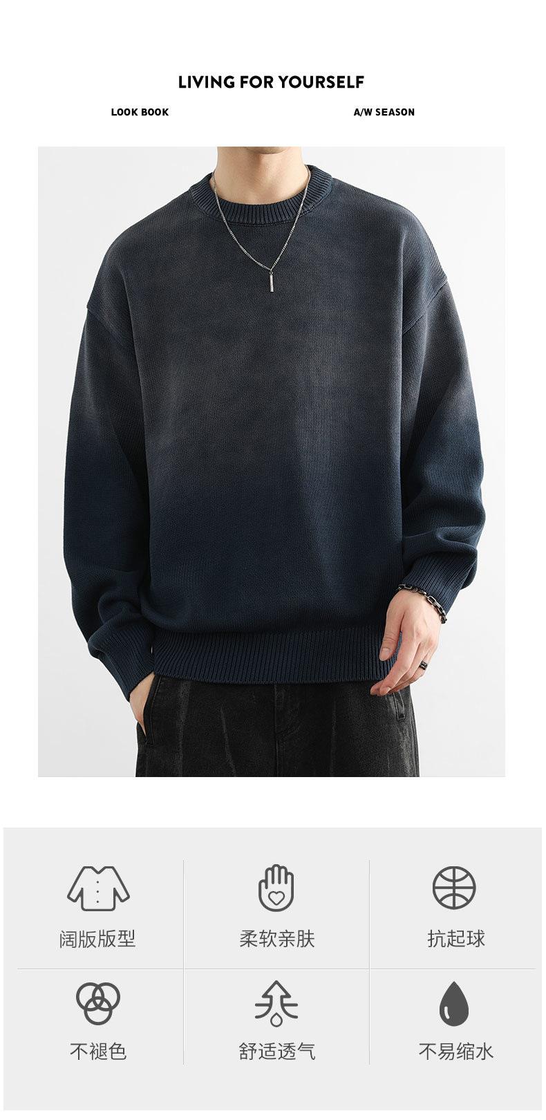 Suéter de algodón puro para hombre, otoño e invierno, marca de moda, suelto, ropa para hombre, degradado, camisa básica que combina con todo, suéter cálido, suéter para hombre