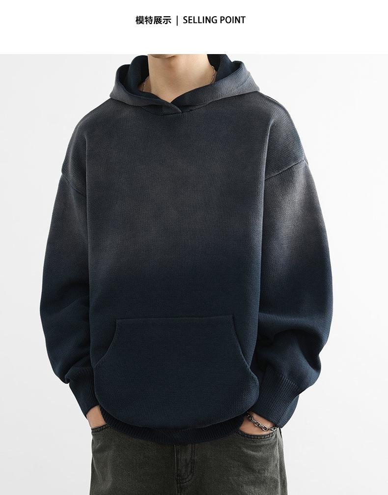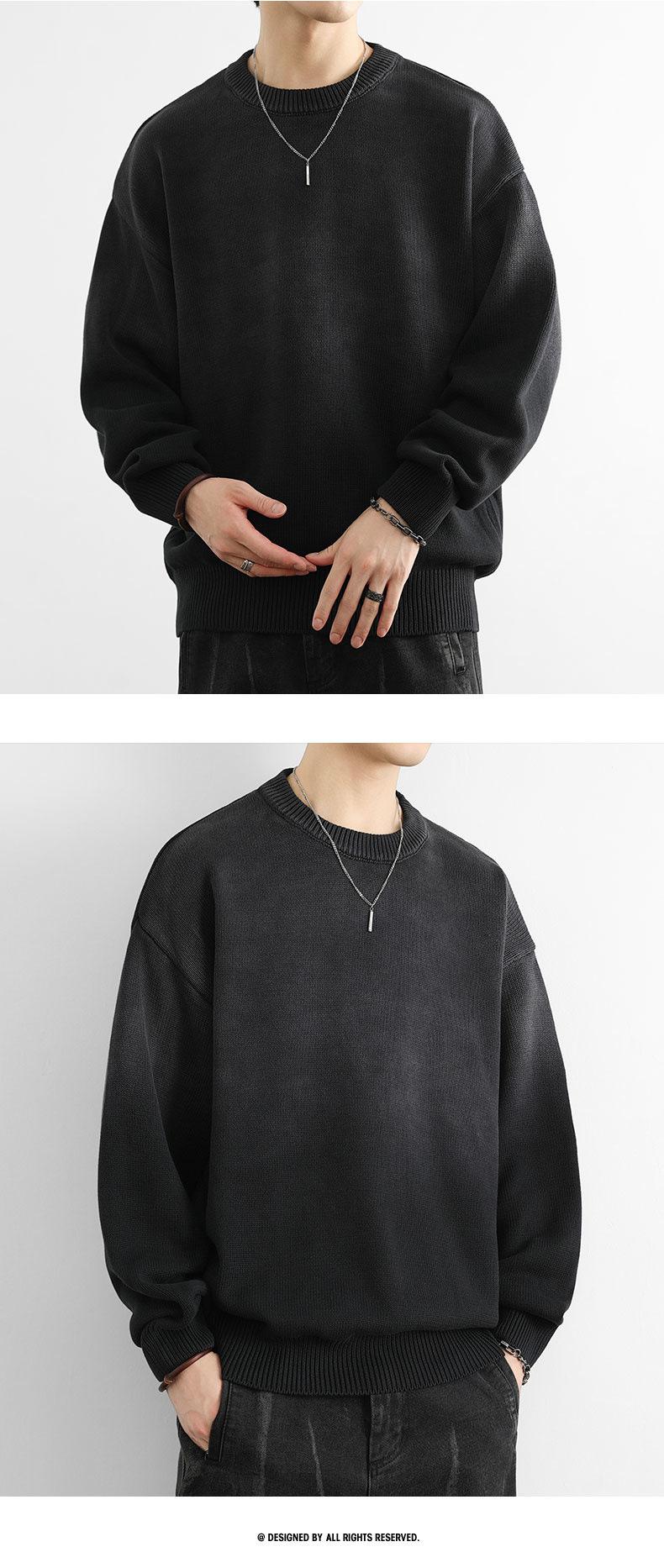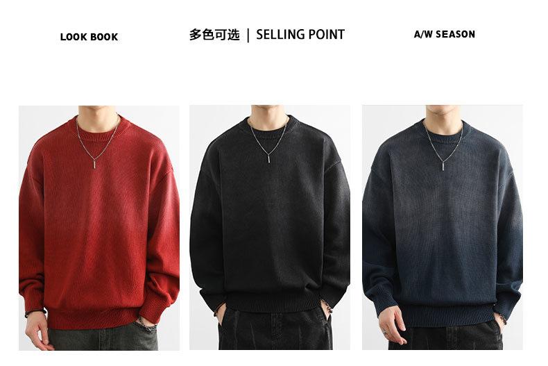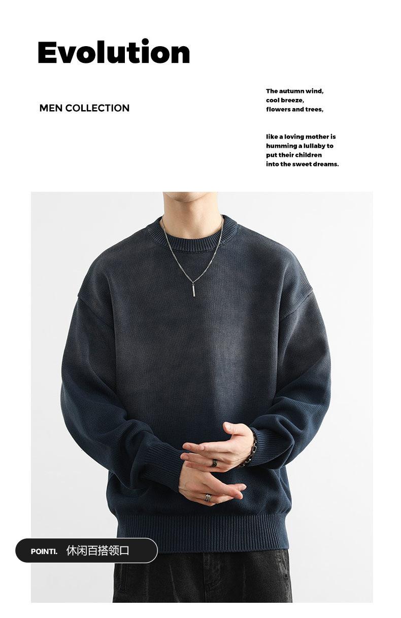Suéter de algodón puro para hombre, otoño e invierno, marca de moda, suelto, ropa para hombre, degradado, camisa básica que combina con todo, suéter cálido, suéter para hombre