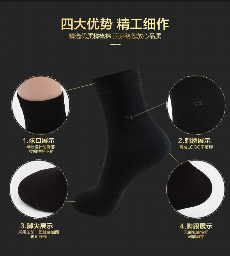 //Langsha LF3125monocromoMalla transpirable cuatro estacionesmasculinoCalcetines de algodón, colores mixtos en una caja, 57.8% algodón + 39% poliéster + 3.2% elastano//