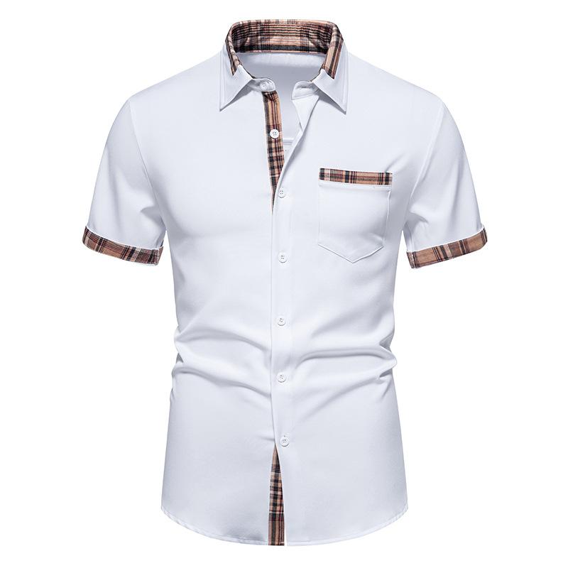 Camisa de manga corta con hebilla de color para hombre, nueva camisa informal de verano de comercio exterior de Amazon, estilo juvenil