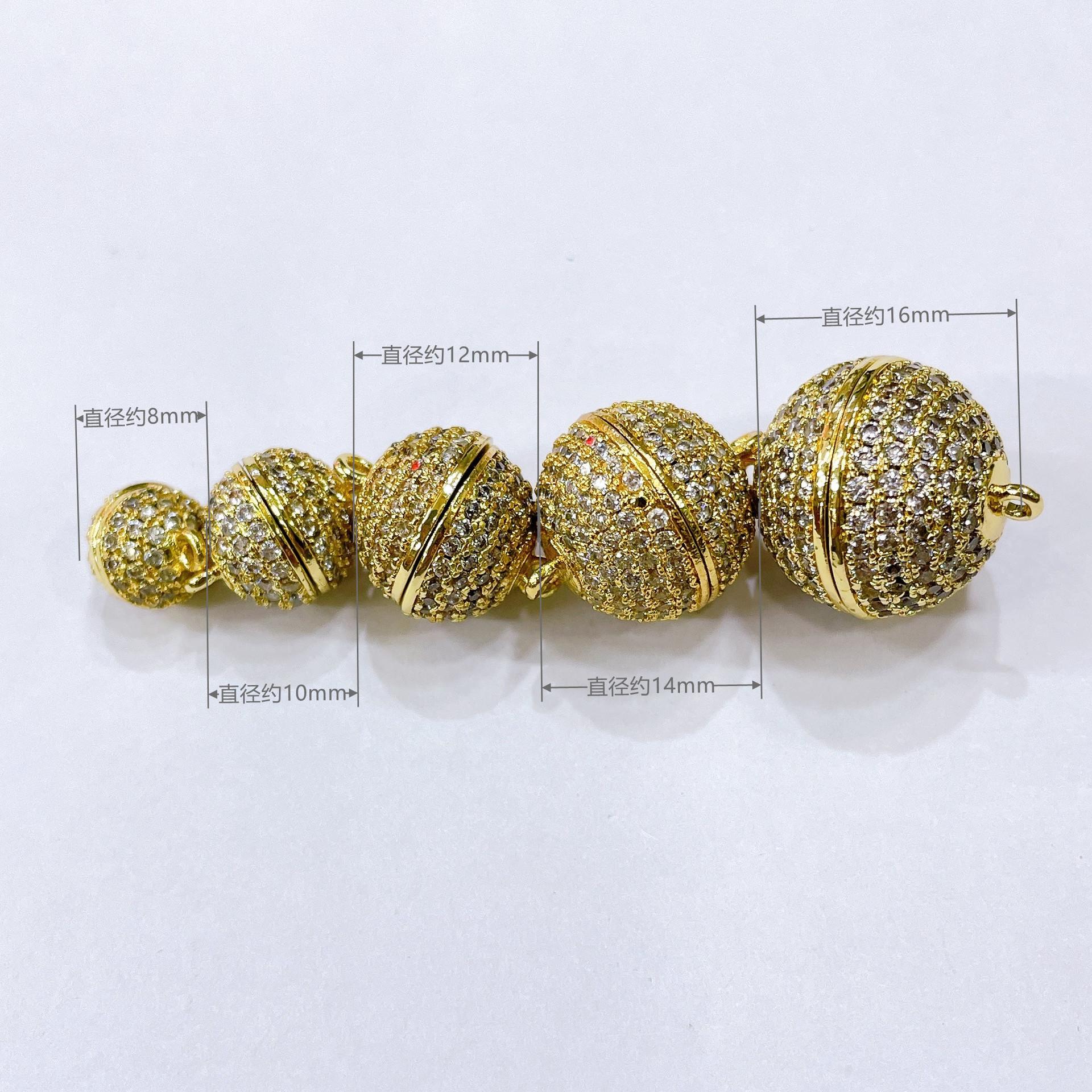 Popular 18K Diamante Redondo Esférico Hebilla Magnética Joyería Hebilla Hecho a Mano DIY Pulsera Collar Cuerda de Cuentas Acabado Hebilla Magnética
