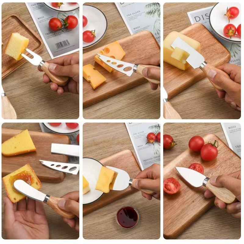 four-piece set, Cheese Fork, Cheese spatula, Cheese Knife, Cheese Flat Knife, Cream knife, Machete, Oak four-p...