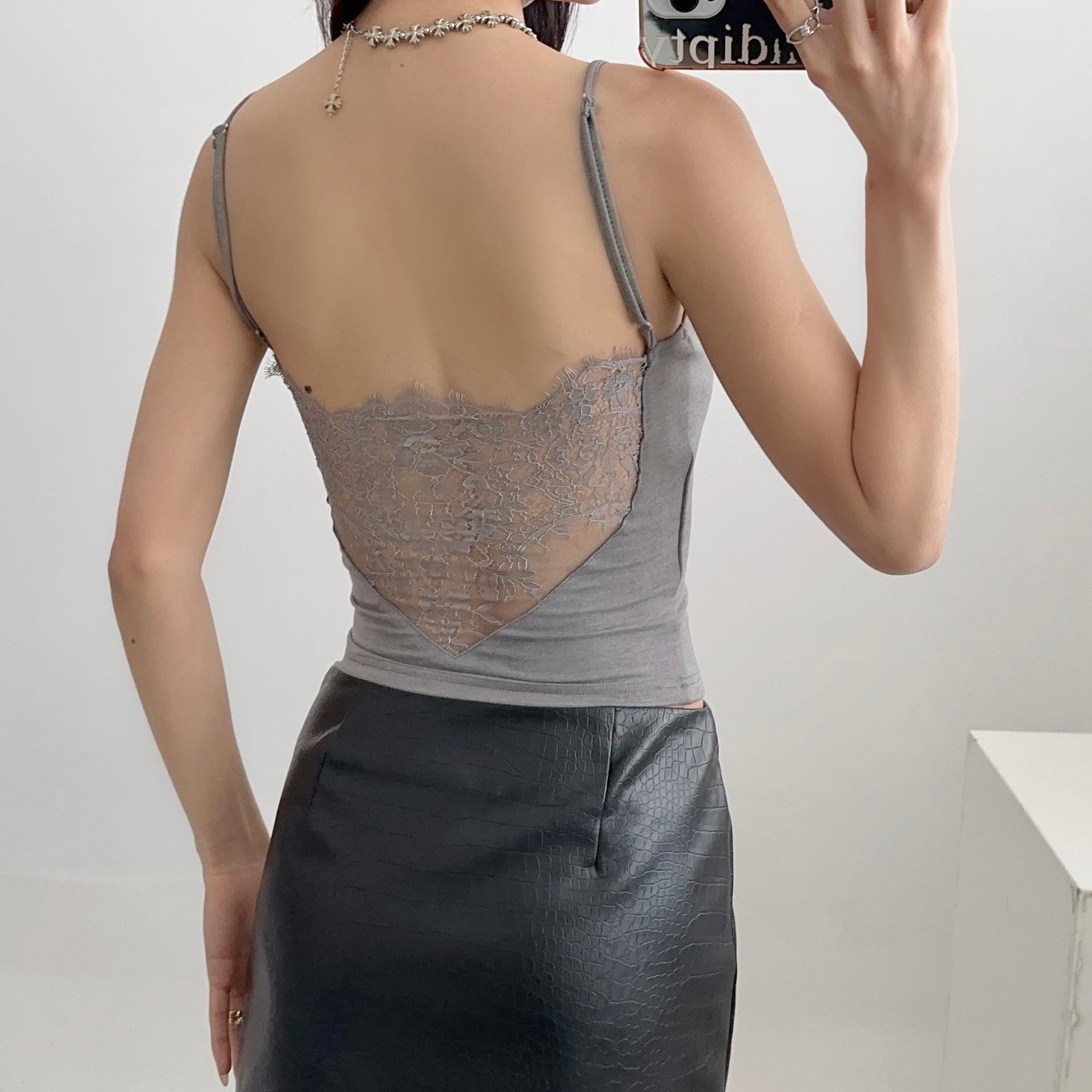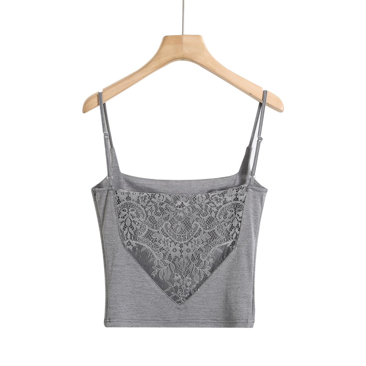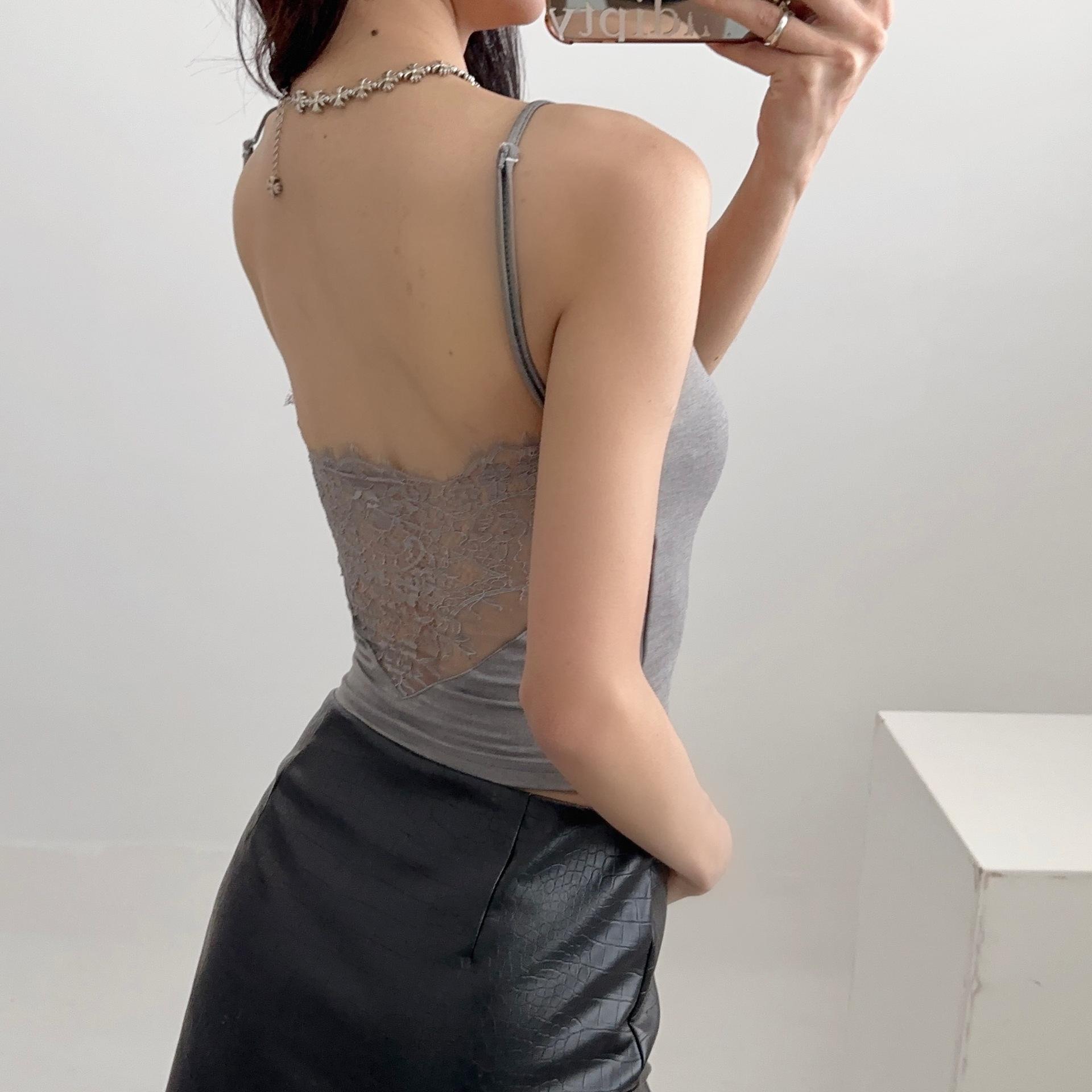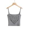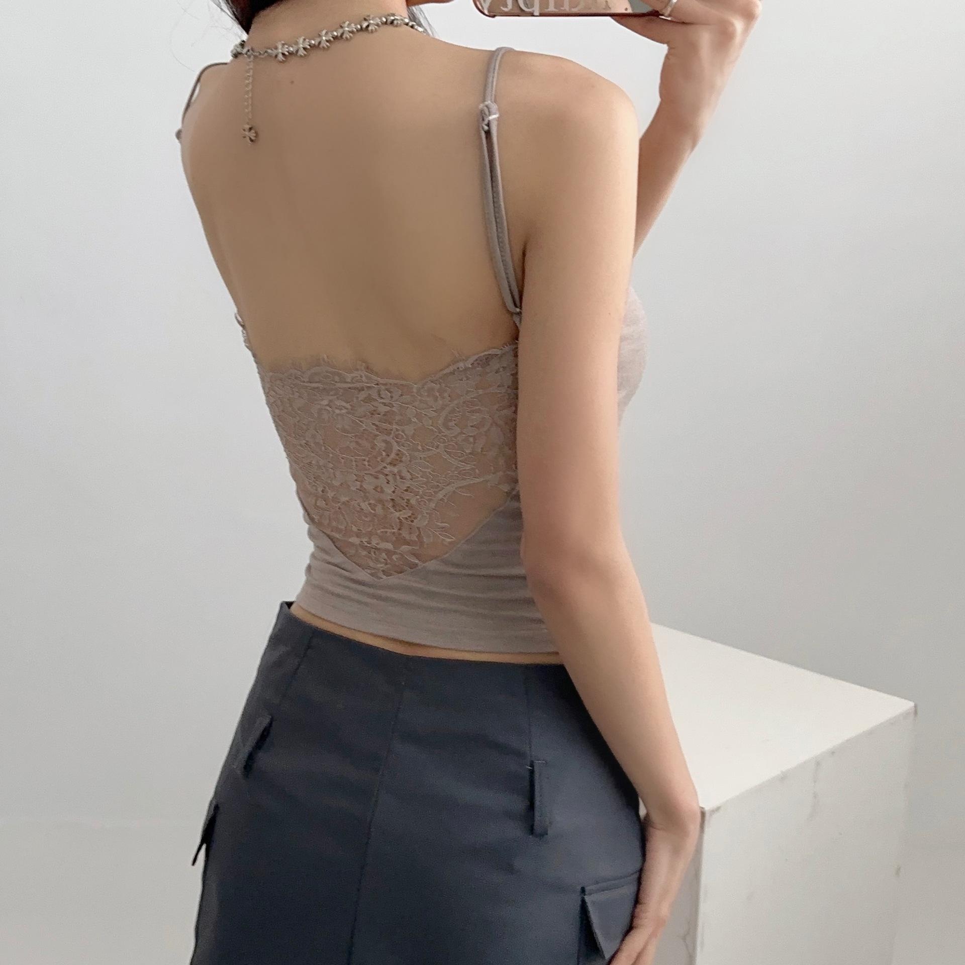 2024 Verano nuevo puro deseo belleza espalda corta tirante sexy chica básica doble capa cuello cuadrado encaje costura correa