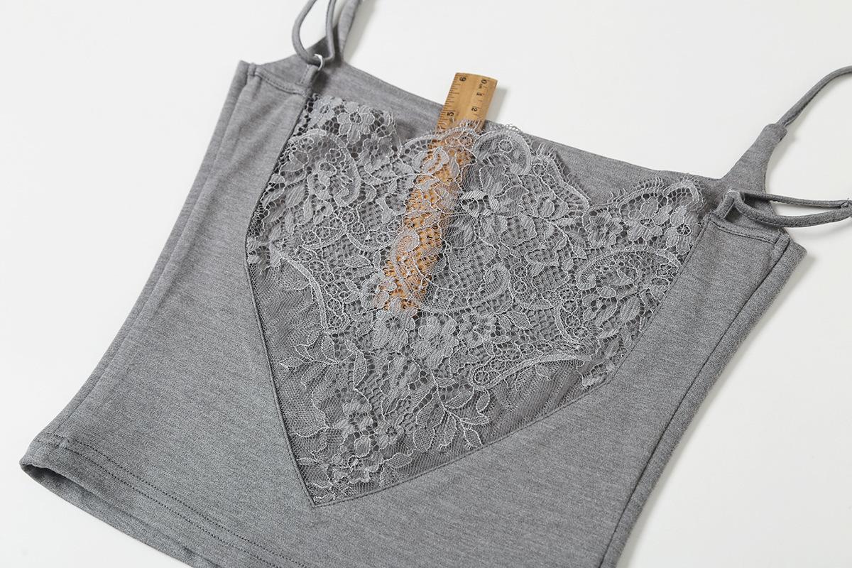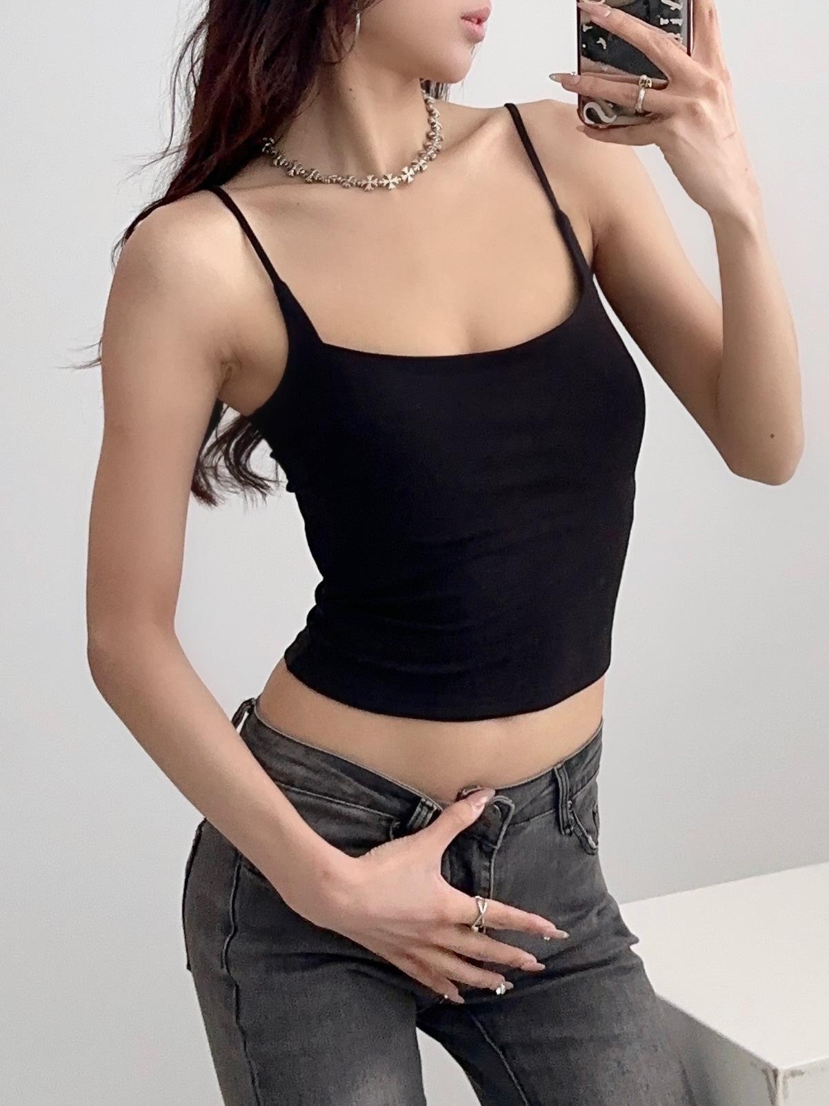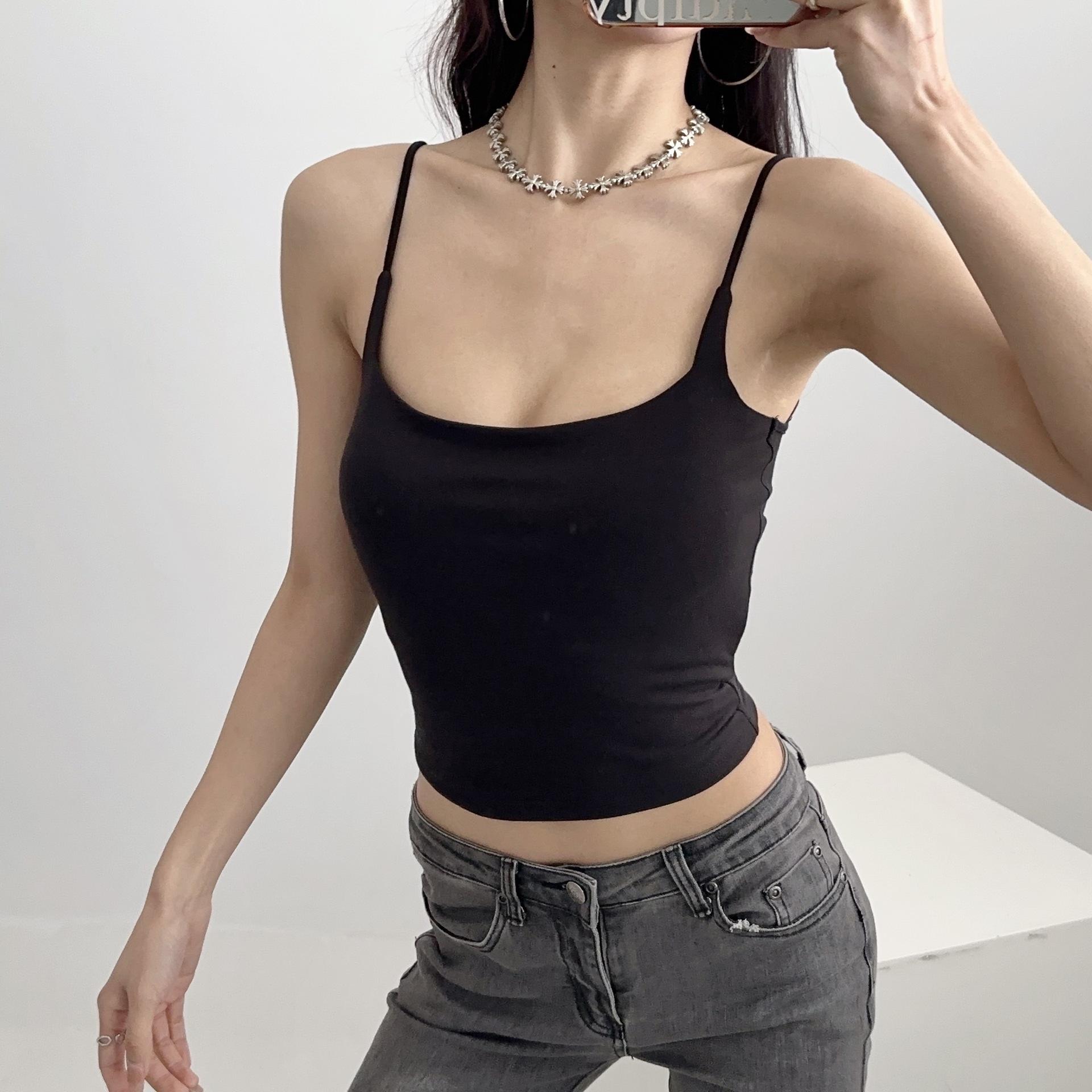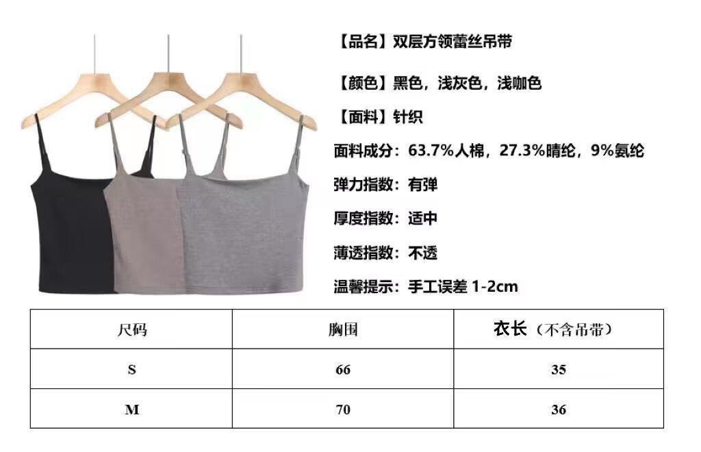 2024 Verano nuevo puro deseo belleza espalda corta tirante sexy chica básica doble capa cuello cuadrado encaje costura correa