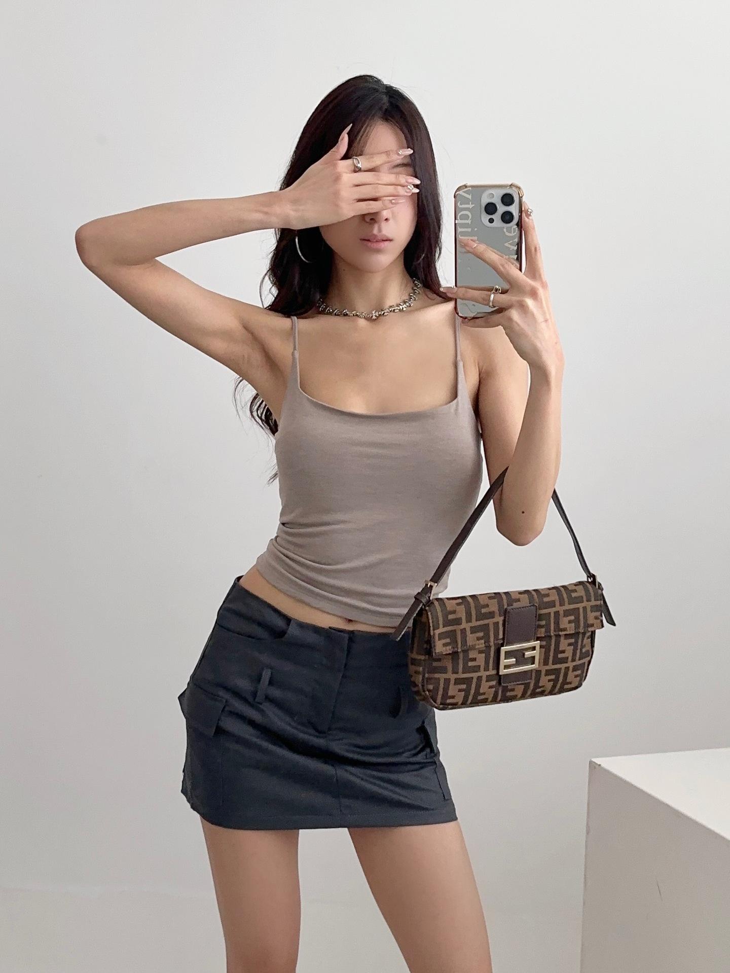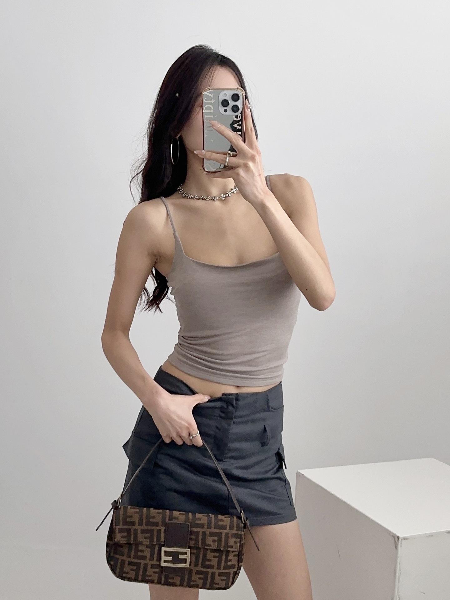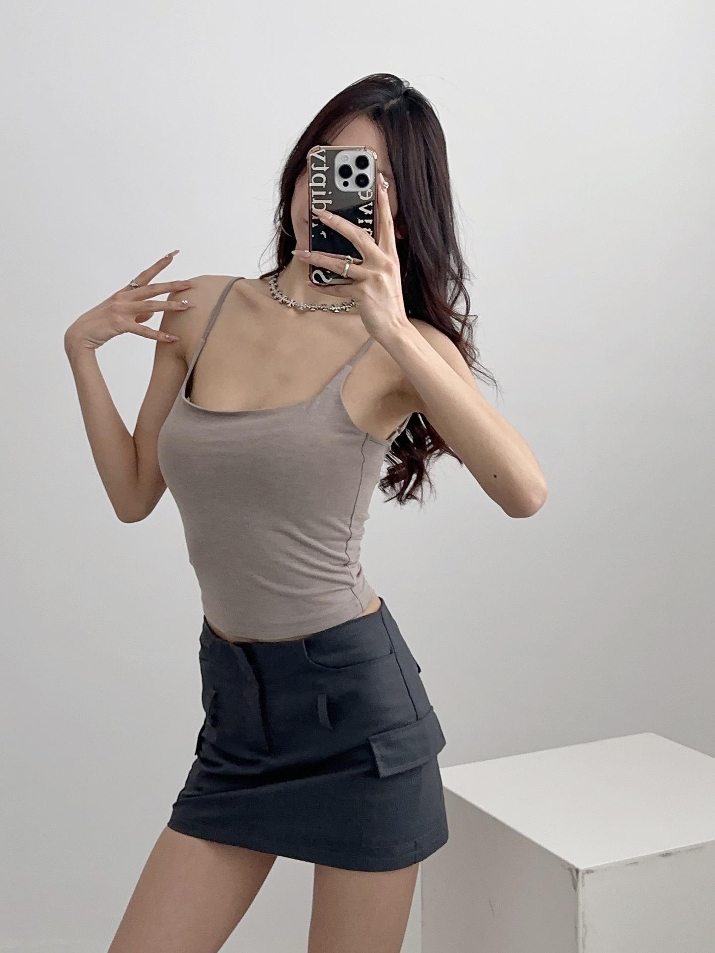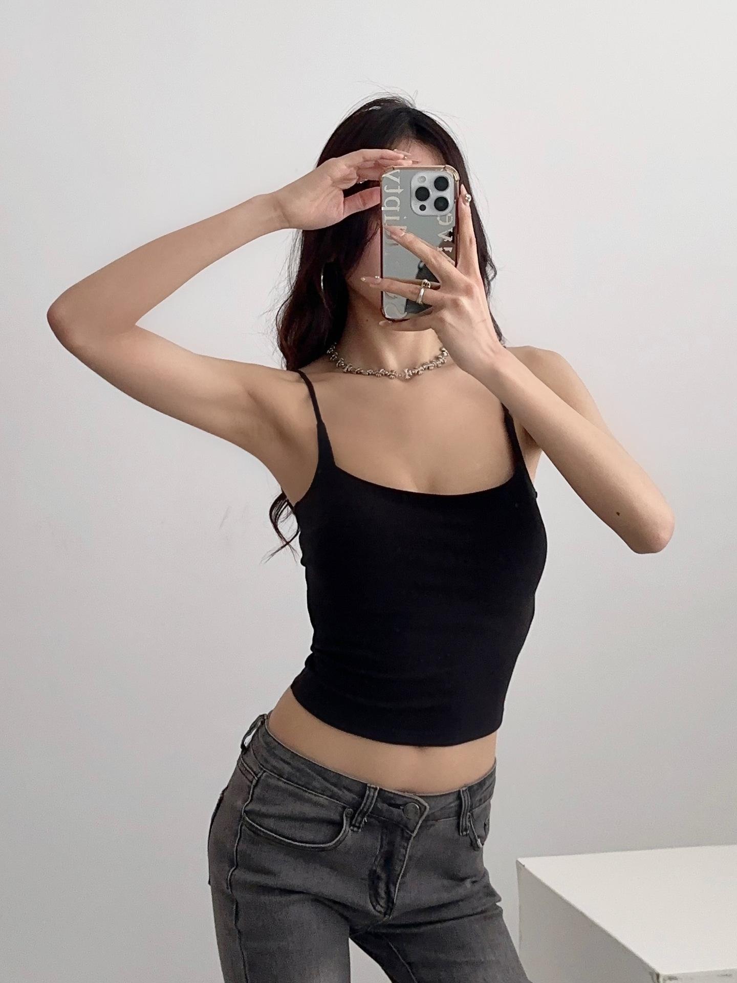 2024 Verano nuevo puro deseo belleza espalda corta tirante sexy chica básica doble capa cuello cuadrado encaje costura correa