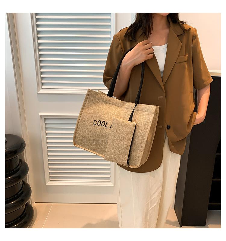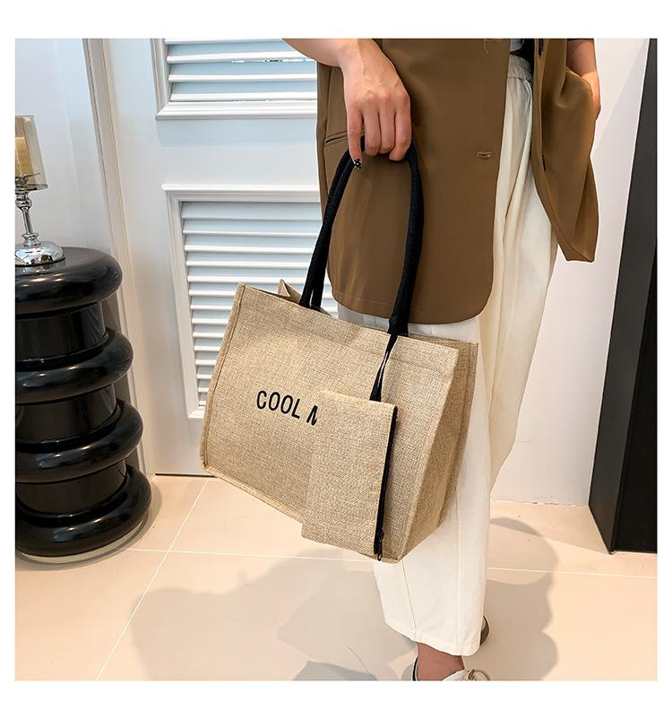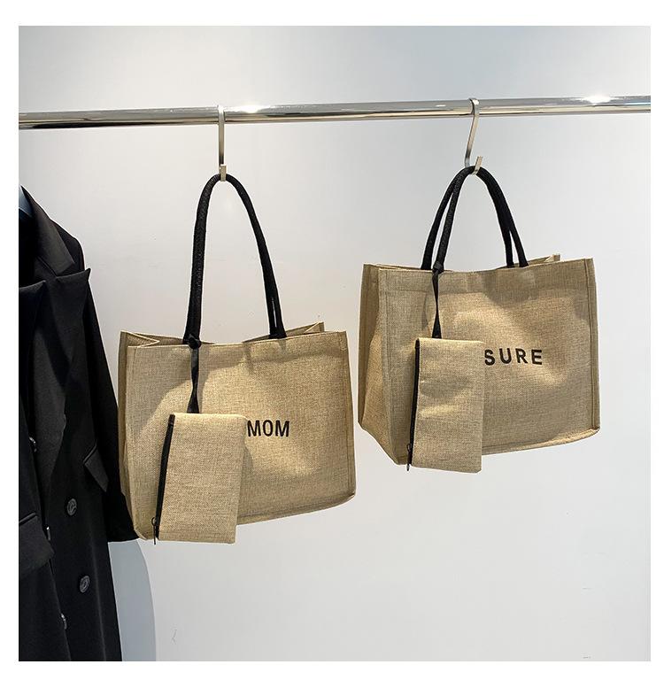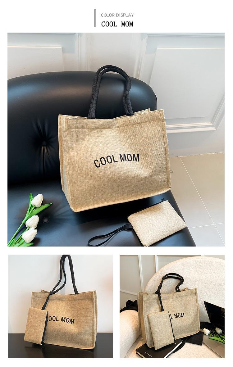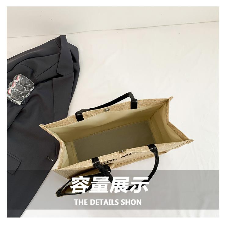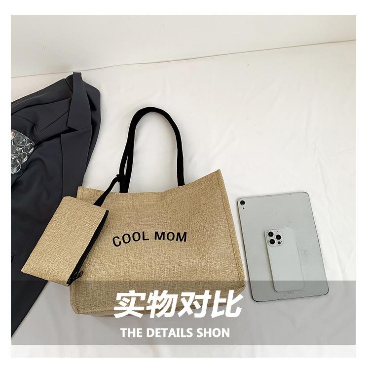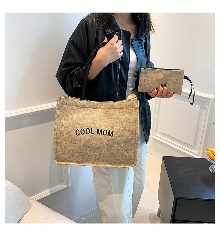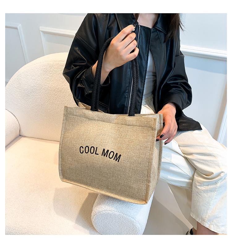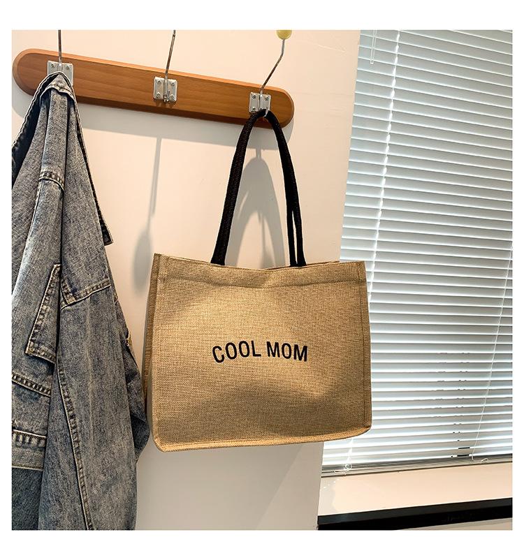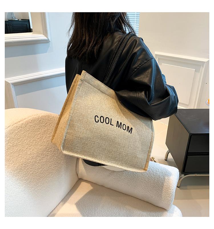 Bolso de mano de lino de gran capacidad para mujer, estilo vintage, de yute, para llevar al hombro, ideal para compras madre-hijo.