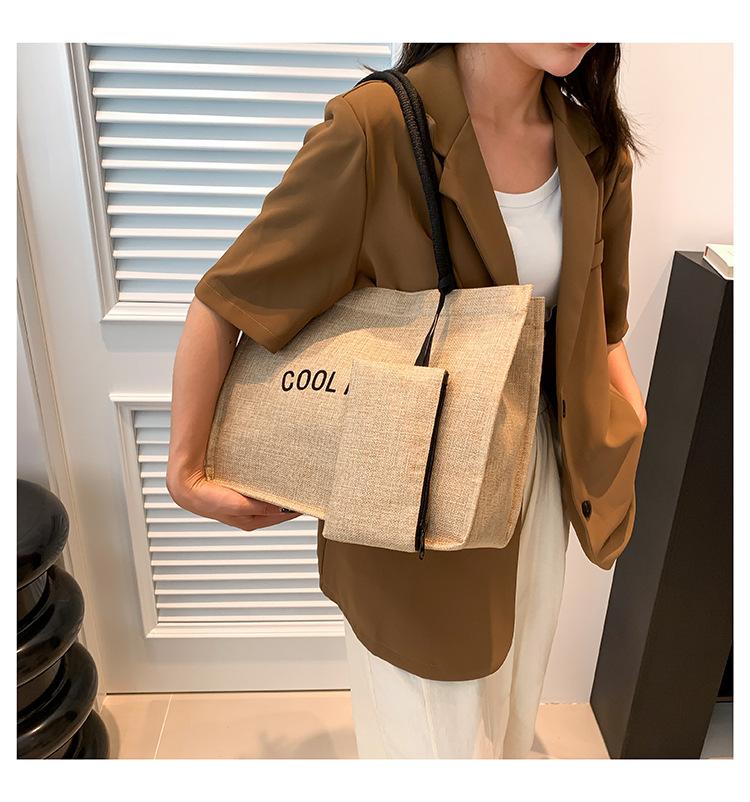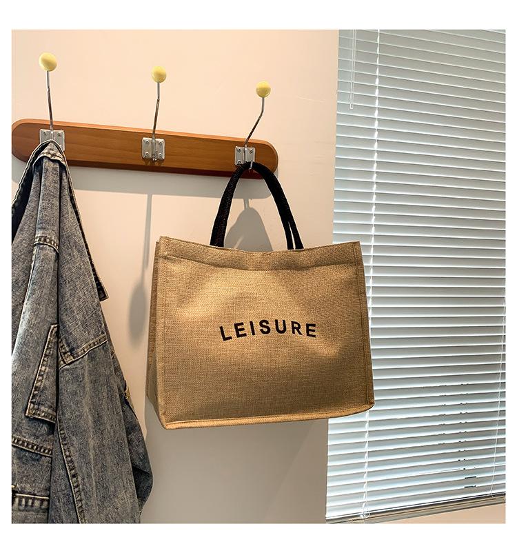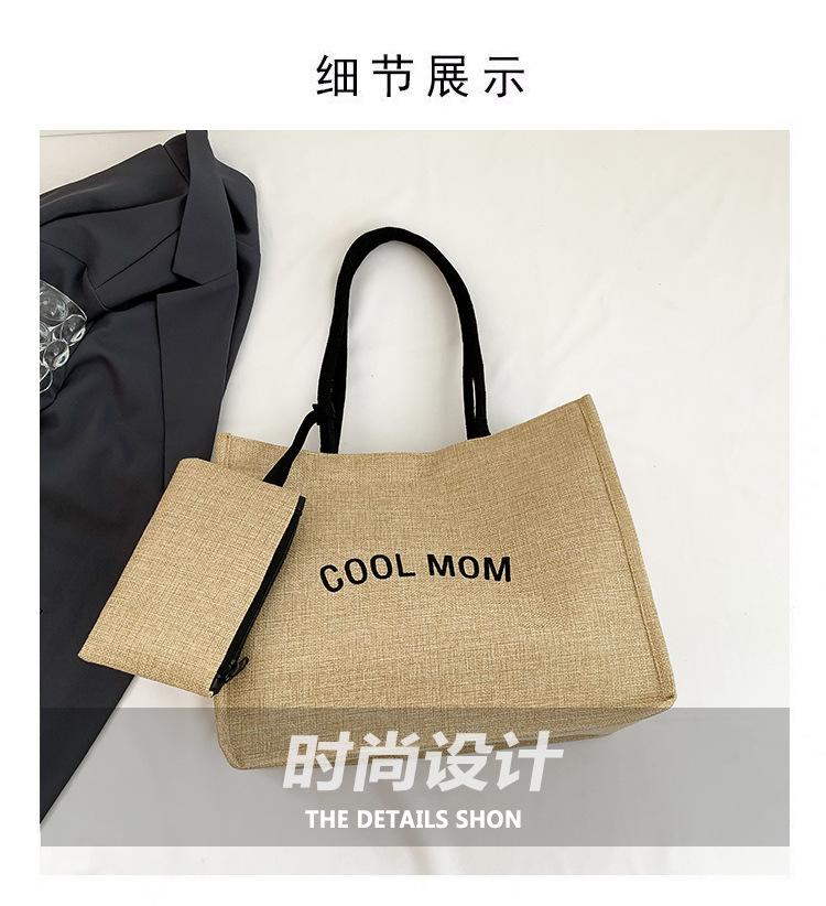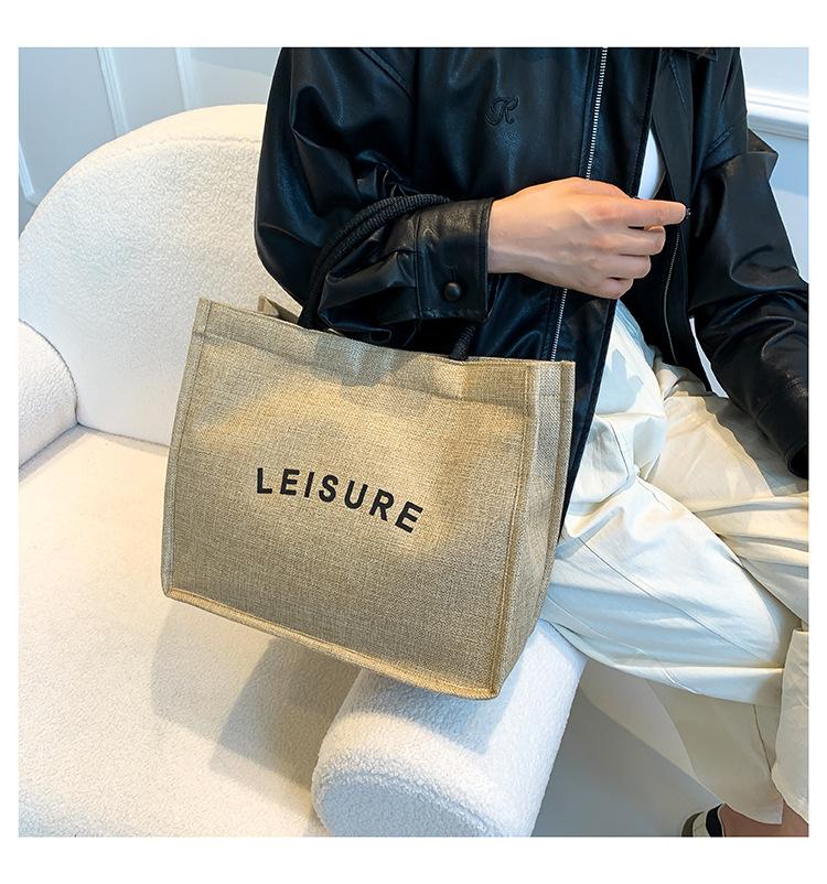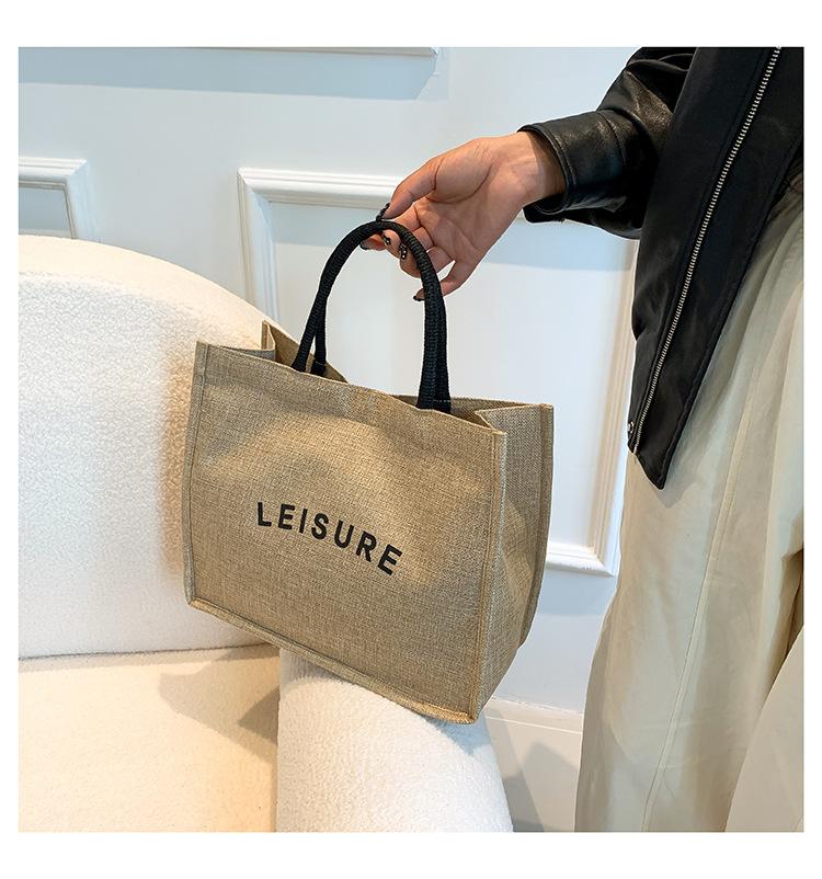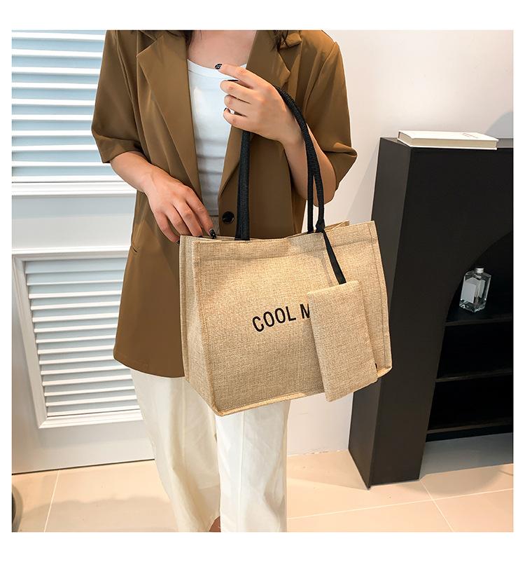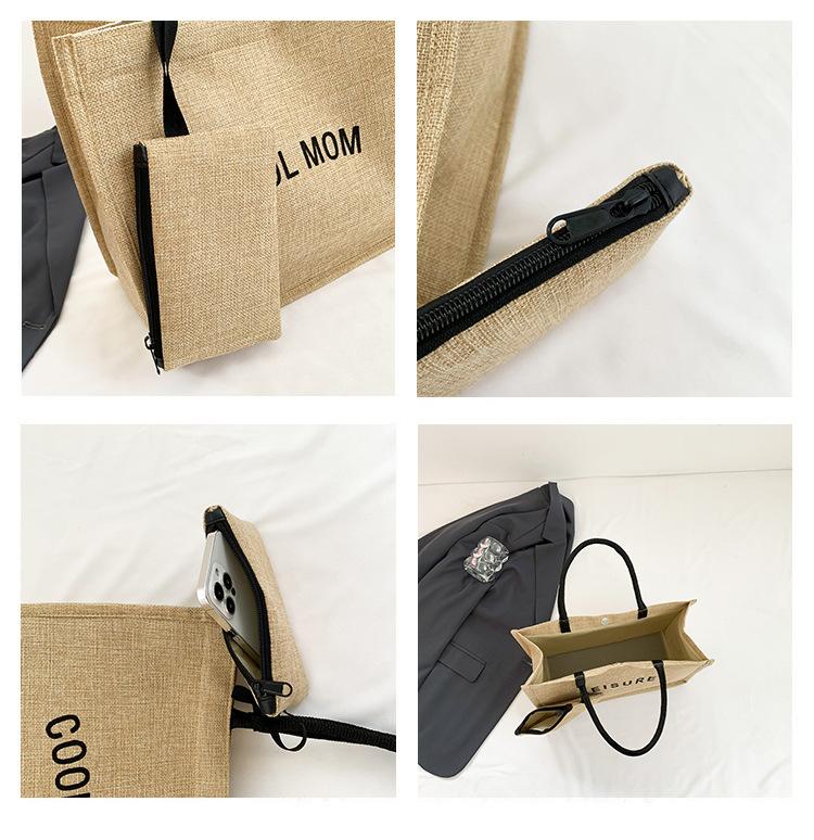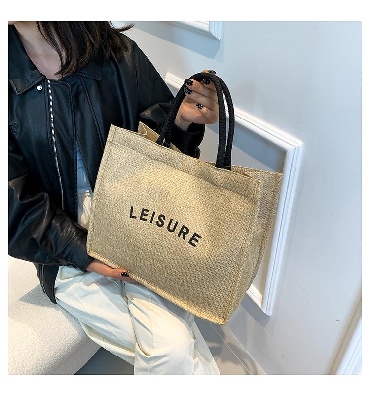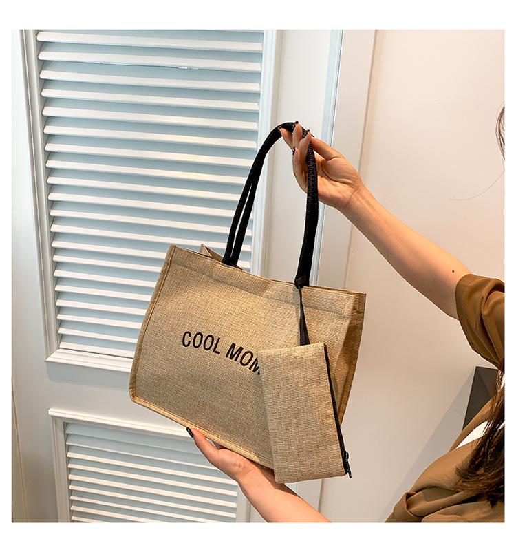 Bolso de mano de lino de gran capacidad para mujer, estilo vintage, de yute, para llevar al hombro, ideal para compras madre-hijo.