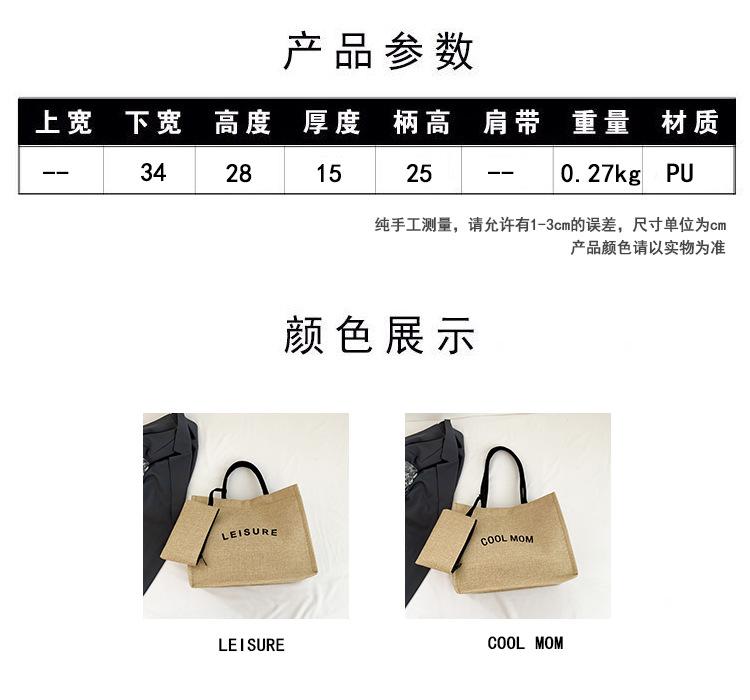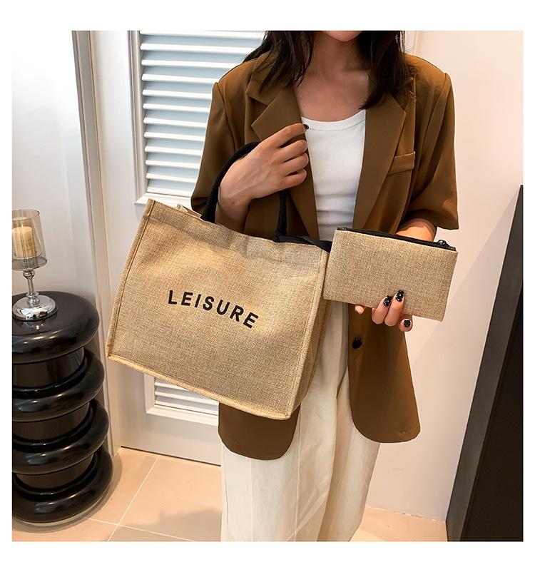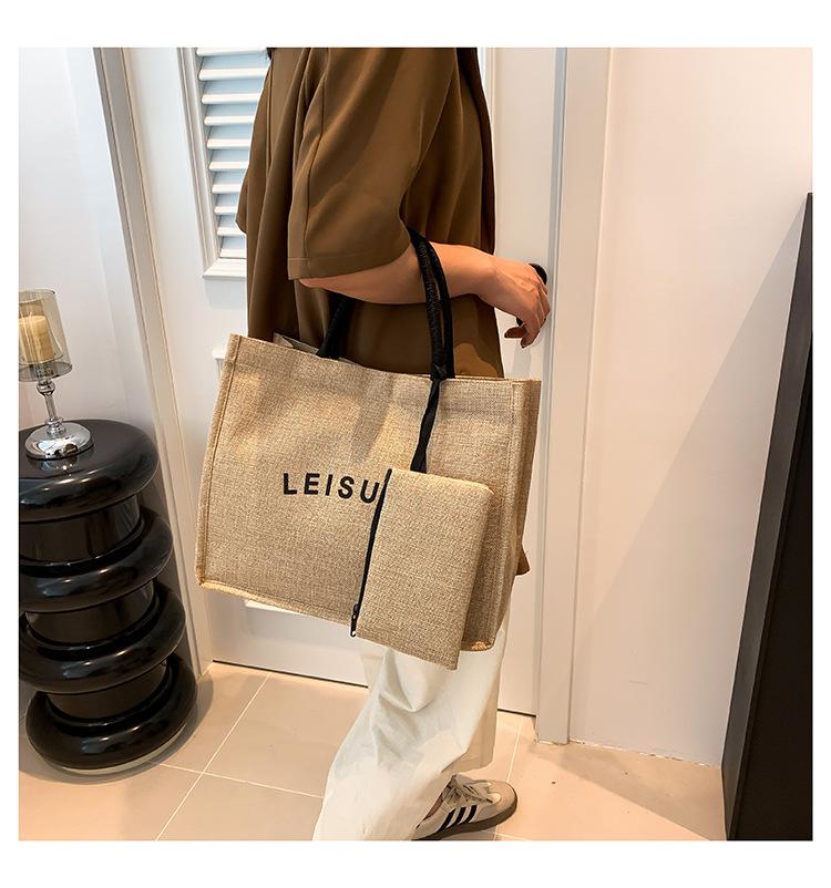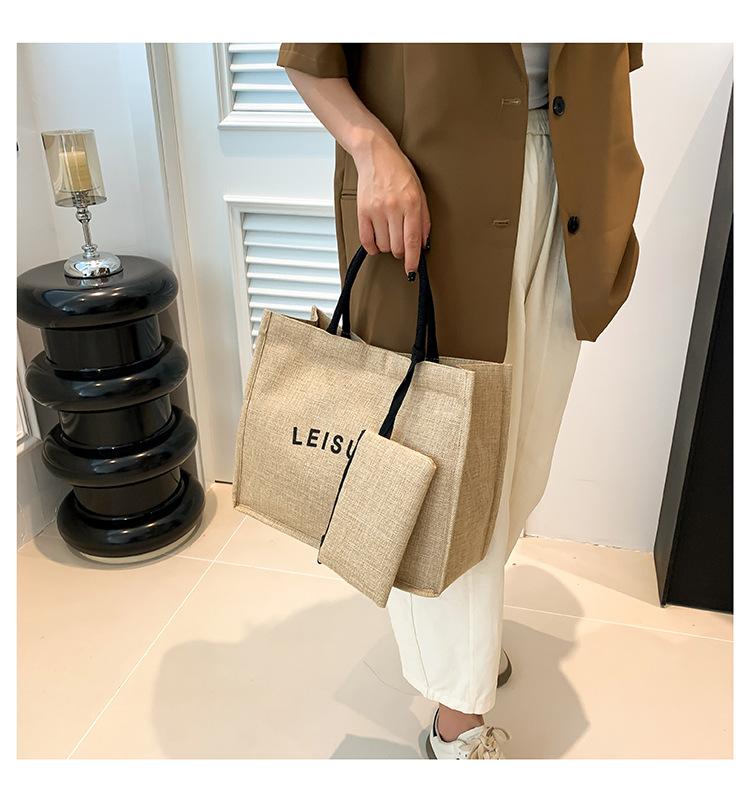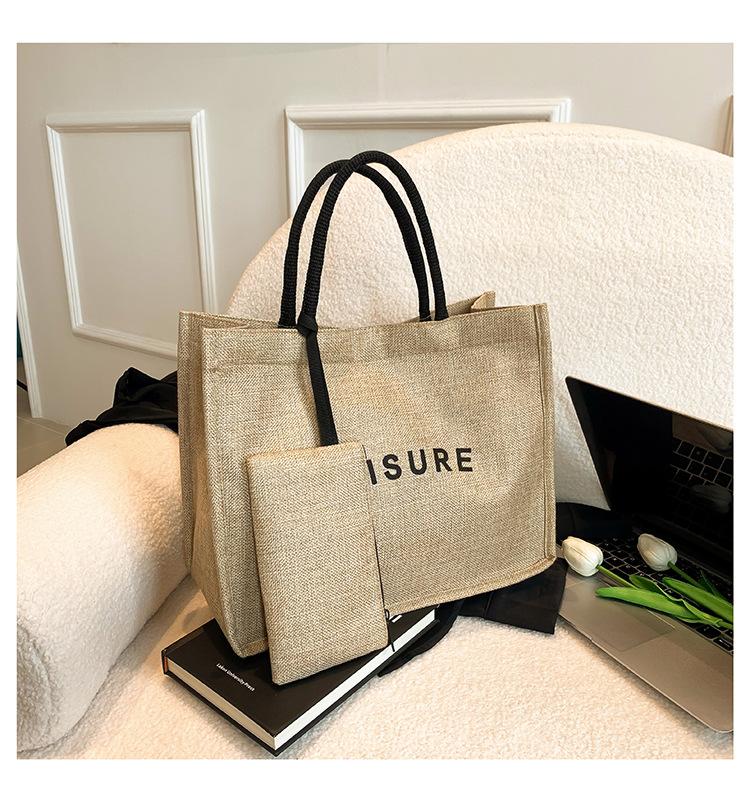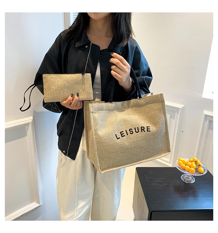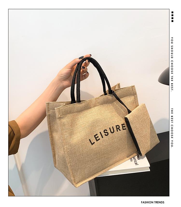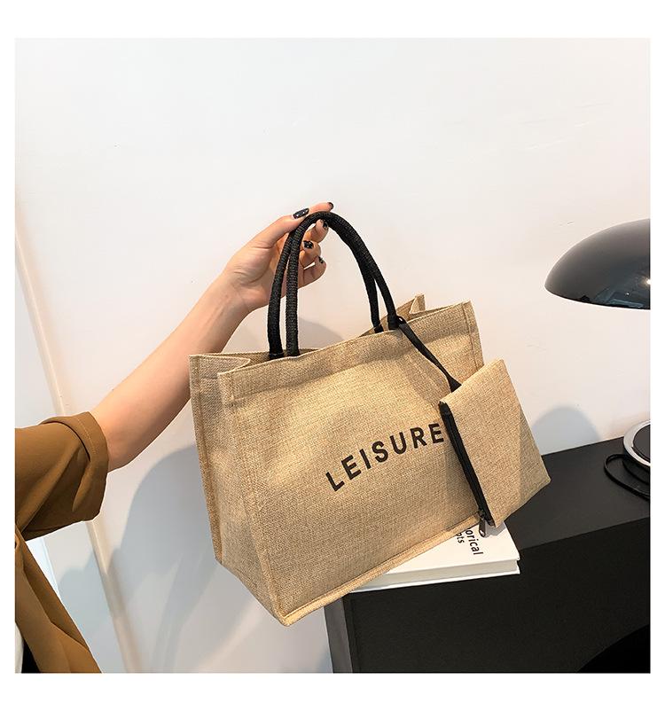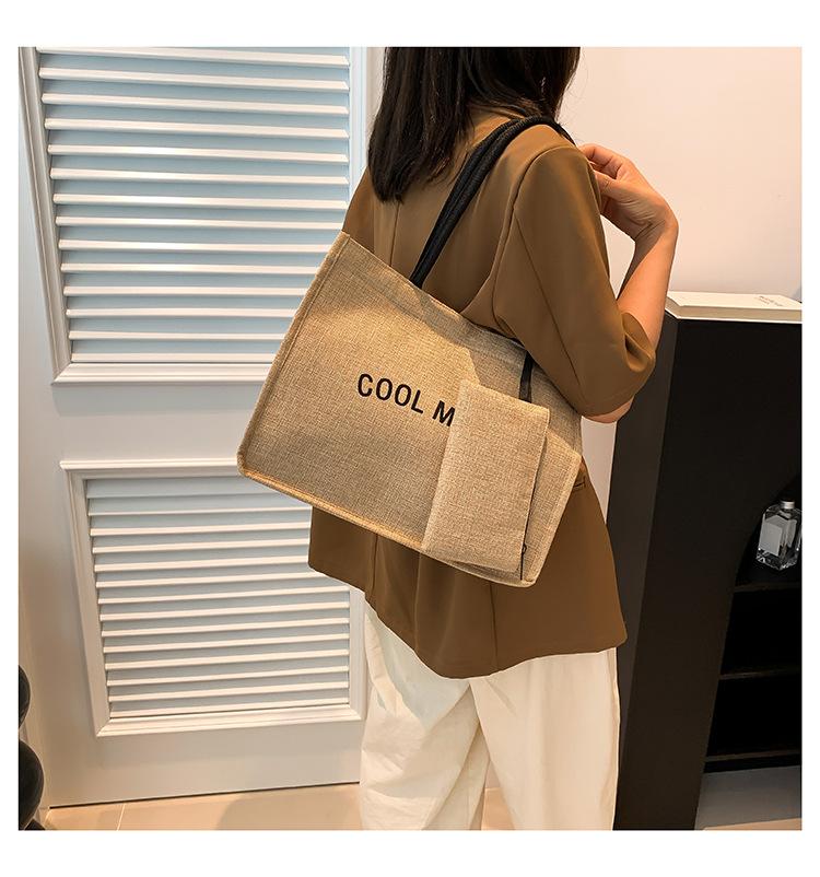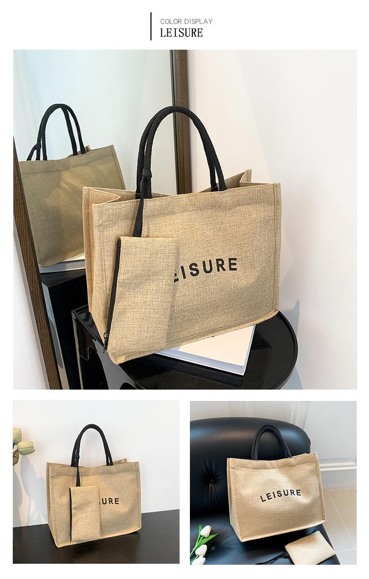 Bolso de mano de lino de gran capacidad para mujer, estilo vintage, de yute, para llevar al hombro, ideal para compras madre-hijo.