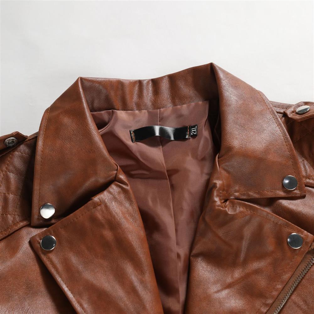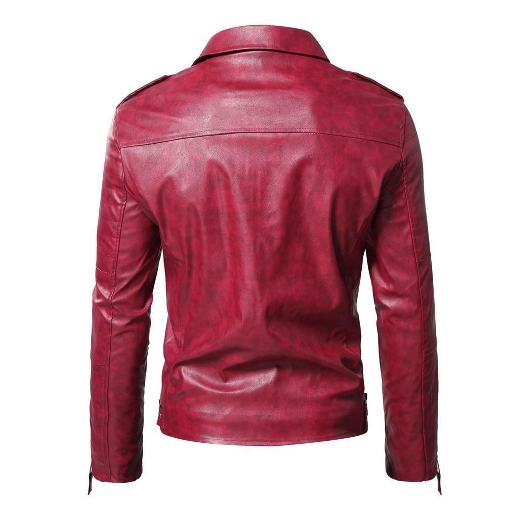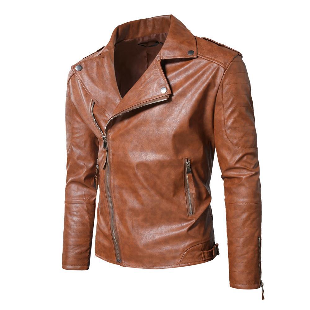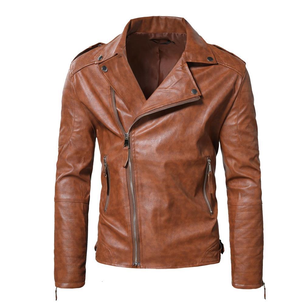 Chaqueta informal con cremallera de cuero con solapa de motocicleta de color sólido de estilo europeo y americano para hombre, otoño e invierno, comercio exterior, 22