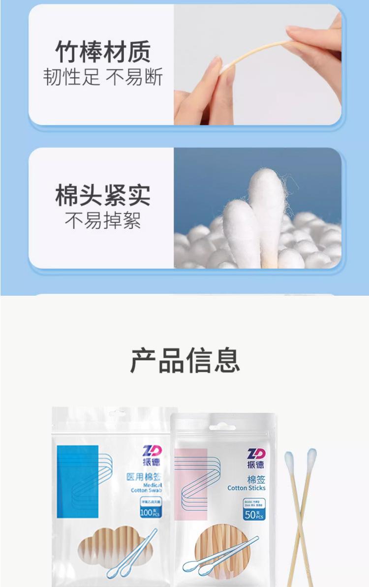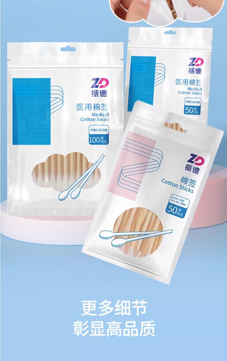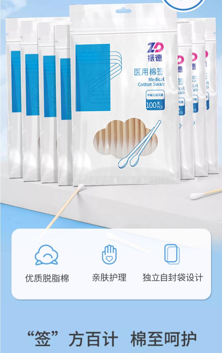 Hisopos de Algodón Zhende 100 Piezas/Bolsa Hisopos de Algodón Desechables Esterilizados Limpieza Algodón Absorbente 10cm Médico Estéril