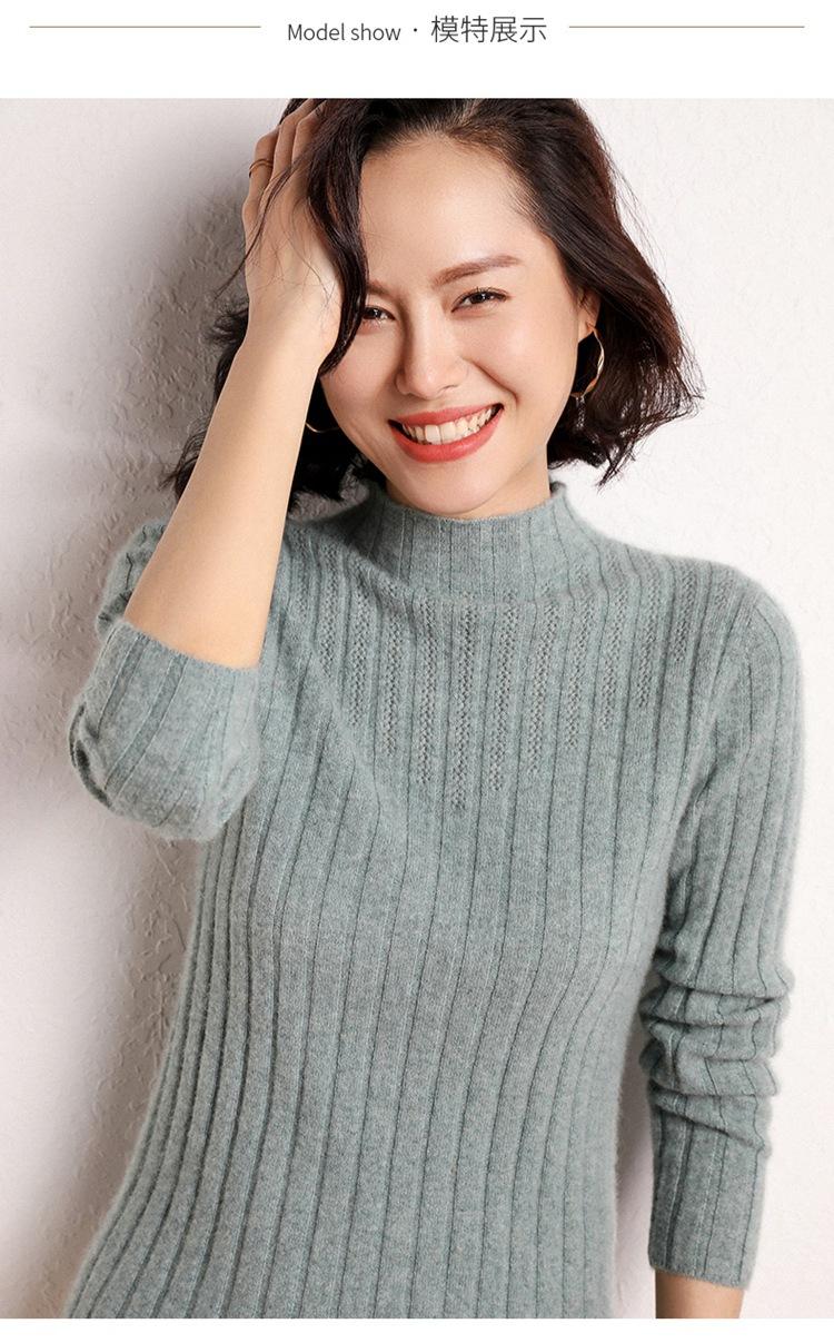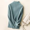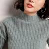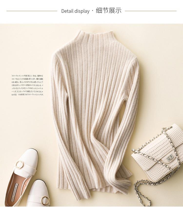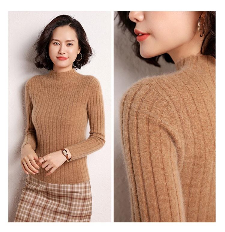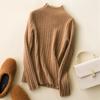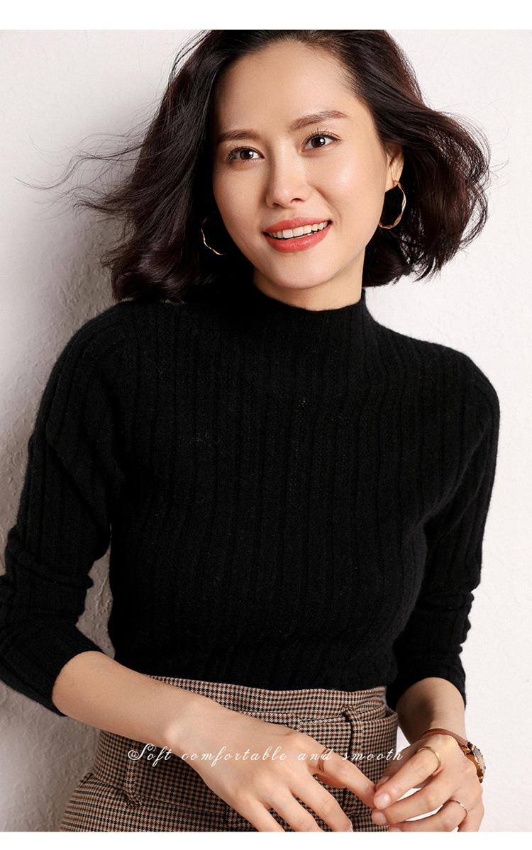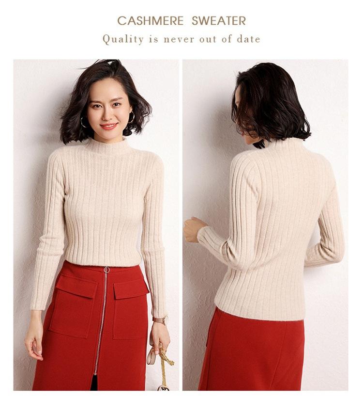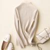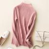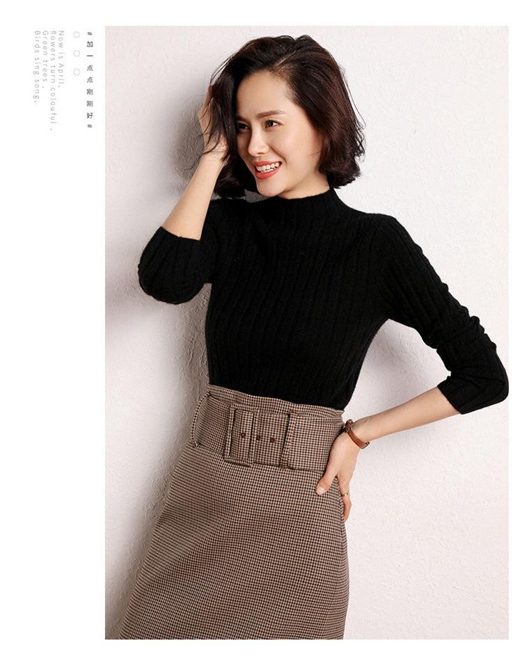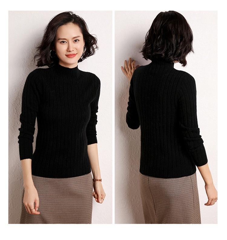 Suéter de cachemira de otoño e invierno para mujer, suéter de punto ajustado con cuello alto y media manga, camisa de fondo, top clásico sencillo para mujer