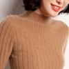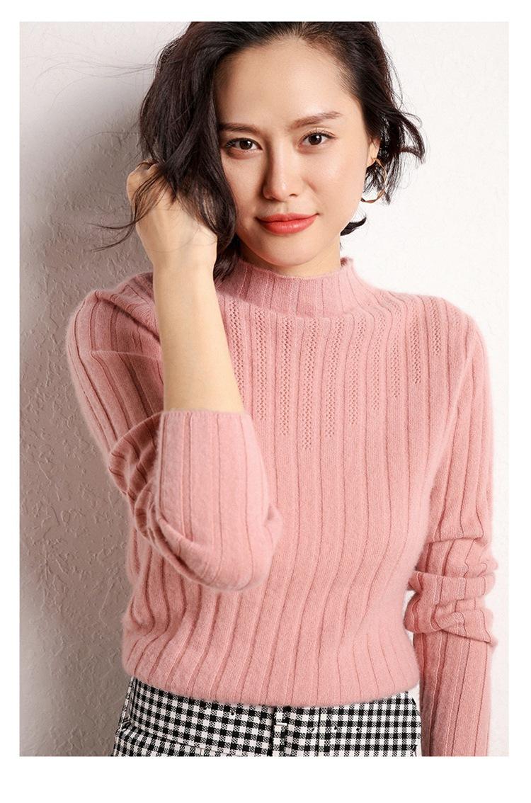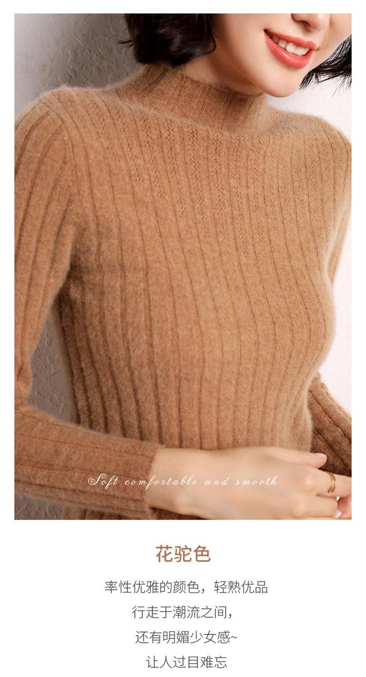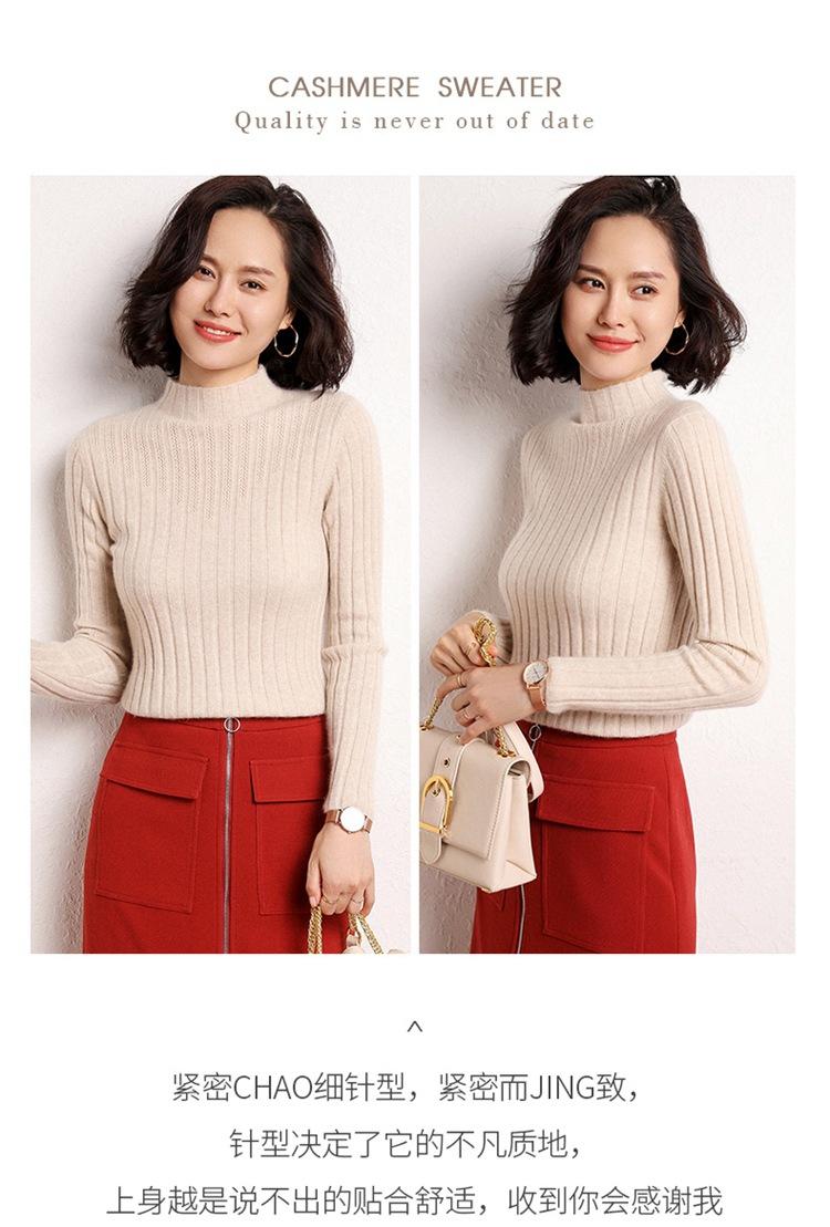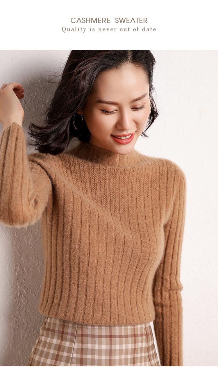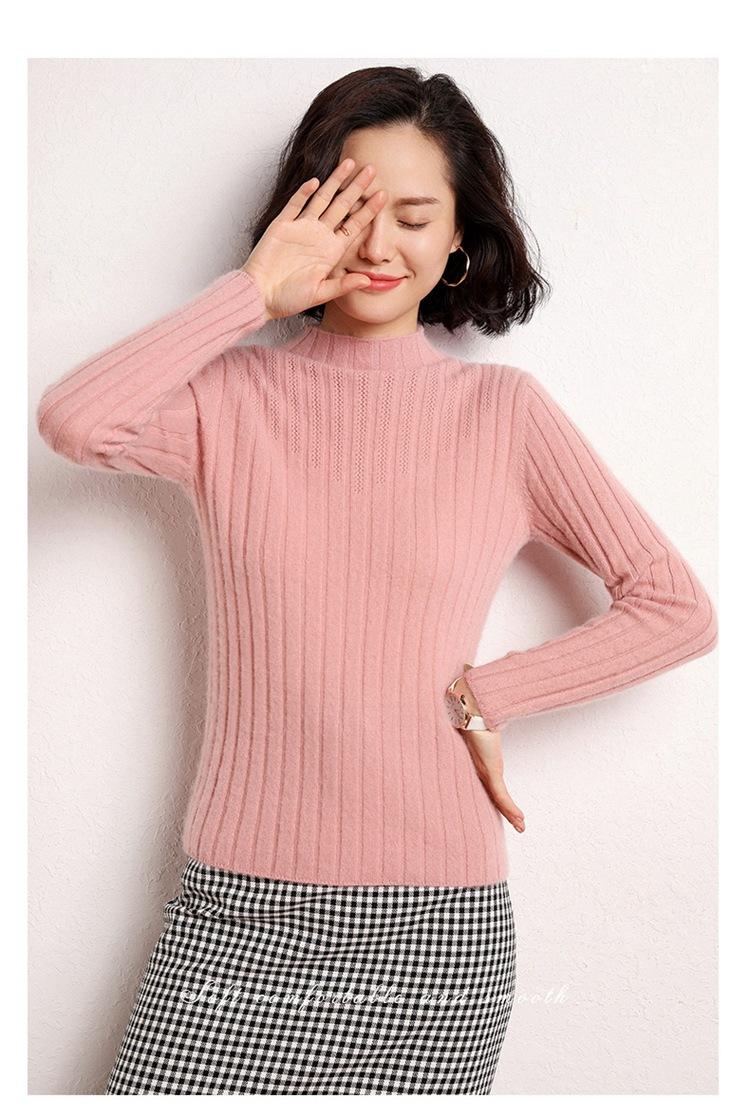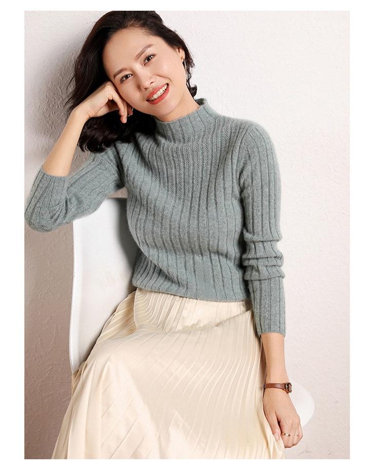 Suéter de cachemira de otoño e invierno para mujer, suéter de punto ajustado con cuello alto y media manga, camisa de fondo, top clásico sencillo para mujer