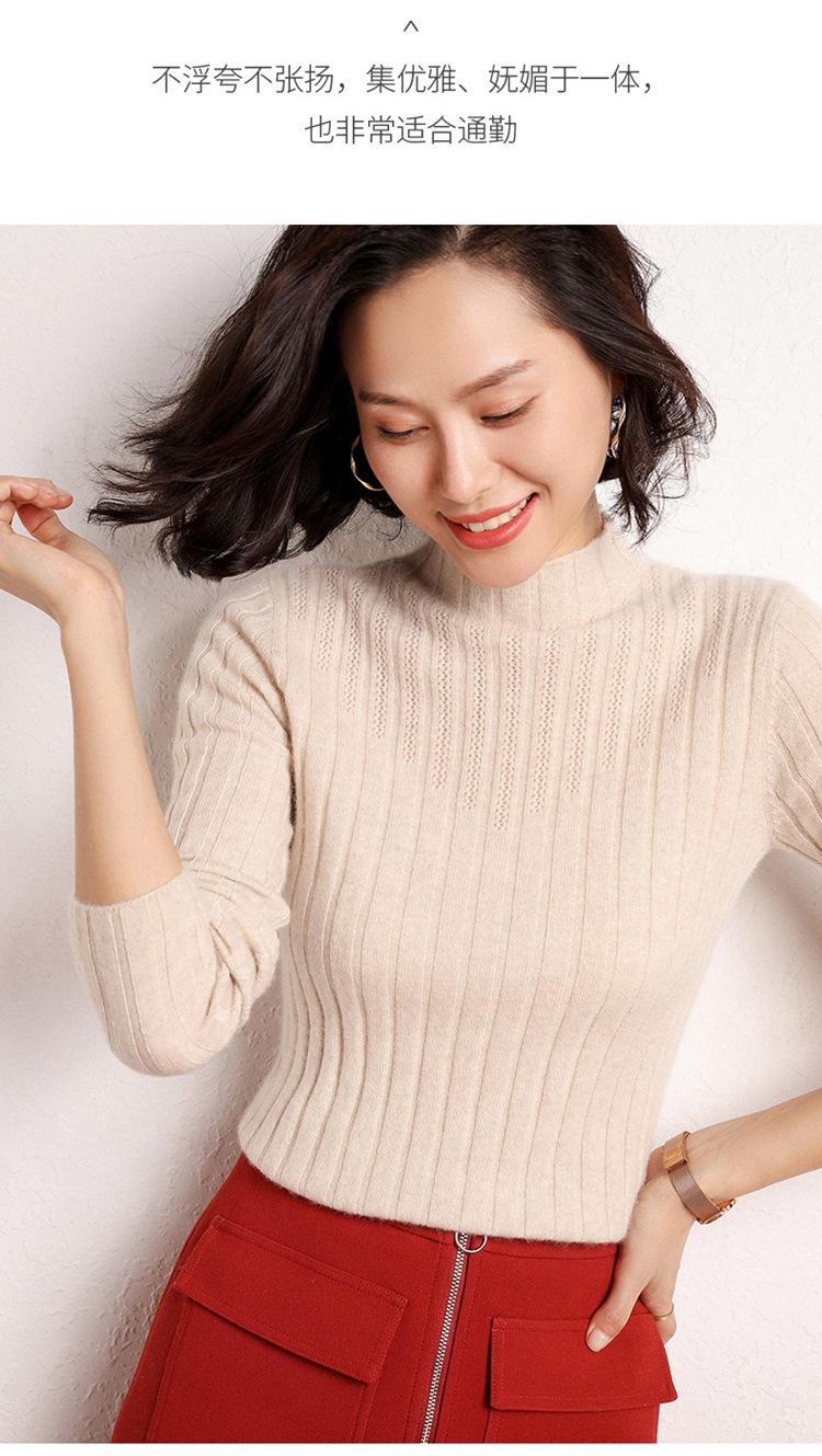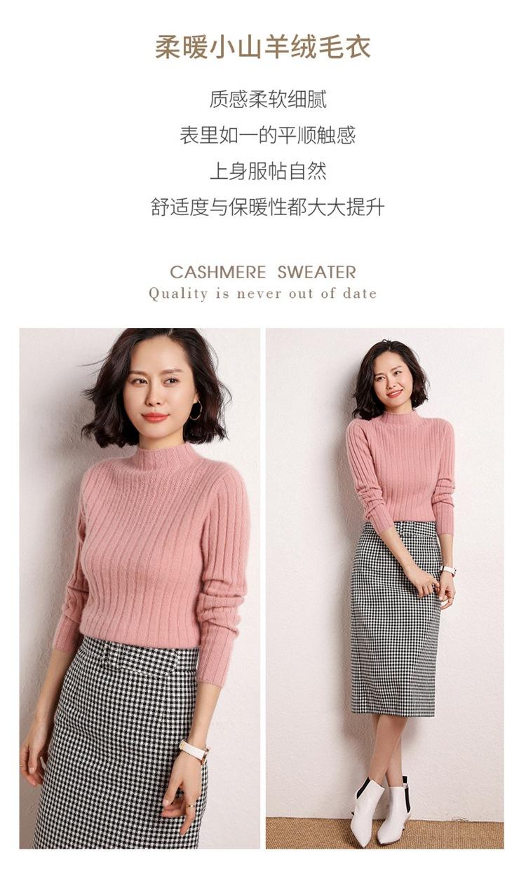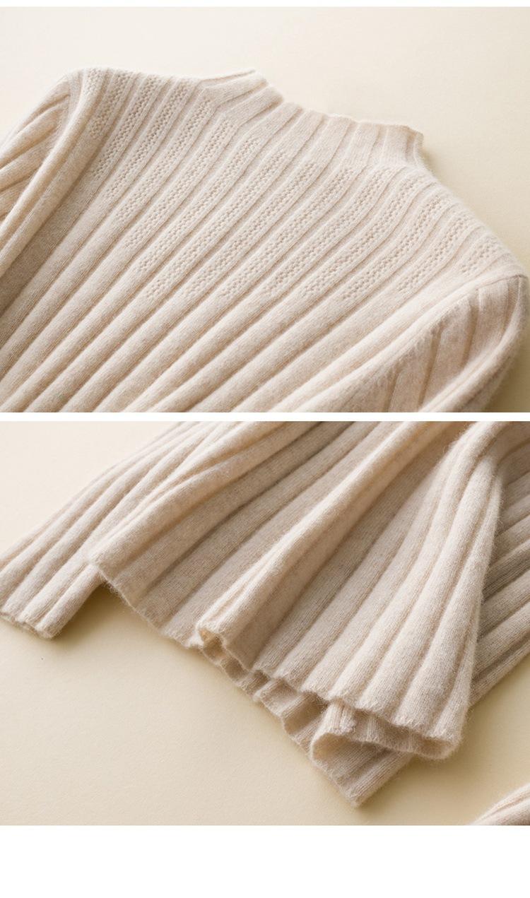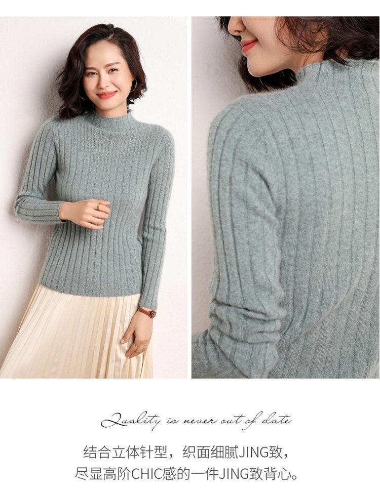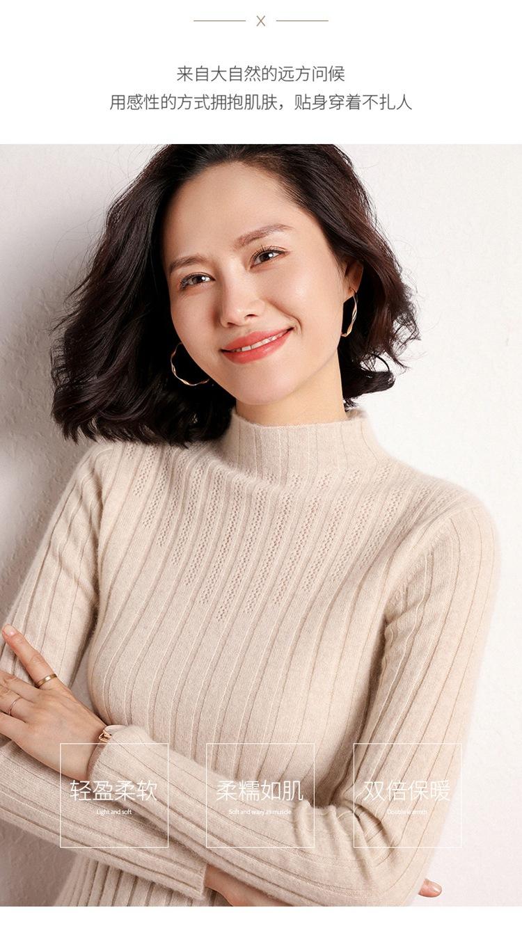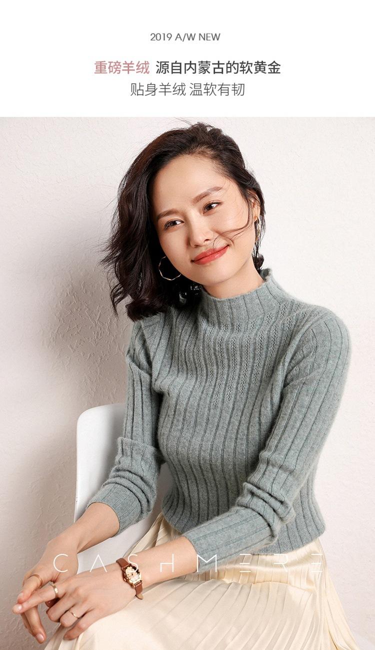 Suéter de cachemira de otoño e invierno para mujer, suéter de punto ajustado con cuello alto y media manga, camisa de fondo, top clásico sencillo para mujer