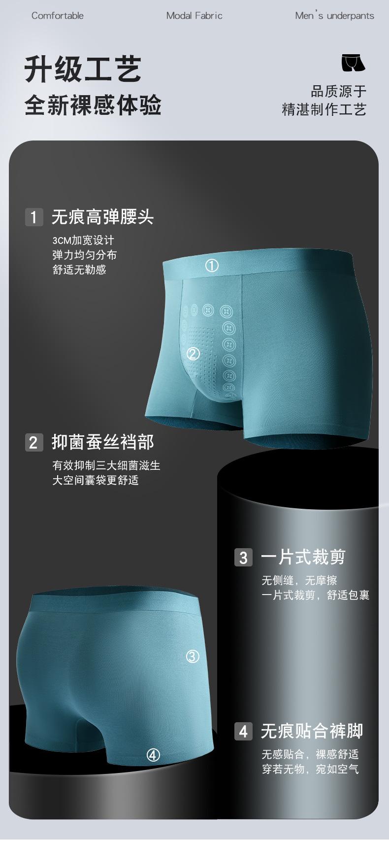 Otoño e Invierno 60 Unidades Ropa Interior Modal para Hombre Transpirable Sin Costuras Bóxer Briefs Ropa Interior de Seda Antibacteriana de Cintura Media para Hombre