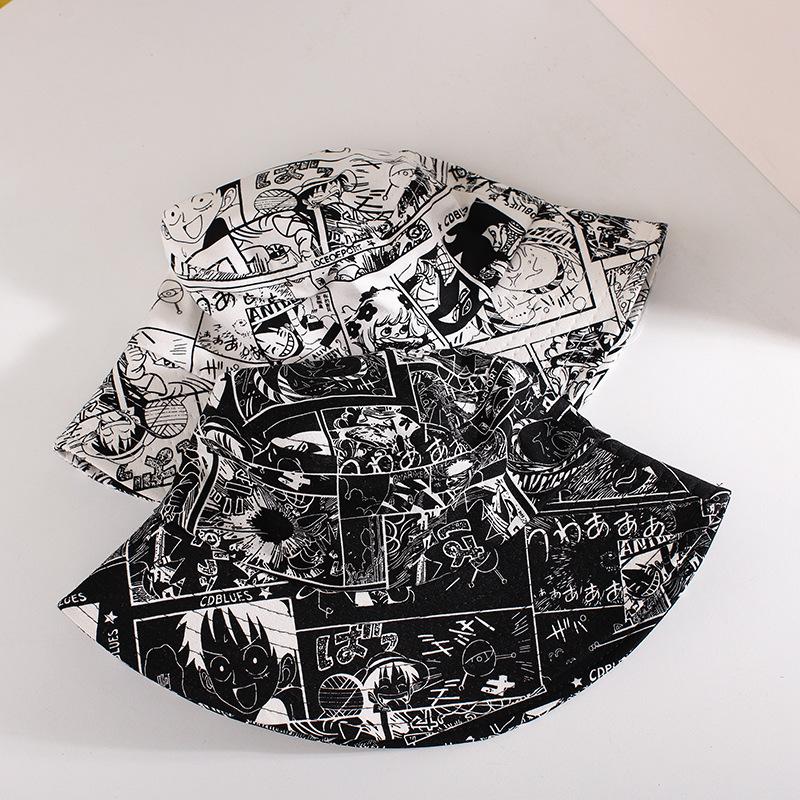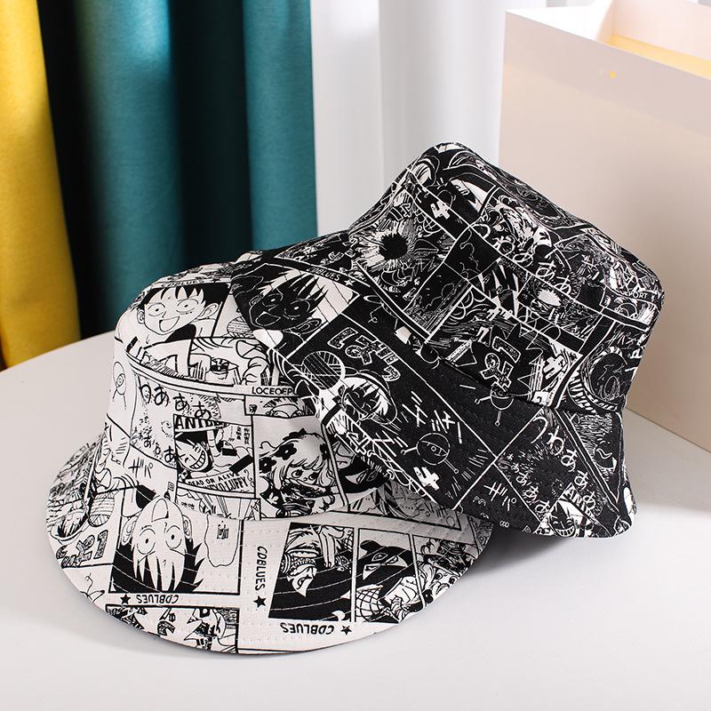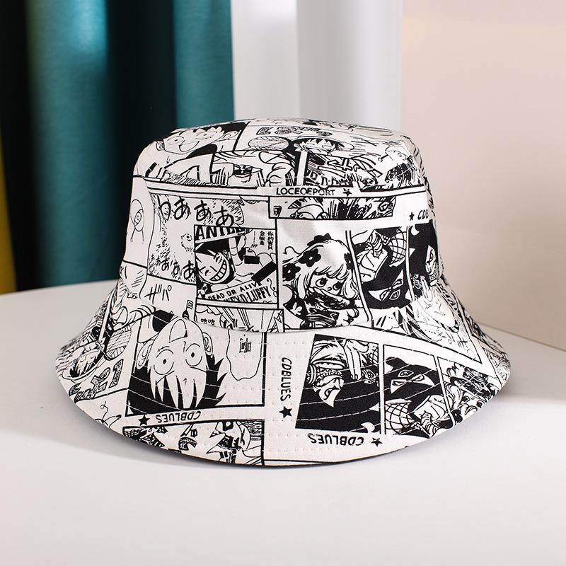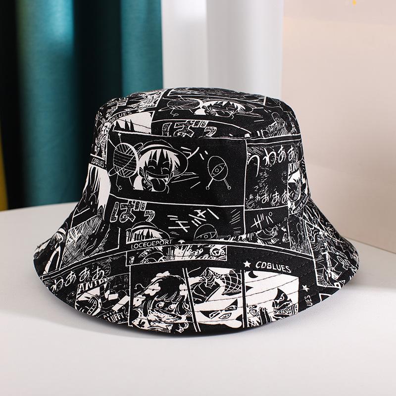 Estilo Japonés Calle Combinación Total Sombra Estudiante Dibujos Animados Graffiti Sombrero Estilo Coreano para Hombre y Mujer Estilo Dibujos Animados Bidimensional Sombrero de Pescador Primavera