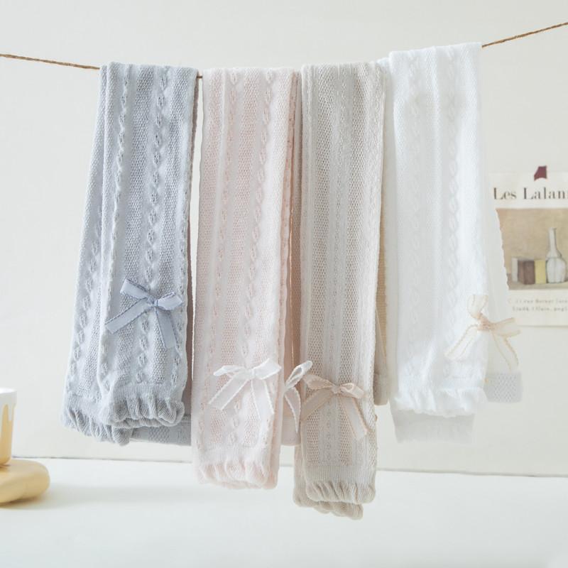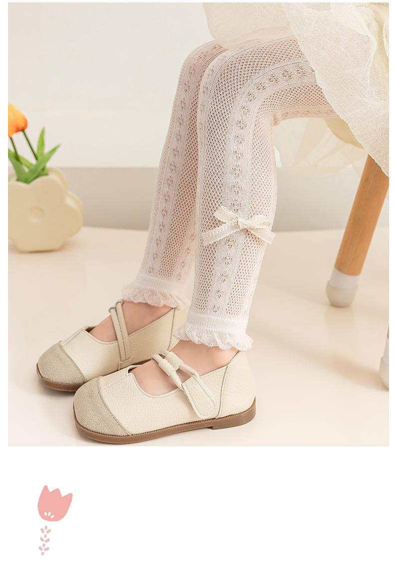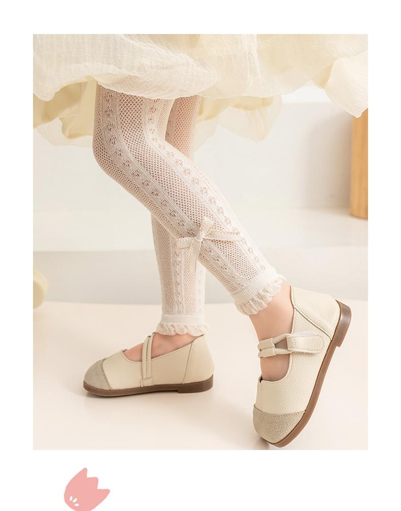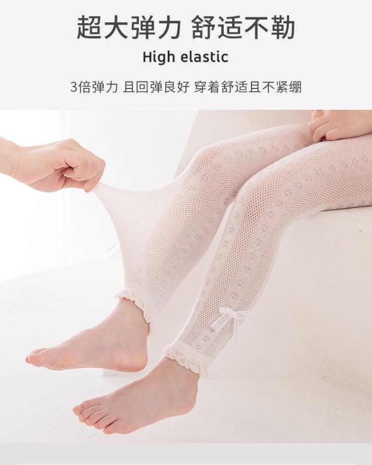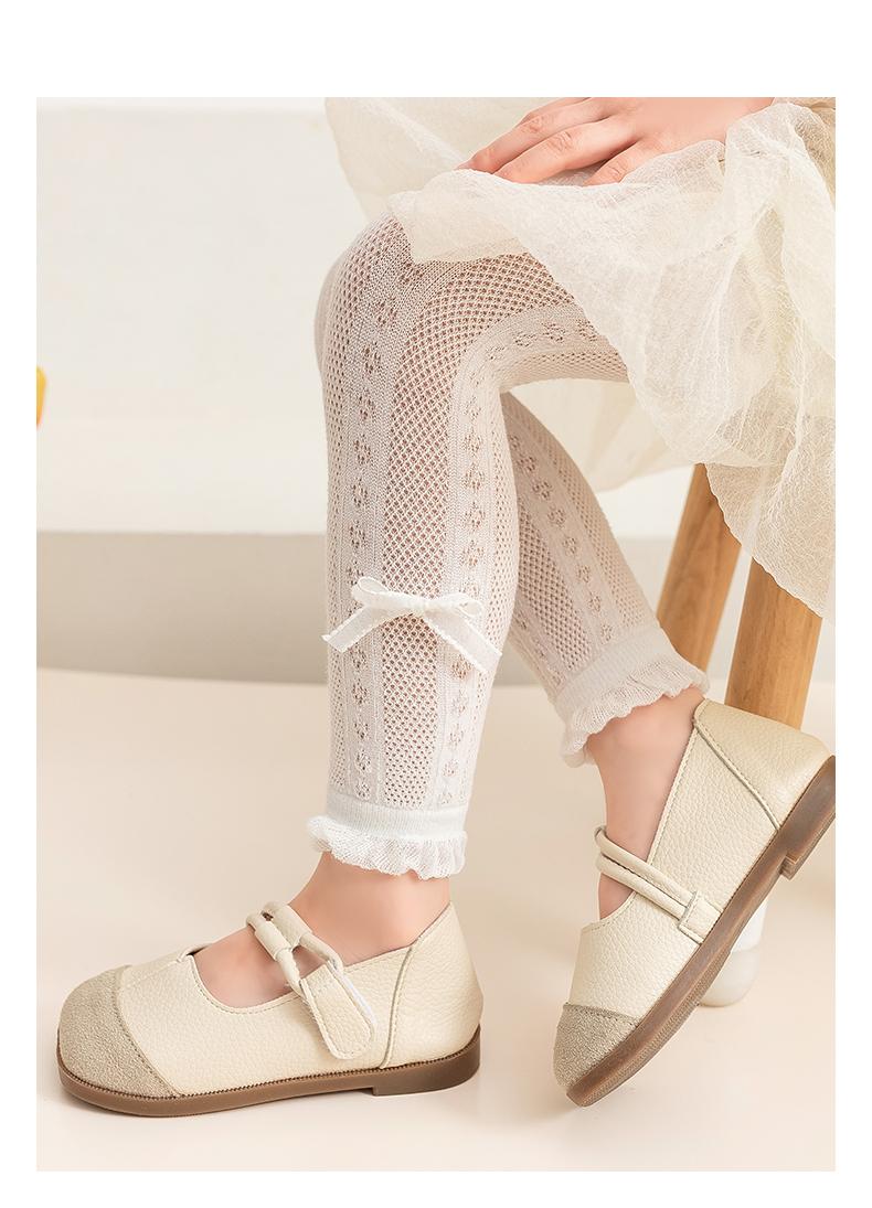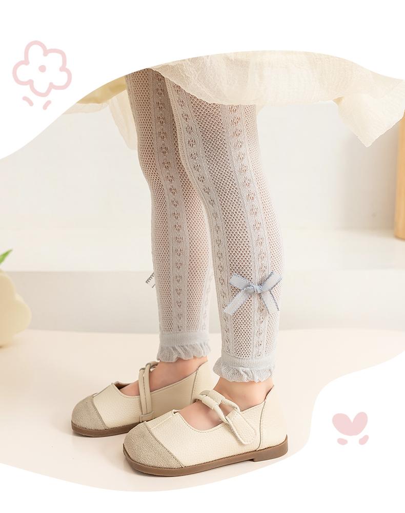 Pantalones de base de algodón fino de malla para niñas, primavera y otoño, verano, con lazo, blancos