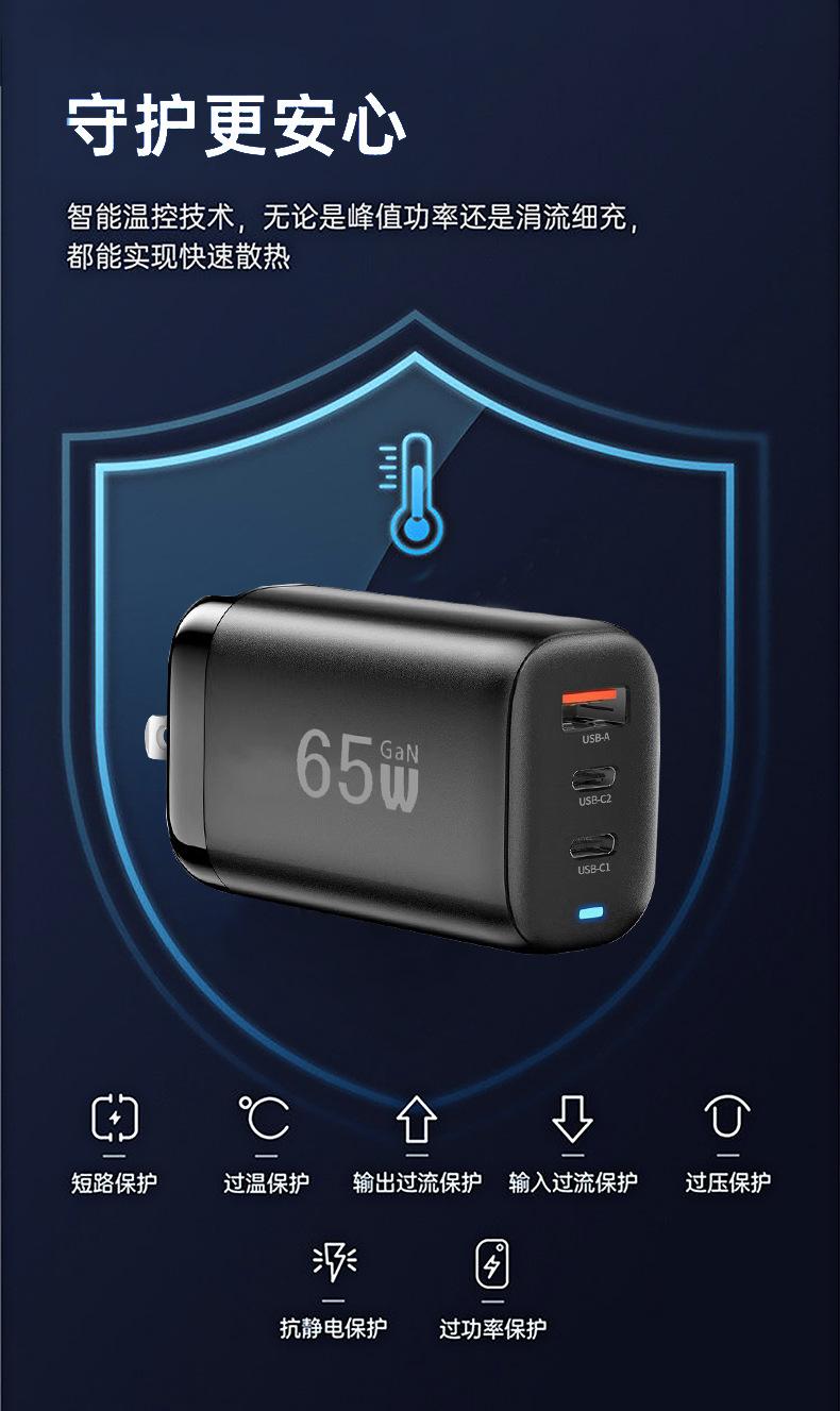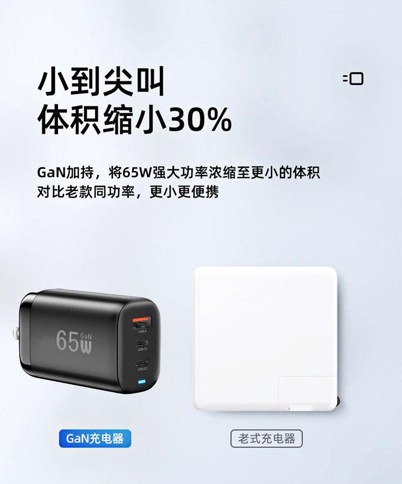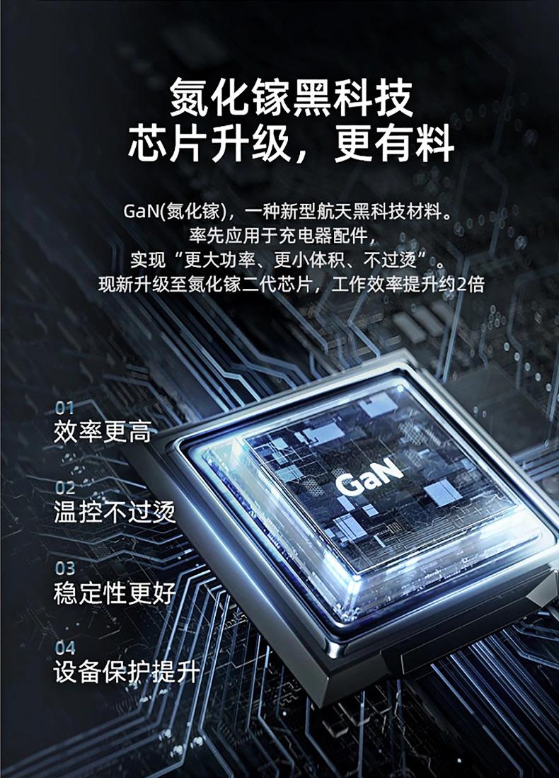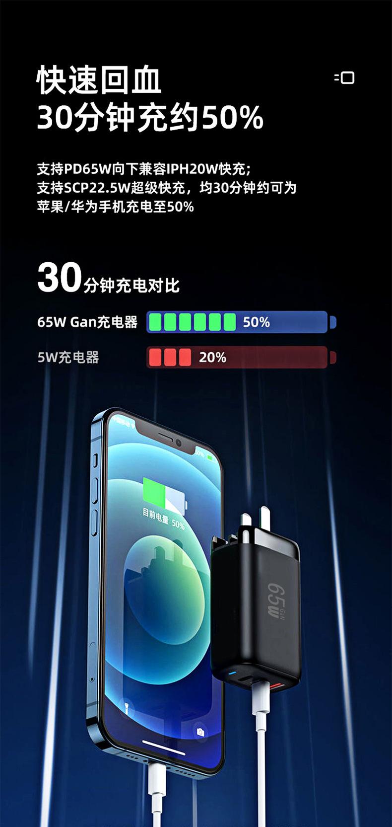 Cargador rápido PD65w de nitruro de galio GaN, cargador de viaje de alta potencia para teléfono móvil, ordenador y tableta.
