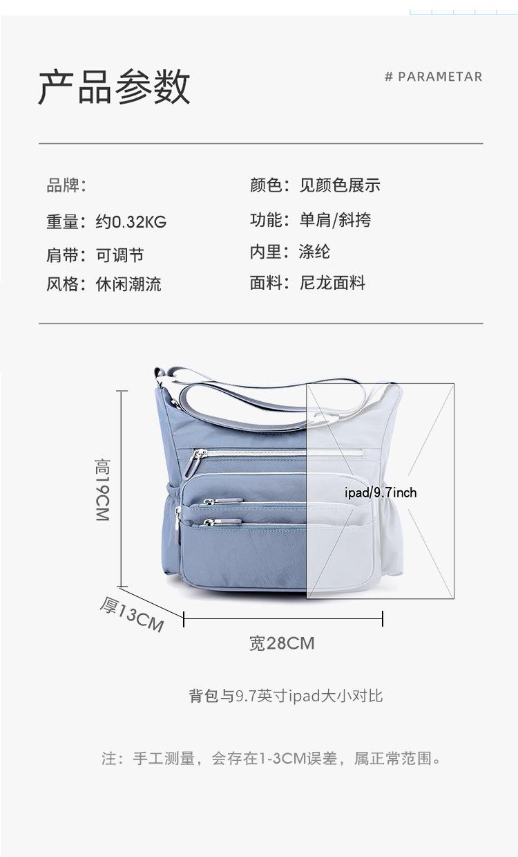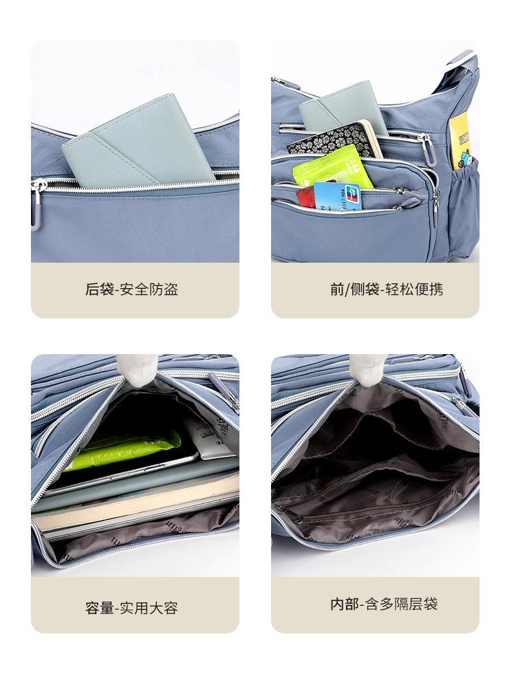 2025 Nuevo Casual Gran Capacidad Hombro Cruzado Bolso de Mujer Tela de Nylon Multibolsillo con Cremallera Bolso Ligero de Mamá