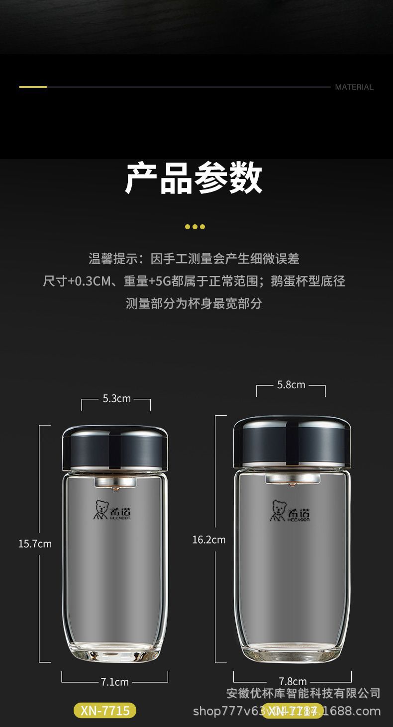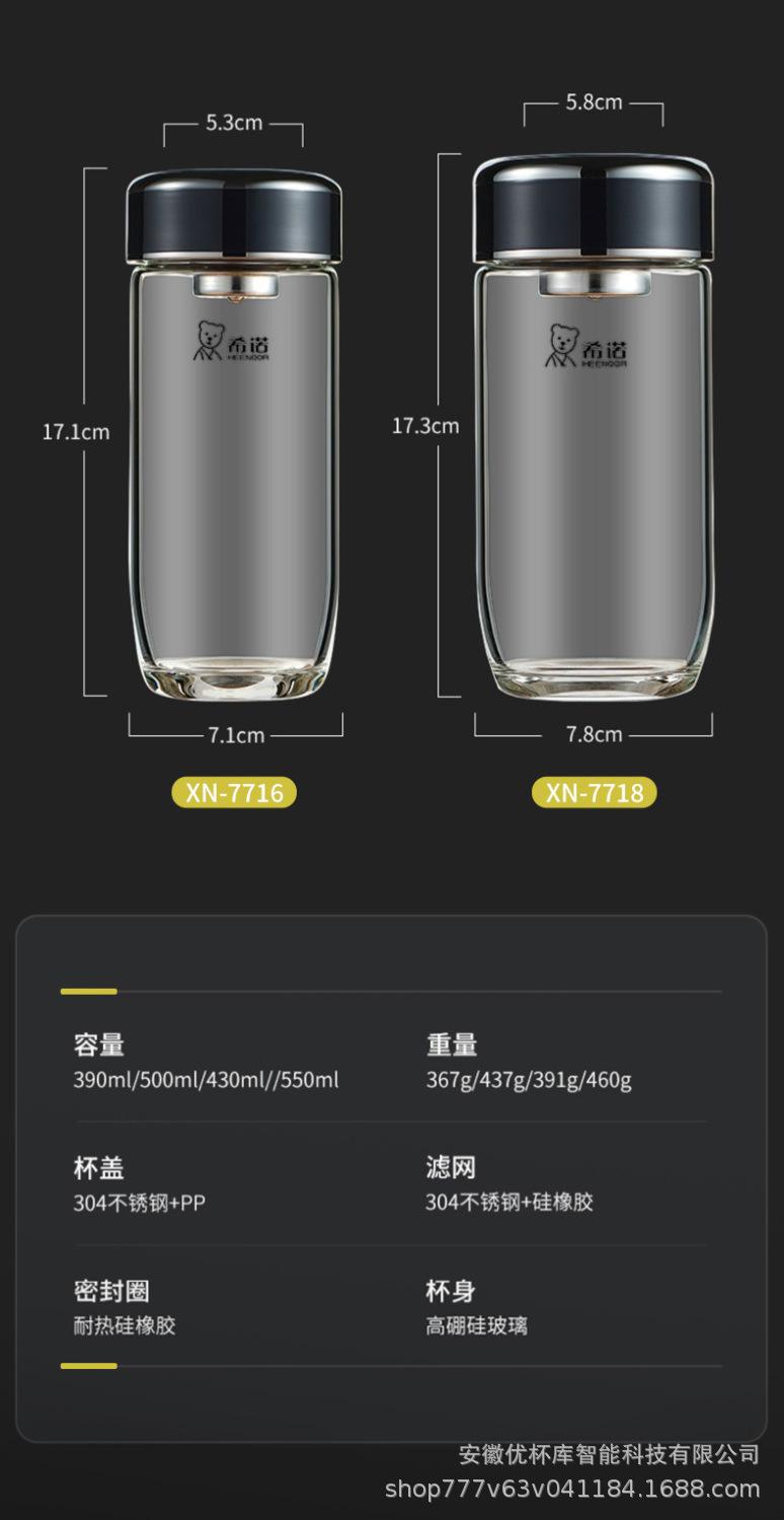 Taza de Vidrio Antibacterial Xino 7718 para Hombres y Mujeres, Caja de Regalo para Coche de Alta Gama, Taza de Agua, Taza de Té con Filtro Portátil