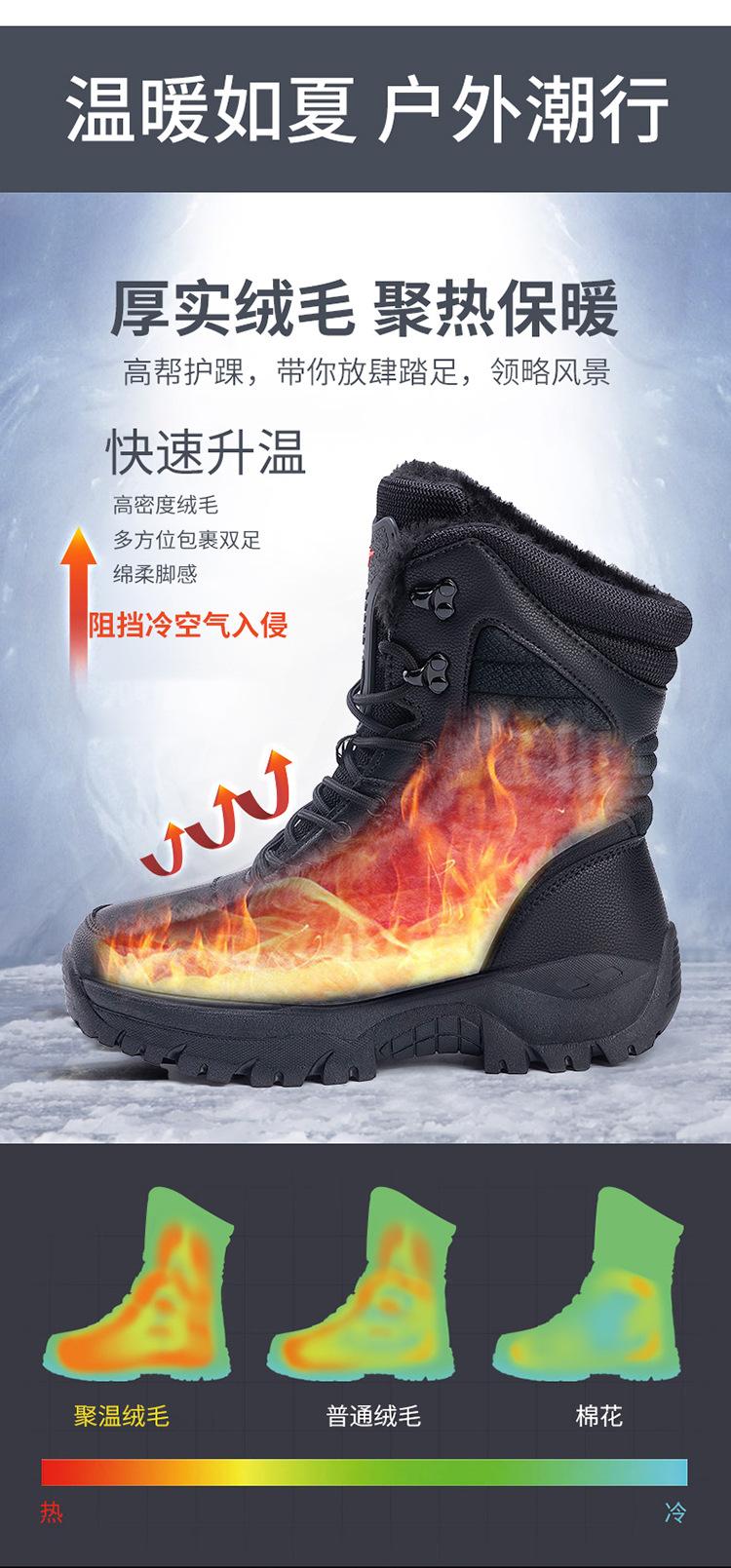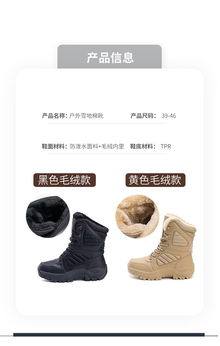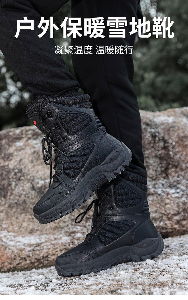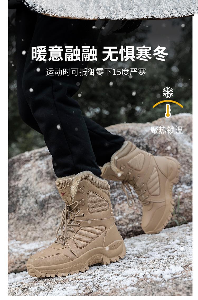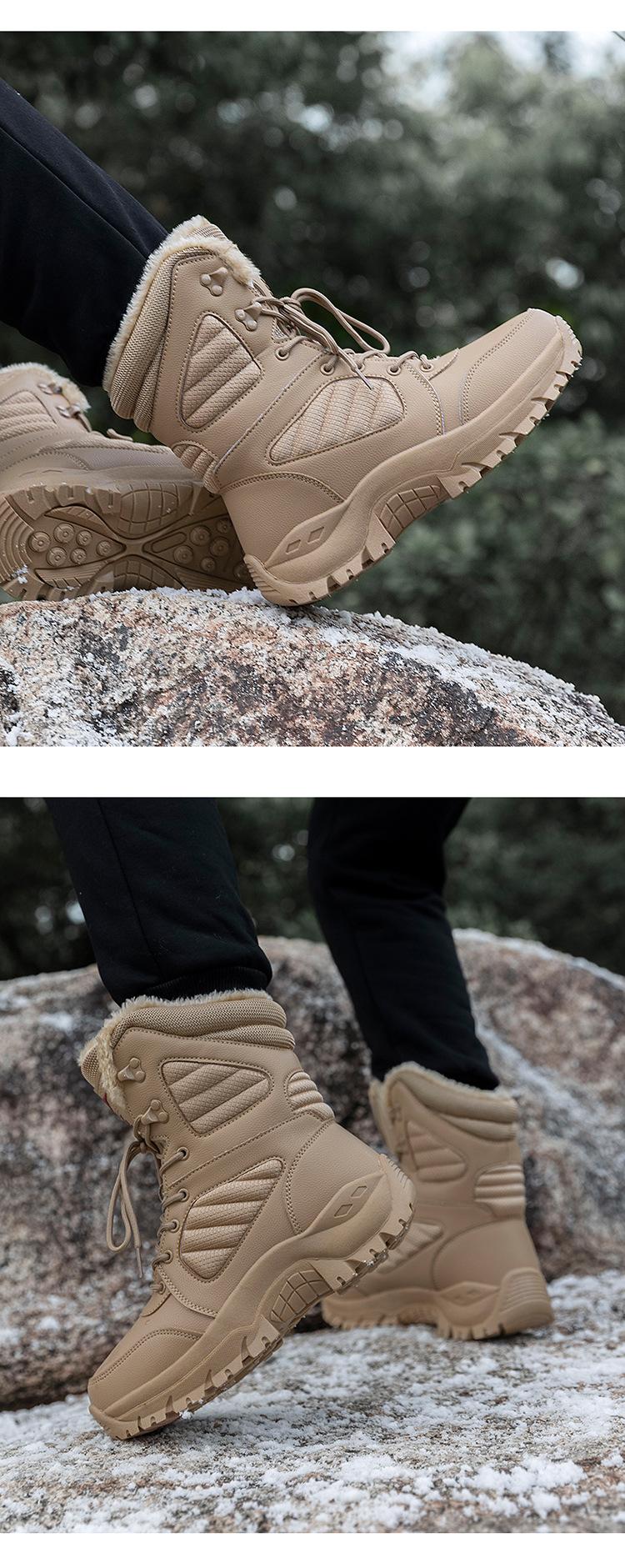 Botas de nieve de terciopelo de invierno para hombre, botas tácticas de caña alta, botas de montañismo para exteriores, botas cálidas de terciopelo para el desierto, transfronterizas