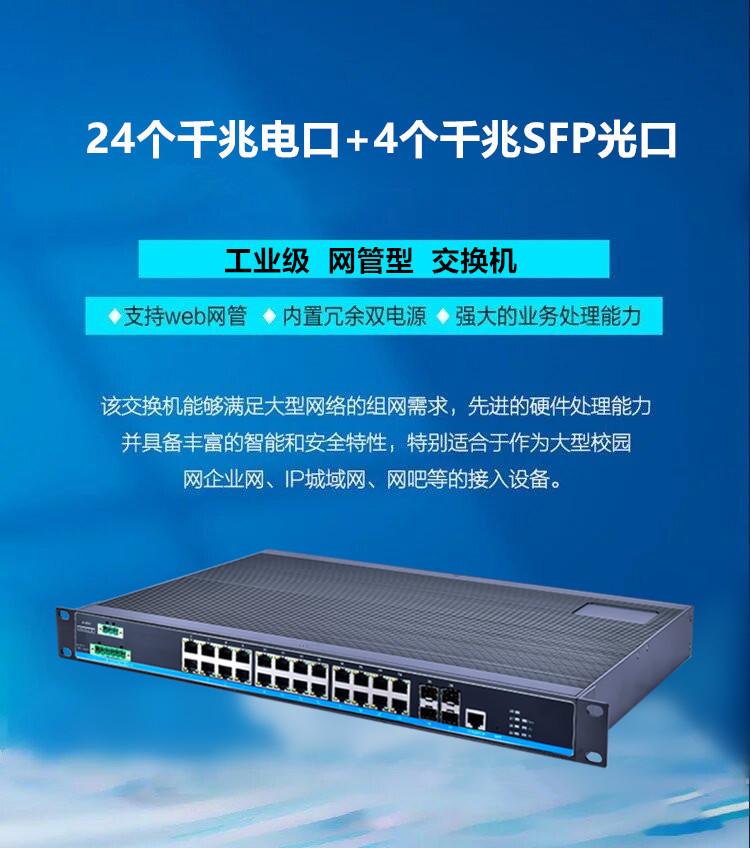 Conmutador Ethernet industrial de 24 Gigabit, eléctrico, 4 Gigabit, SFP, óptico, para rack, gestionado, PoE, red de anillo
