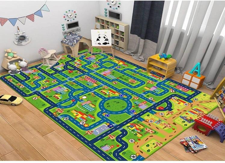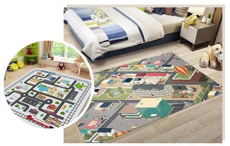 Alfombra de juego de tráfico para niños, alfombra de entrada con dibujos animados para coche de niño